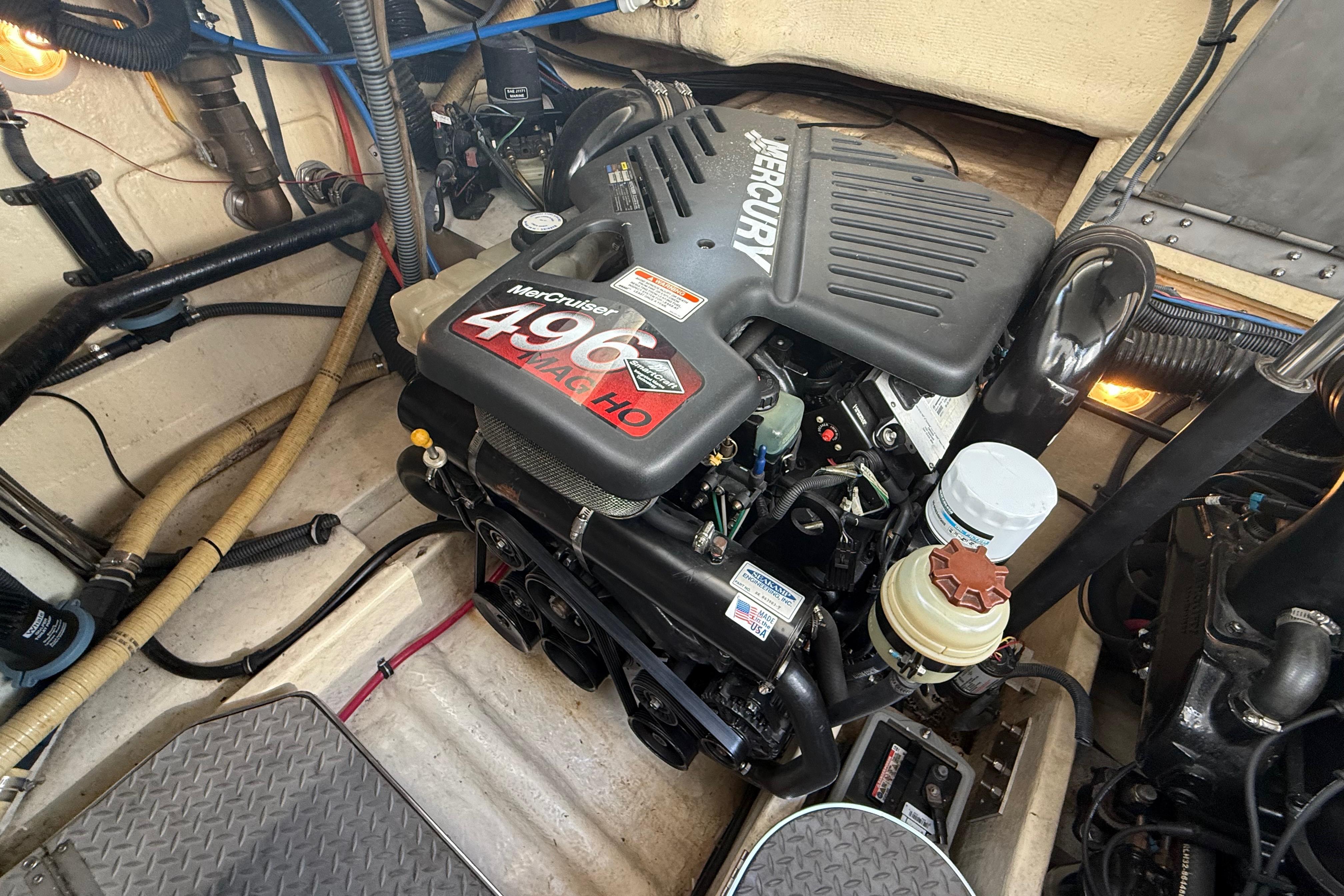 Freash water since new, this vessel features Twin MerCrusier 496 HO (High-Output) Gas Engine's (w/Mercury SmartCraft Digital Display) with Bravo III Sterndrives and only 620 original hours! Notable features include but are not limited to the following: Air-Conditioning & Heat, Head (Vacuflush) w/Vanity/Sink/Stall-Shower, Custom Hardwood Flooring, Central Vacuum System, Kohler 7.3kw Generator (143-Hours), Bow-Thruster, Windlass Anchor w/Forward Controls, Cockpit Wet Bar w/Sink/Fridge, Raymarine E80 (Color) Radar w/GPS/Chartplotter, Premium Sound System w/iPod/MP3-Connection, Canvas Package (Cockpit Enclosure), Snap-in Snap-out Cockpit Carpeting, and MUCH more!