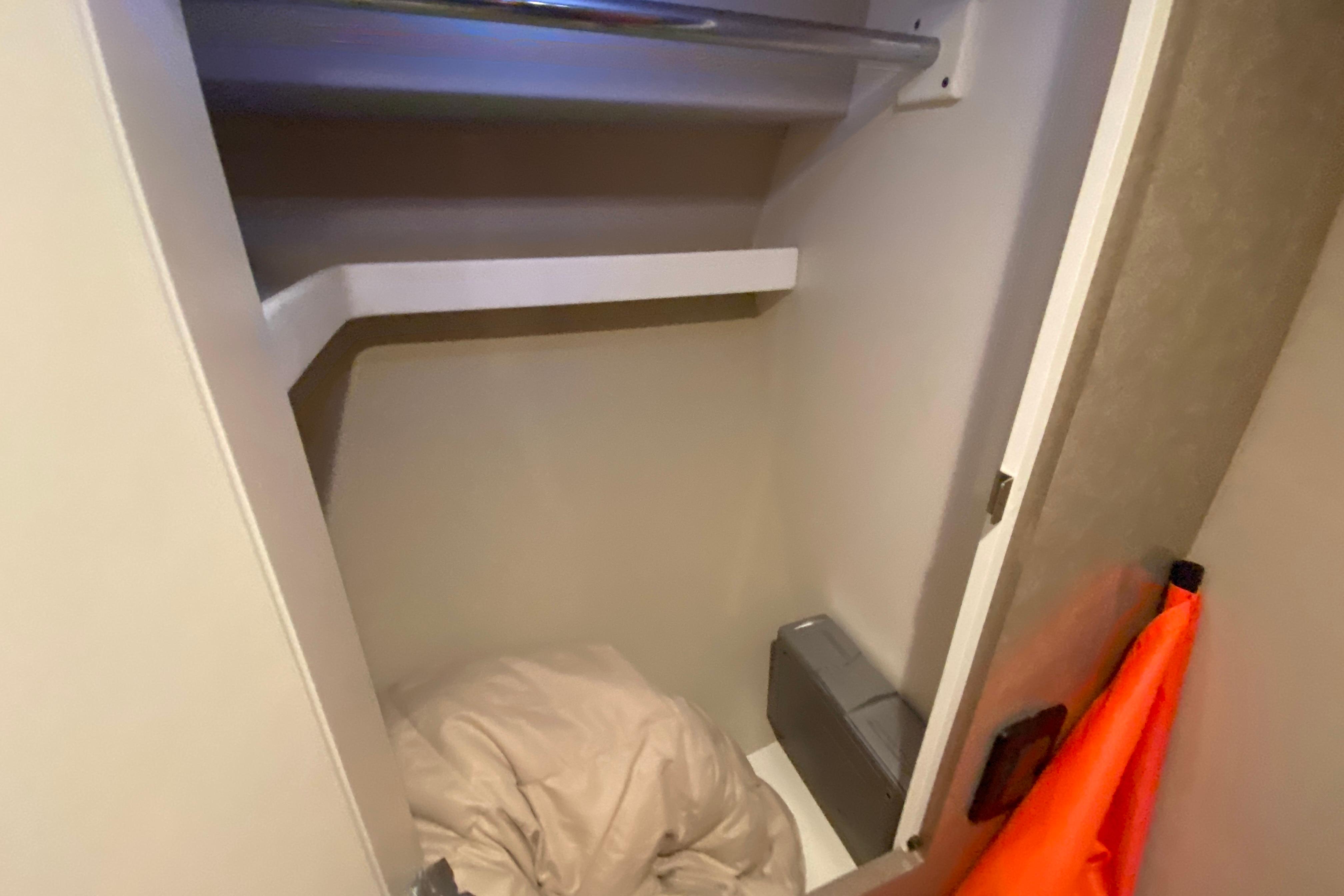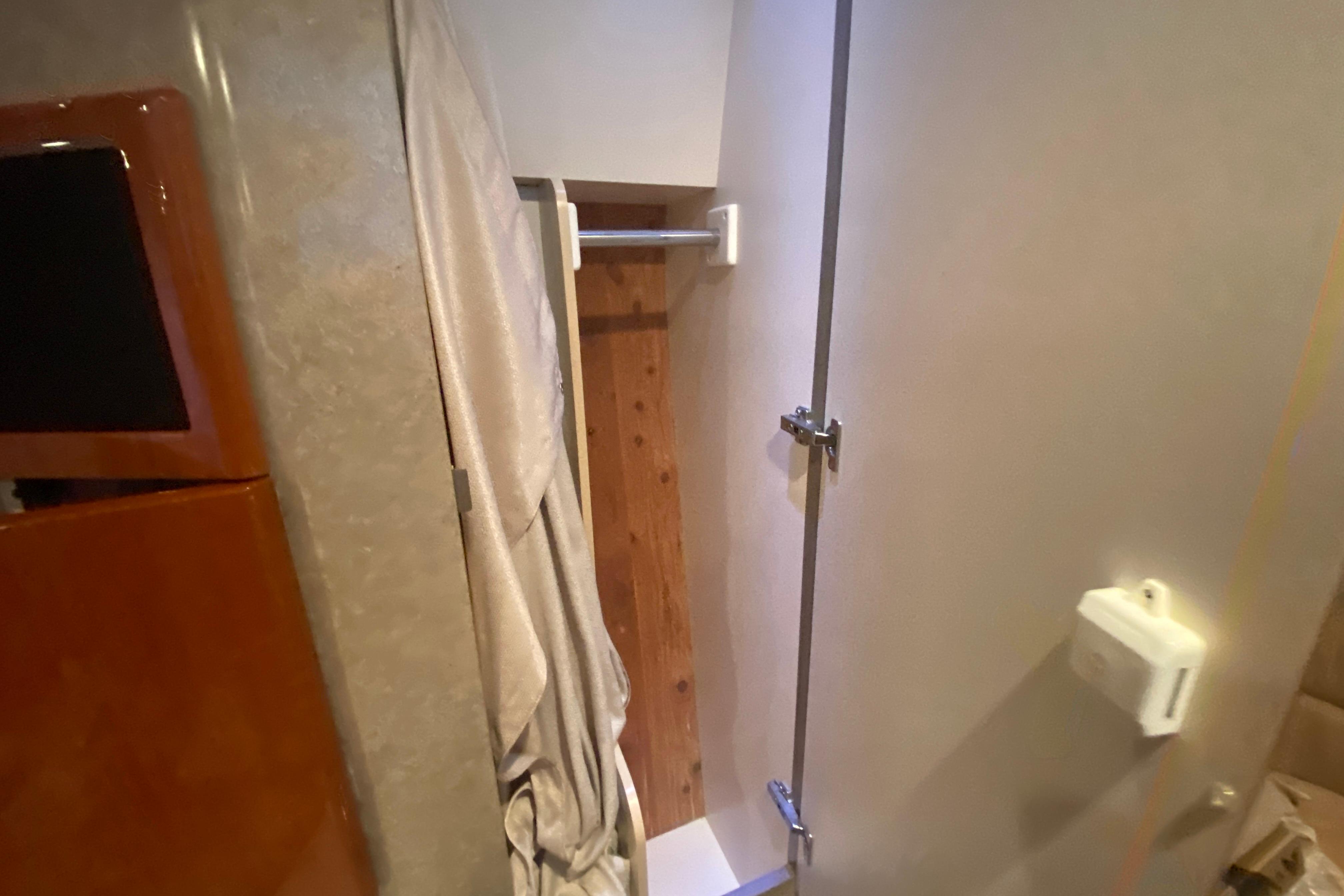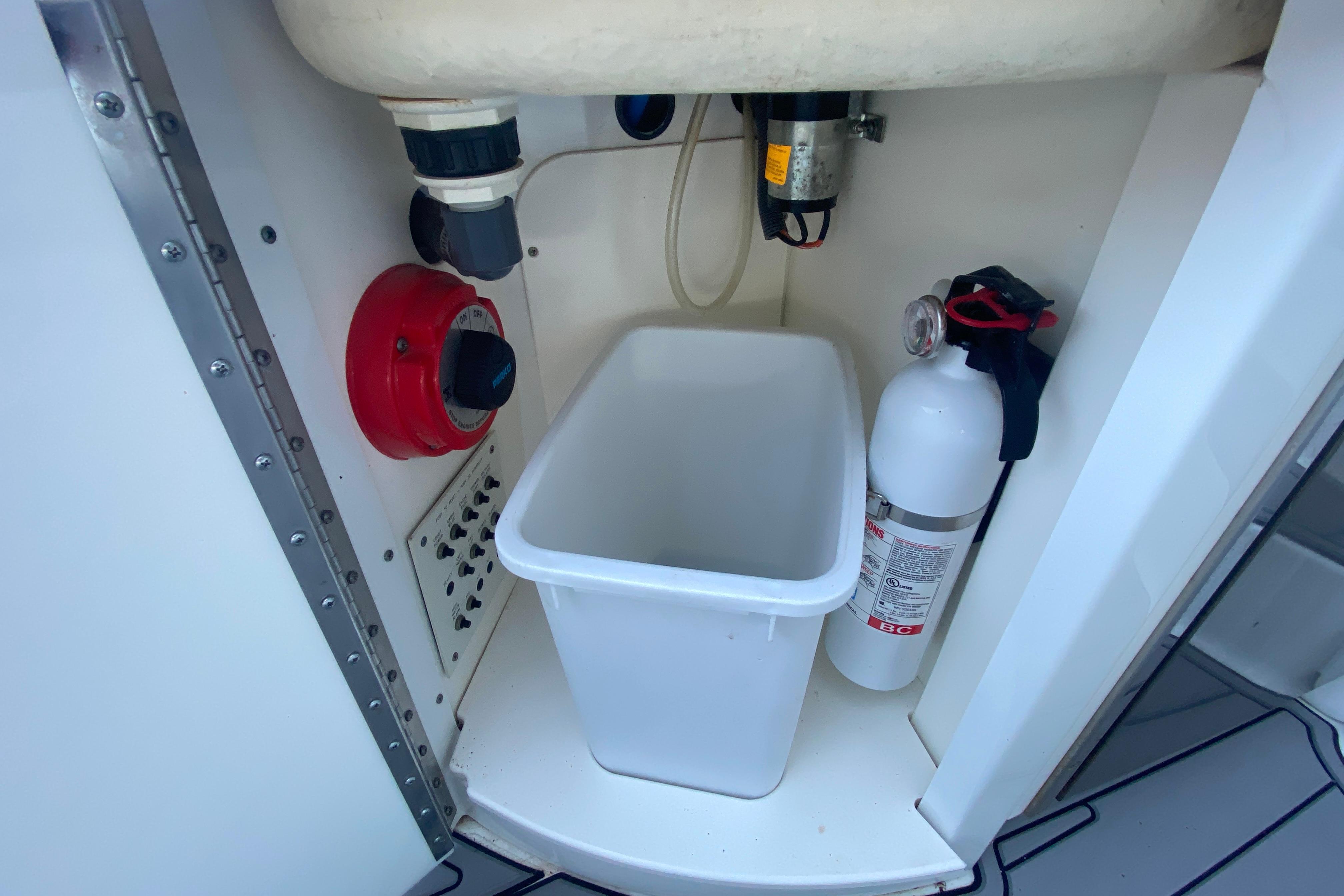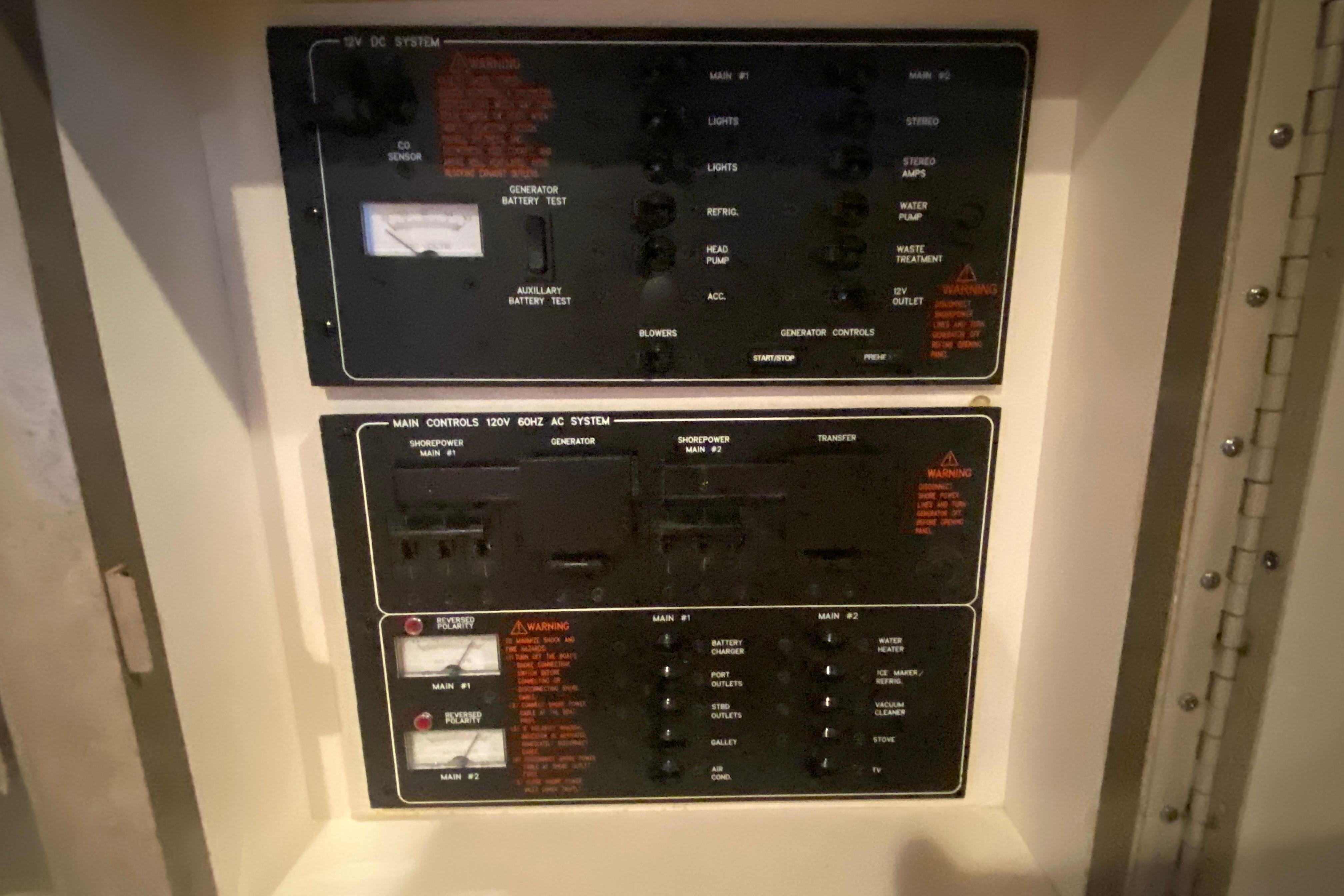 A pair of 440 hp Yanmar 6LP2A push her comfortably in the mid 20’s. Soak in the views at the double wide companion chair at the helm with an impressive wood grain dash with gauges and engine controls. Great visibility is not the only thing that makes your new vessel easy to run; a bow thruster makes docking almost effortless. The Hydraulic swim platform comes in handy when you want to put your chairs there and dip your feet in the water. Also provides an area for your PWC if you wish.