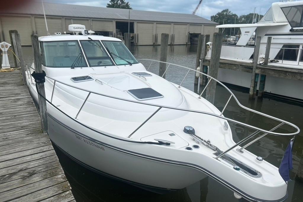 Introducing the 2005 Tiara Yachts 3600 Sovran, a stunning cruiser that combines elegance with performance. Measuring an impressive 41.67 feet in overall length, this vessel is crafted from durable fiberglass with a modified Vee hull shape, ensuring stability and a smooth ride on the water. Powered by twin Crusader 8.1 Captains Choice inboard engines, each delivering 385 horsepower, this boat promises exhilarating performance for all your adventures. With an electric windlass for effortless anchoring, it enhances your cruising experience. Designed for comfort, the 3600 Sovran accommodates up to 11 guests, making it perfect for entertaining family and friends. The well-appointed head adds convenience for longer outings. Whether you're exploring coastal waters or enjoying a day on the lake, the Tiara Yachts 3600 Sovran is a remarkable choice for those seeking luxury and reliability in their boating experience.