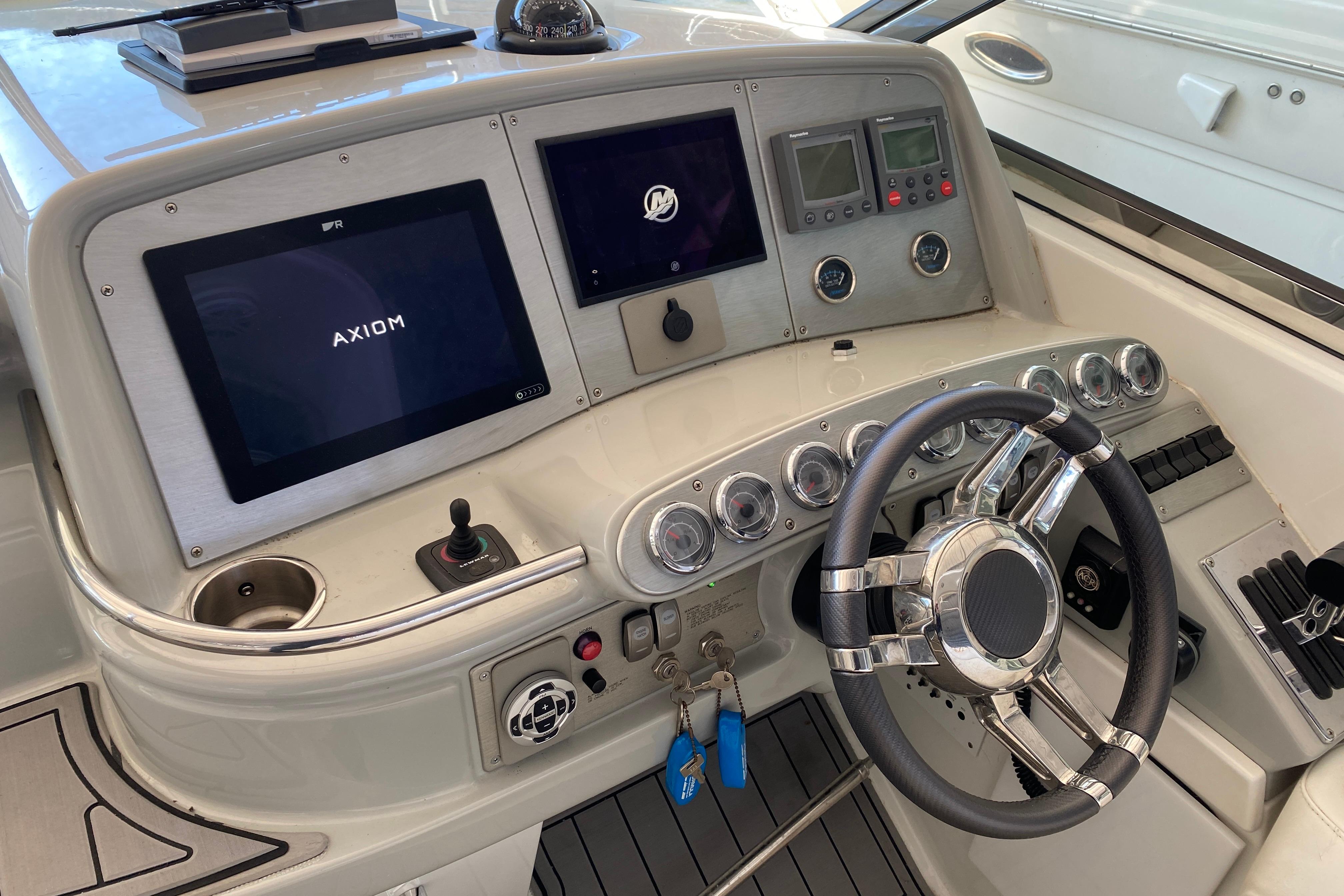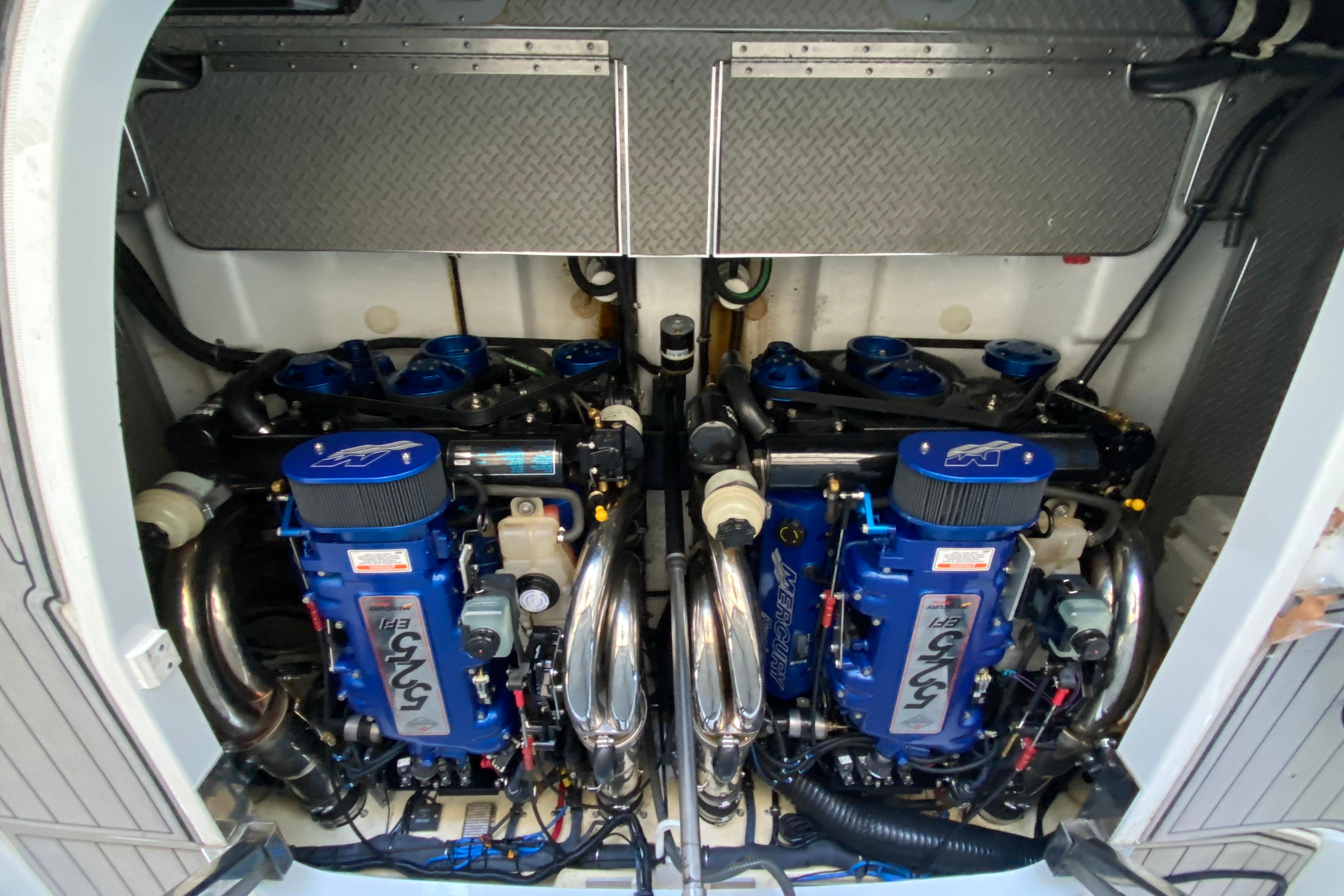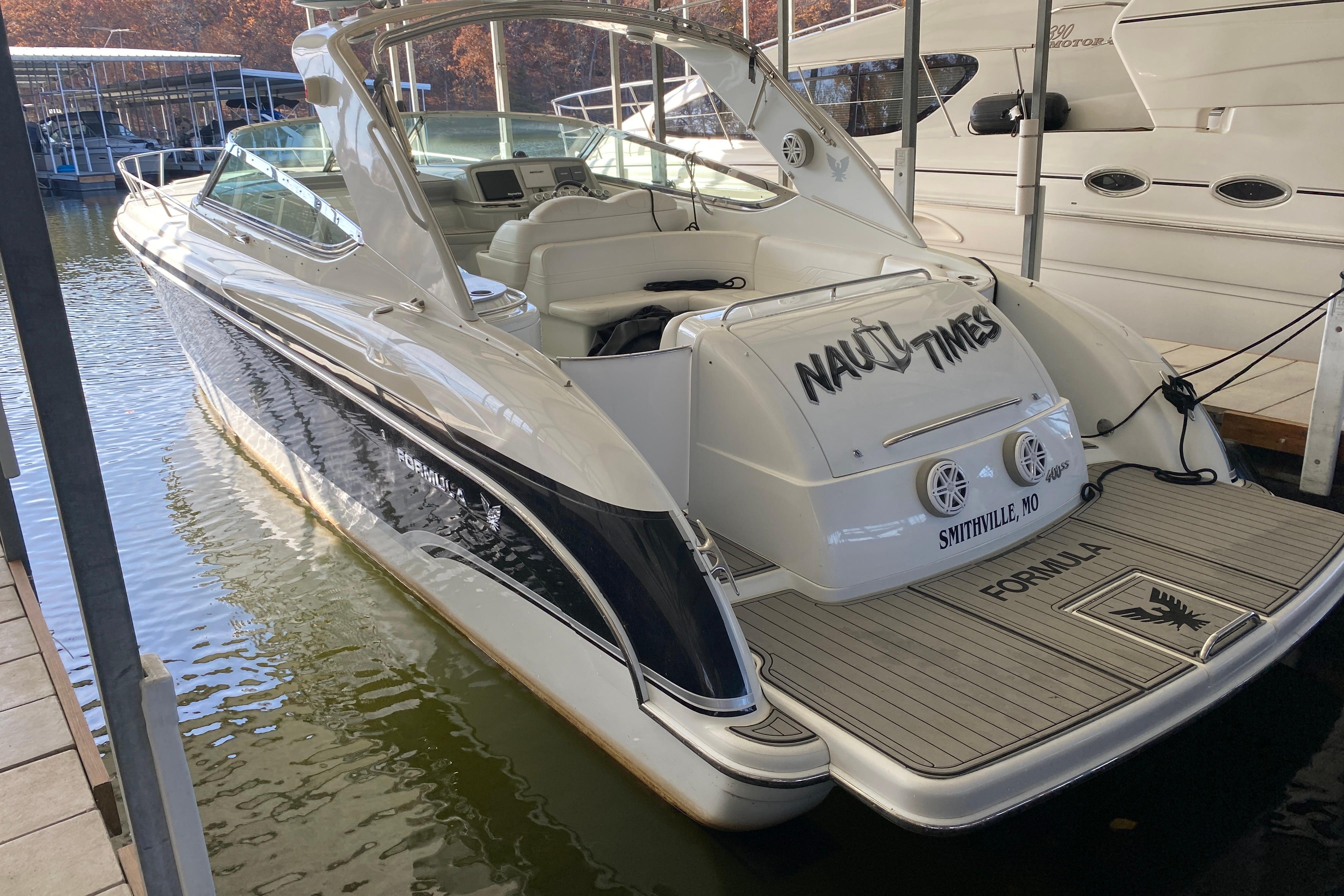 2006 Formula 400SS, Twin Mercury Racing 525 EFI's (848 hull hours - complete rebuilds on engines, drives and new transom assemblies 29 hours ago - fresh water boat), Bravo 3 XR drives, Bow thruster, Electric windlass w/ washdown, Remote searchlight, New transom assemblies, Updated dash, upgraded Raymarine electronics, Mercury engine monitoring display, VHF radio, Huge JL Audio system, Kohler gas gen (716 hours), AC/heat, Captain's call exhaust, Seadek flooring, Transom shower, Cockpit wet bar w/ freshwater sink & fridge, Cabin TV's w/ antenna, Cabin kitchenette w/ fresh water sink, electric range, microwave & fridge/freezer combo, Enclosed vacuflush head & shower stall, Shore power, Battery charger, Cockpit cover. Trailer not included, new trailer quotes available separate.