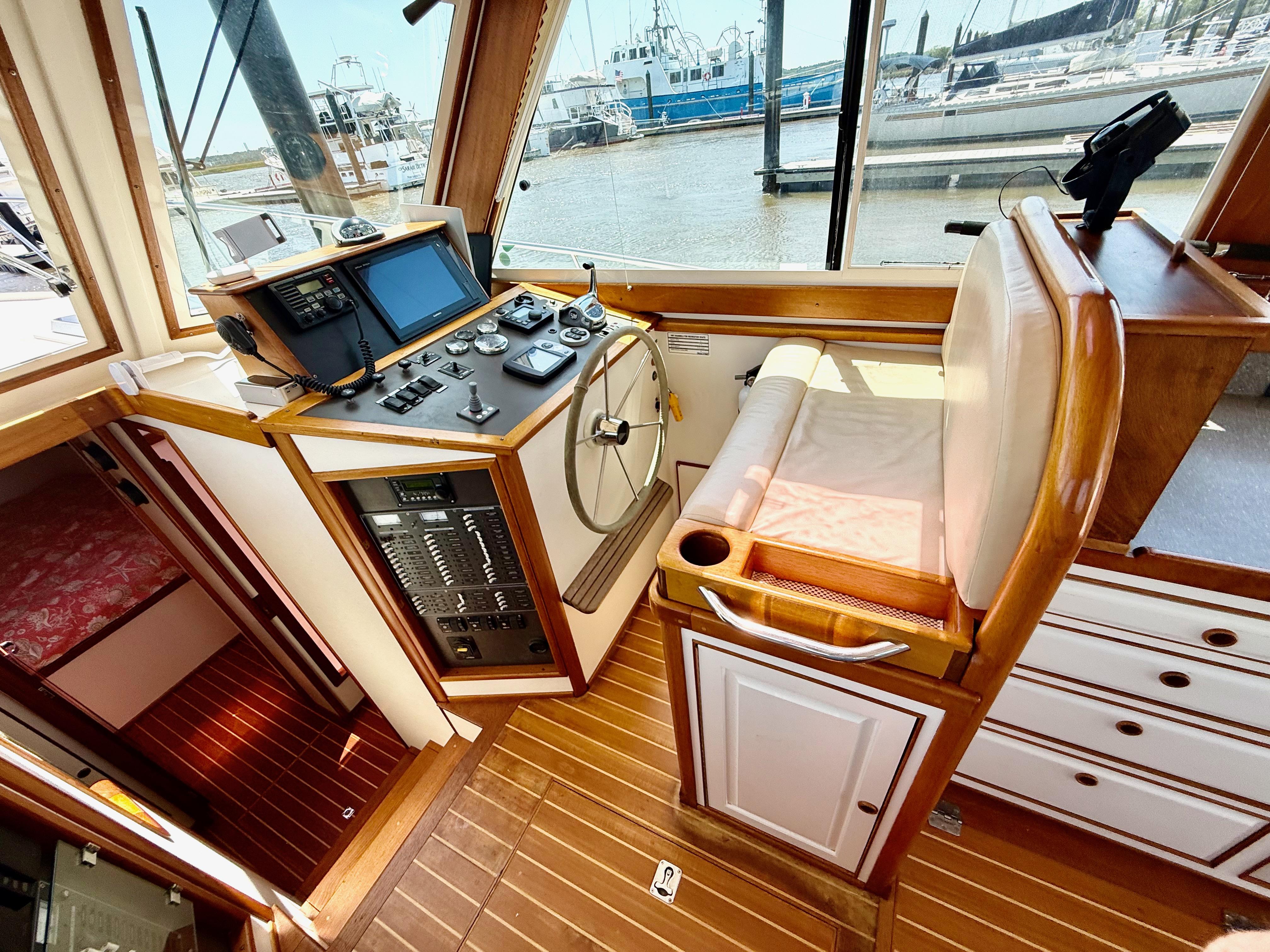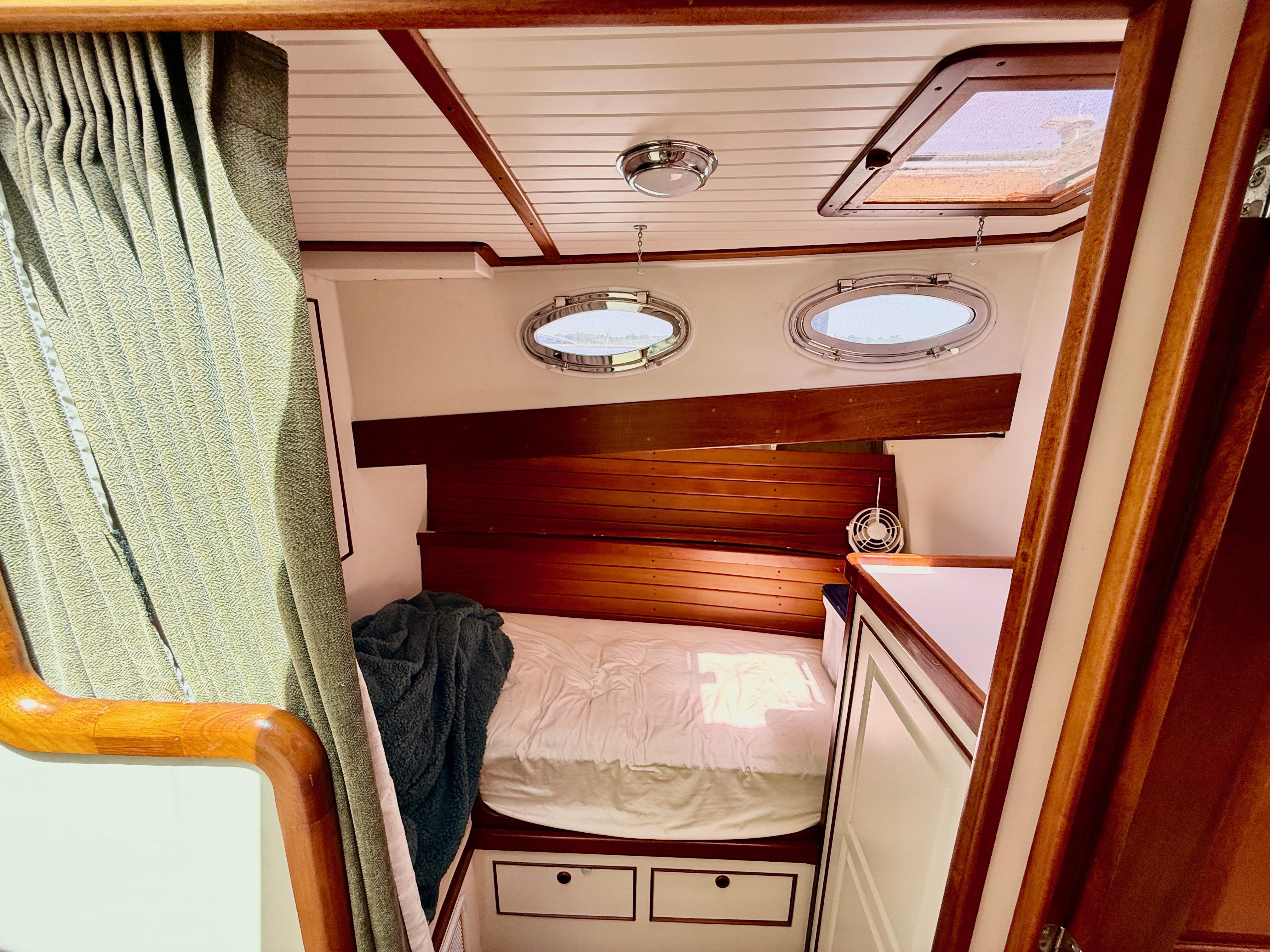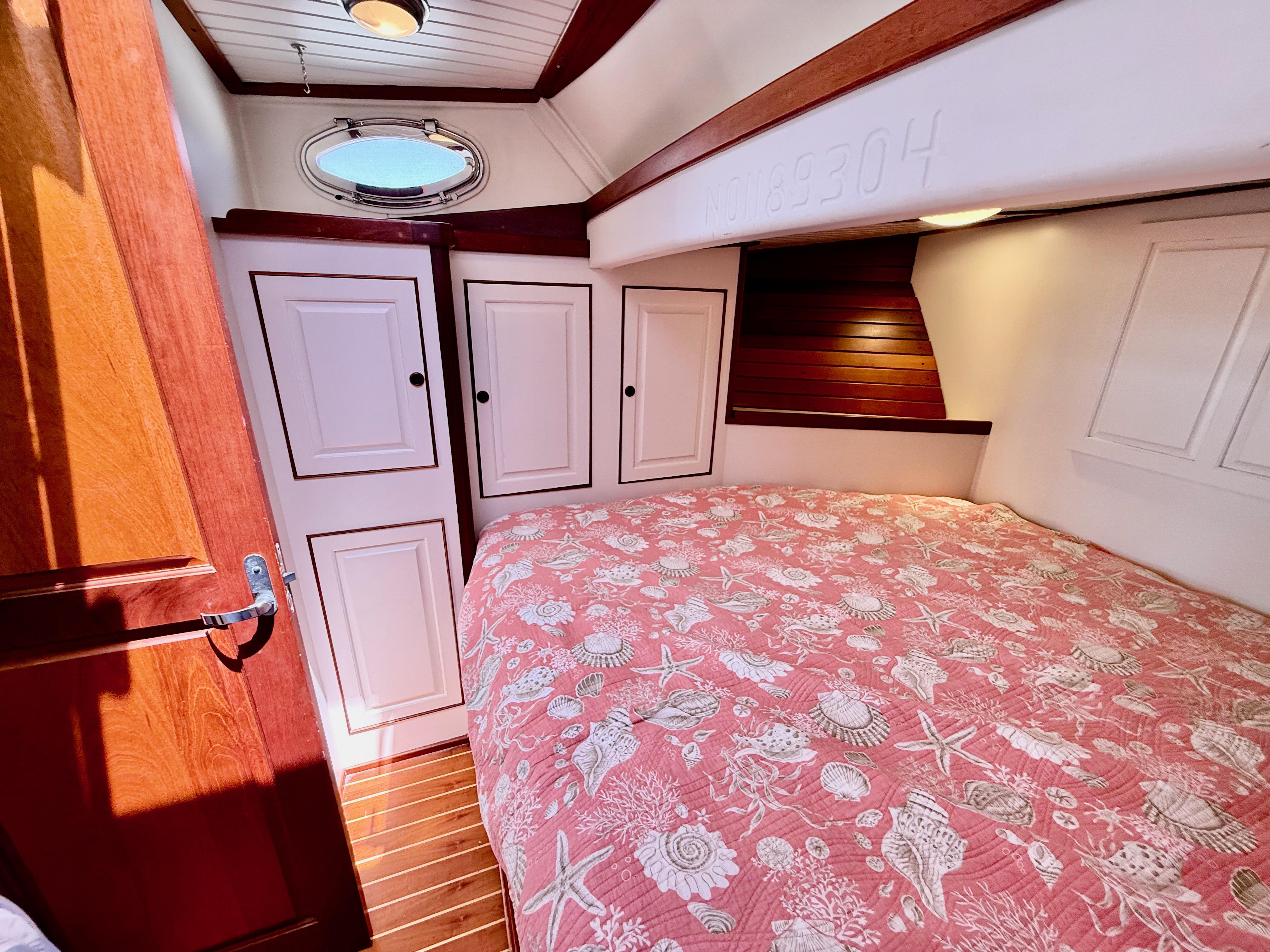 Mast and Mallet's Thomas Point range was designed to showcase " the best of the New England lobster boat and the Chesapeake deadrise design". Whether your plans include cruising, fishing, entertaining, or a little bit of everything, you might as well turn heads while doing so! The Thomas Point 40's classic downeast lines catch your attention from the dock or across the anchorage, while comfortable accommodations and a protected helm station make her a pleasure to own and operate regardless of the conditions. Ventilation and light abound throughout the interior of this beautiful yacht, while her teak and holly cabin sole and teak accents offer the look of a proper yacht.