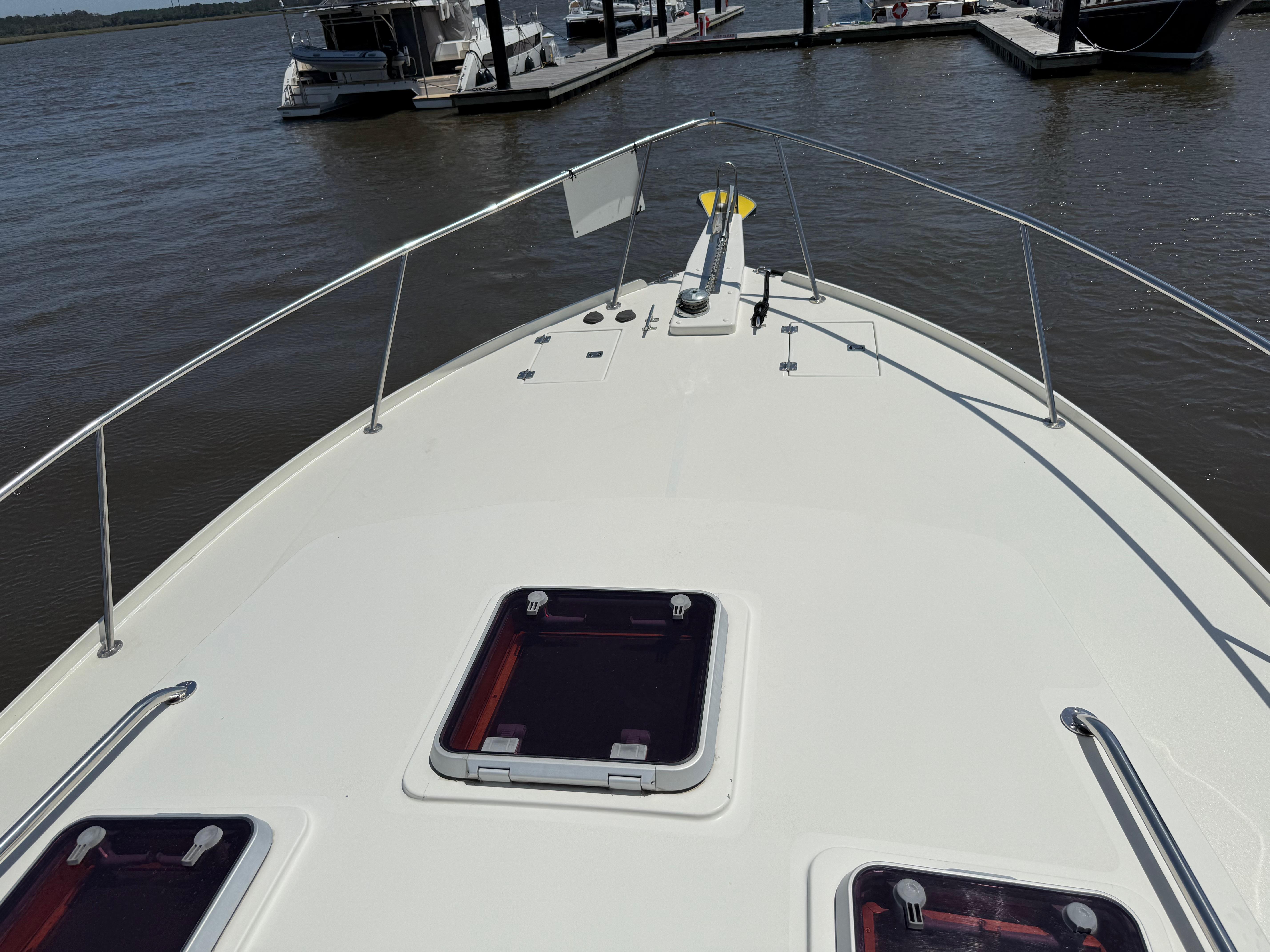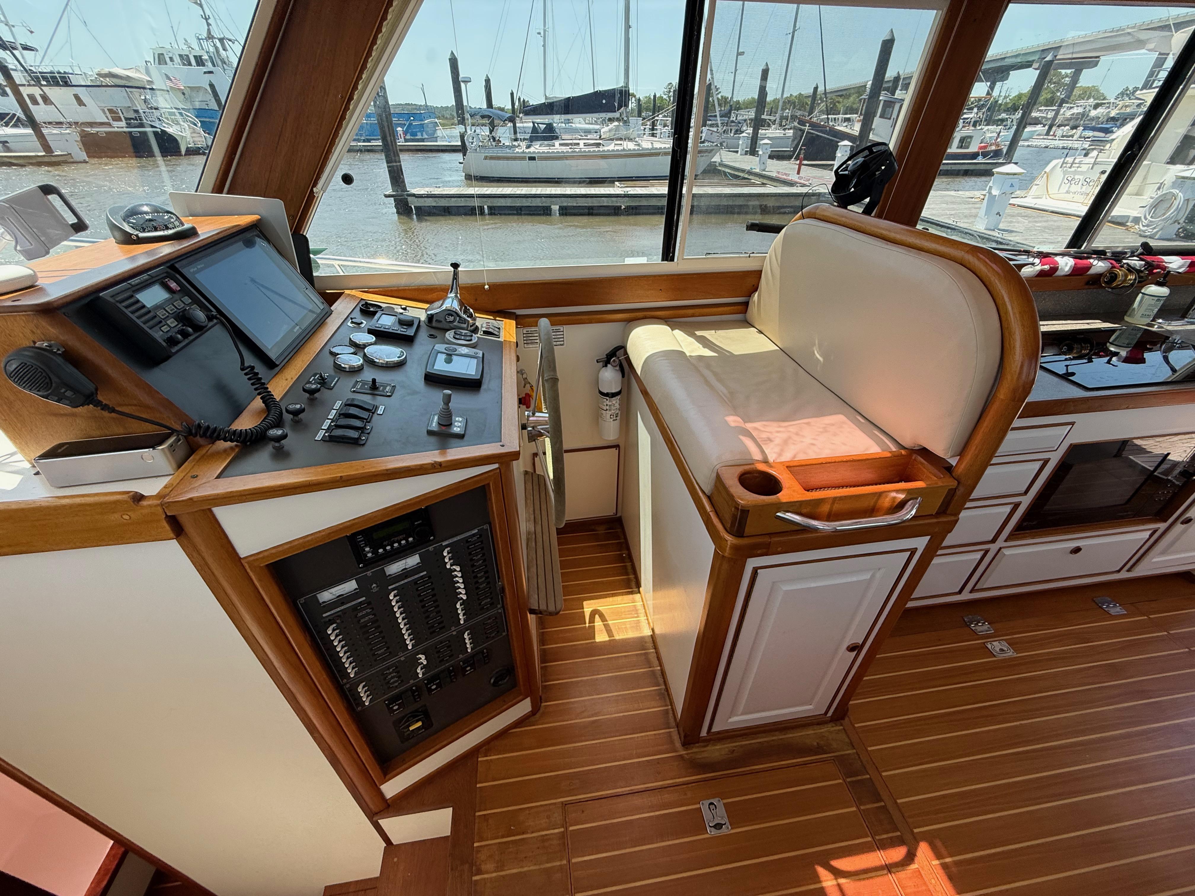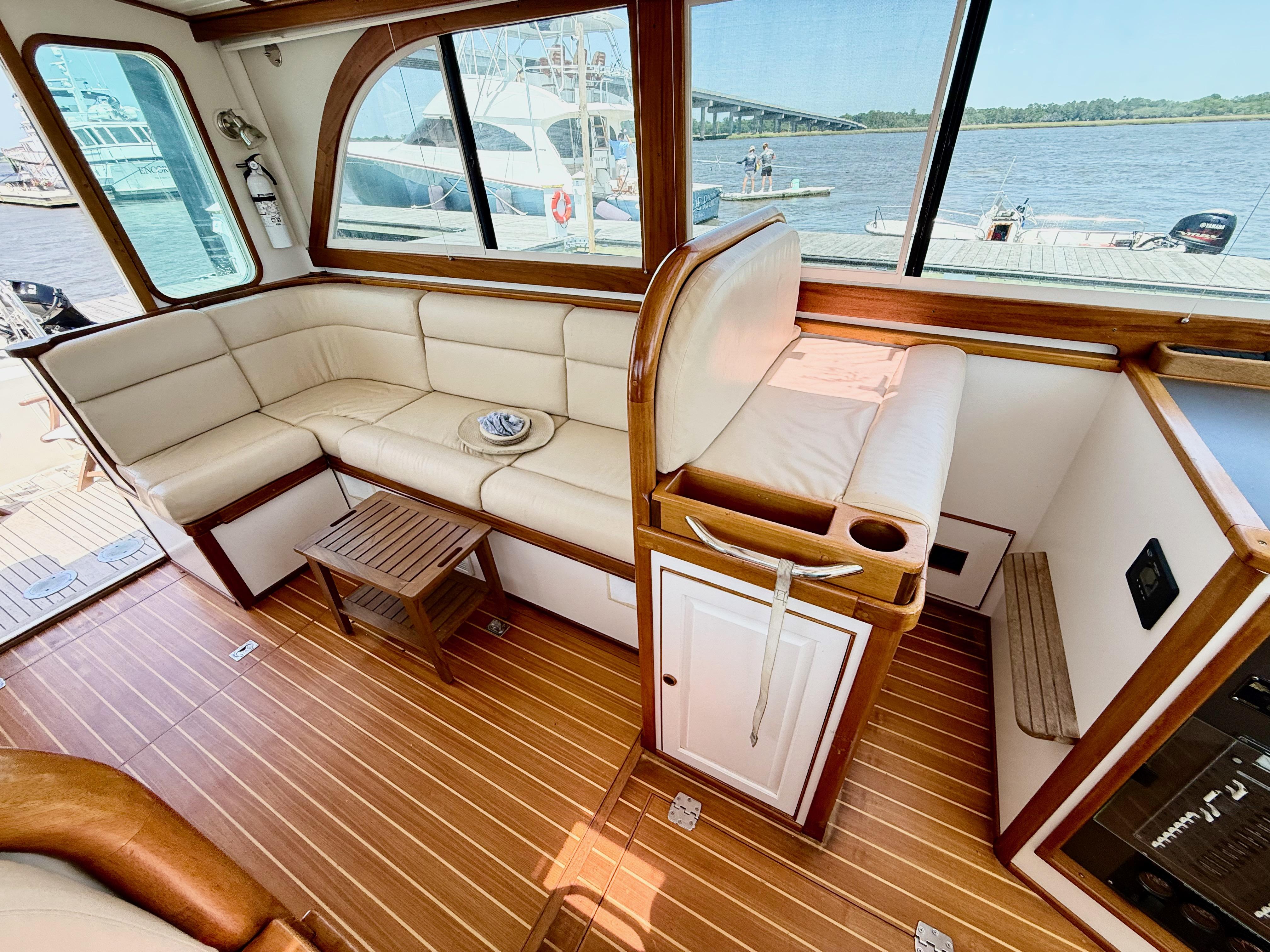 Mast and Mallet's Thomas Point range was designed to showcase " the best of the New England lobster boat and the Chesapeake deadrise design". Whether your plans include cruising, fishing, entertaining, or a little bit of everything, you might as well turn heads while doing so! The Thomas Point 40's classic downeast lines catch your attention from the dock or across the anchorage, while comfortable accommodations and a protected helm station make her a pleasure to own and operate regardless of the conditions. Ventilation and light abound throughout the interior of this beautiful yacht, while her teak and holly cabin sole and teak accents offer the look of a proper yacht.