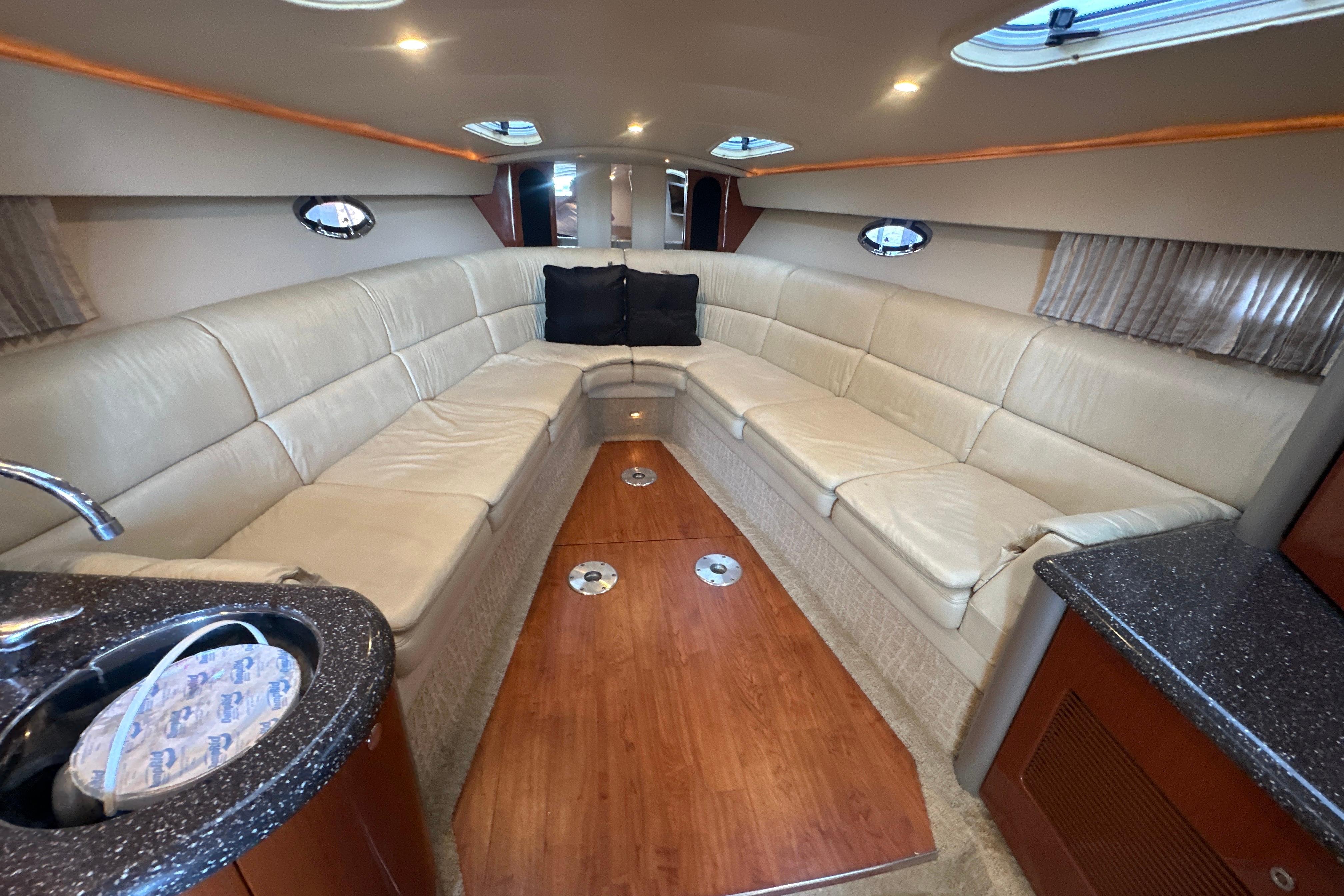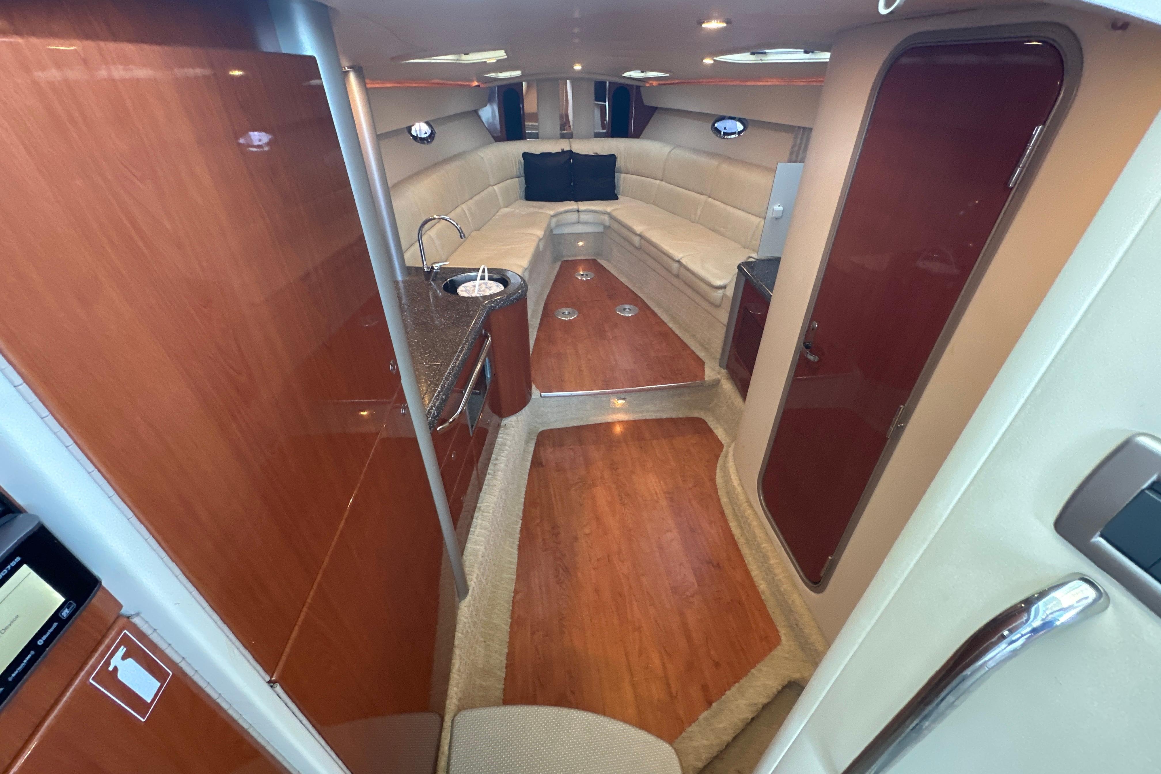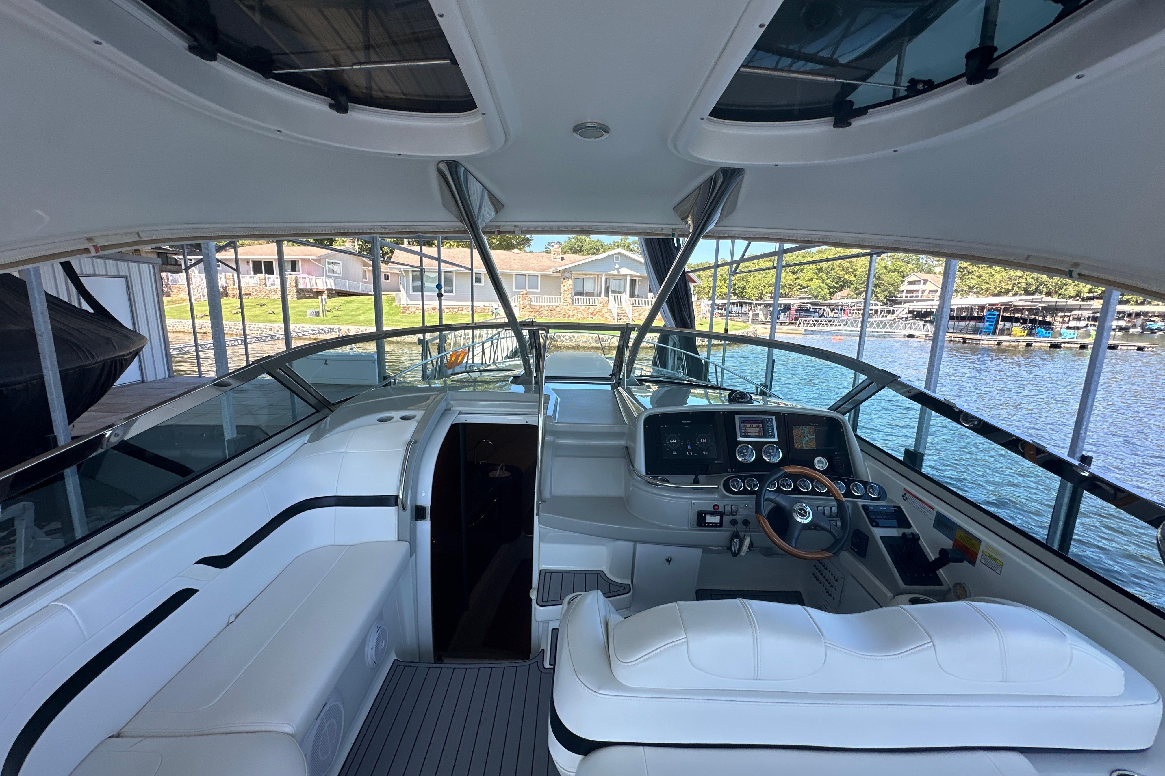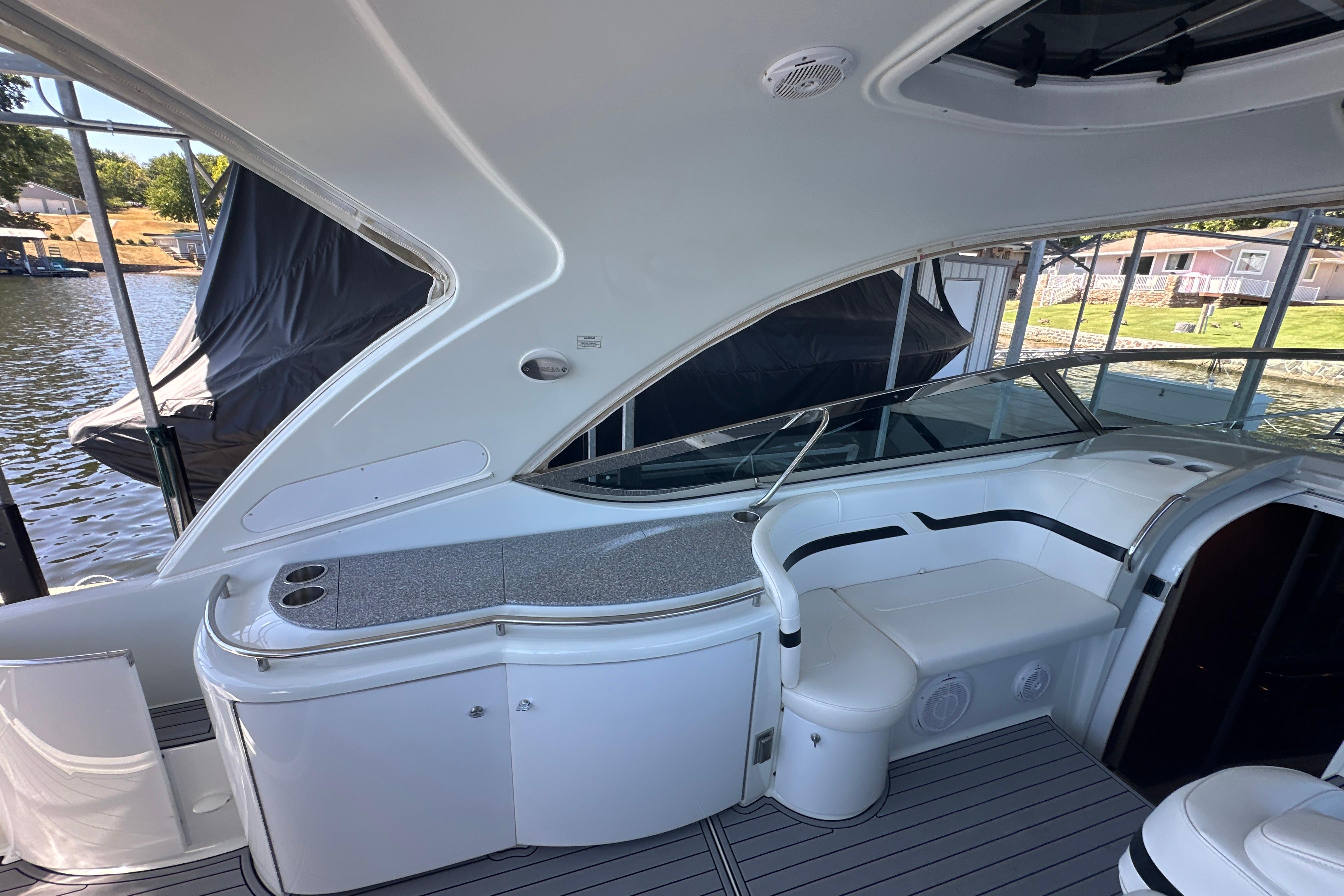 This vessel is also equipped with a 7.3 KW Westerbeke generator with ONLY 463 hours. The boat is cleaned by professional detailers on a scheduled basis and serviced with an open checkbook. The boat has always been lift-kept and under a covered roof & under a full bow to stern marine concepts cover here at Lake of the Ozarks.
