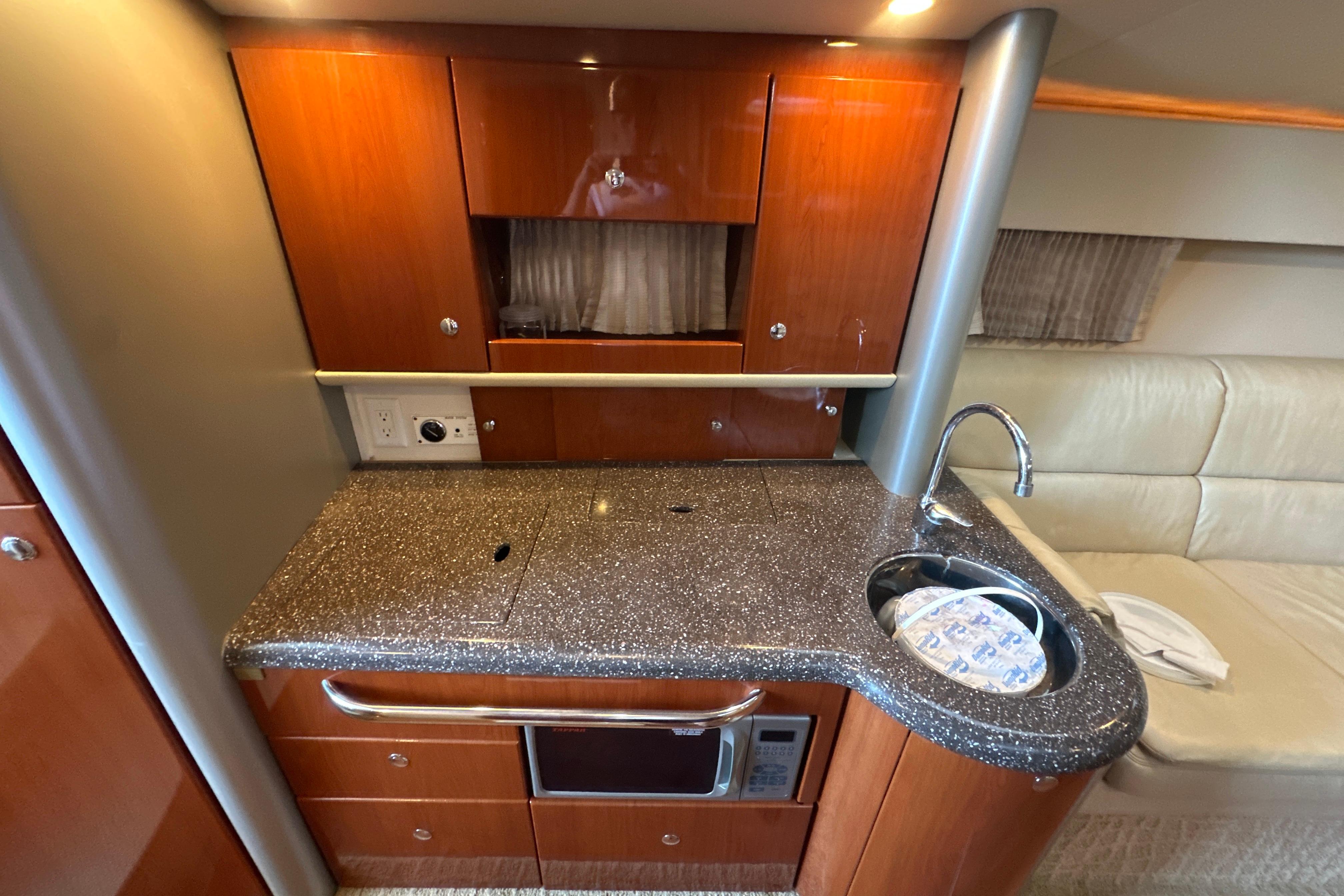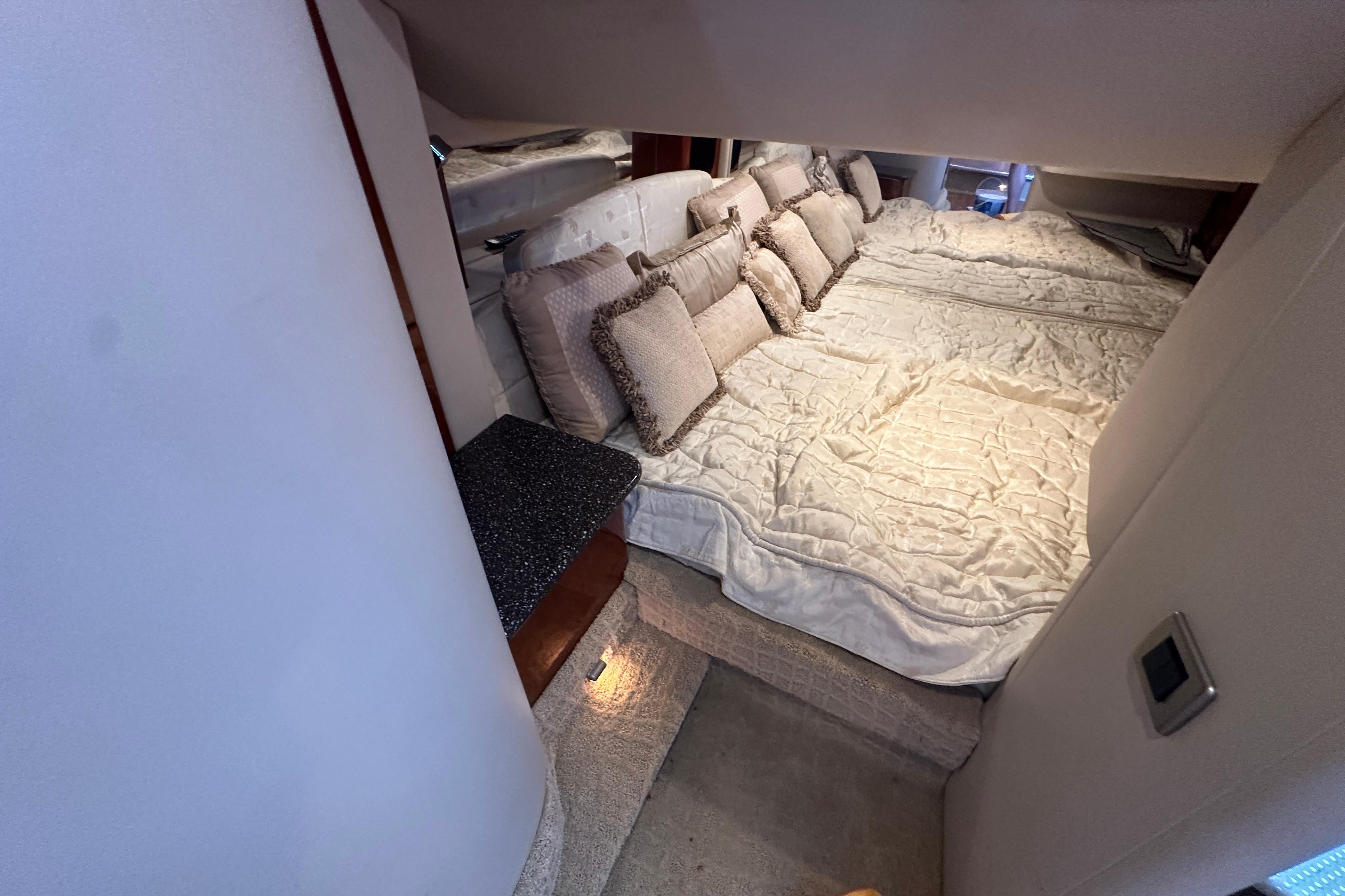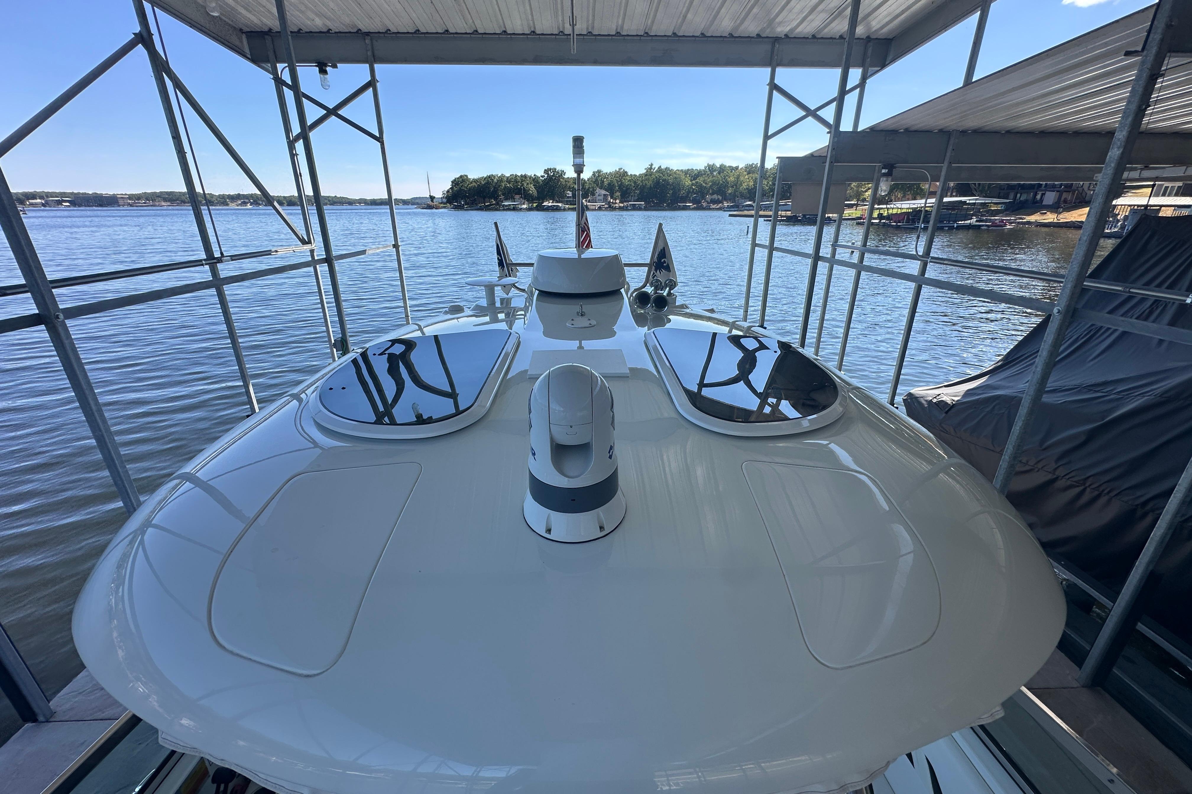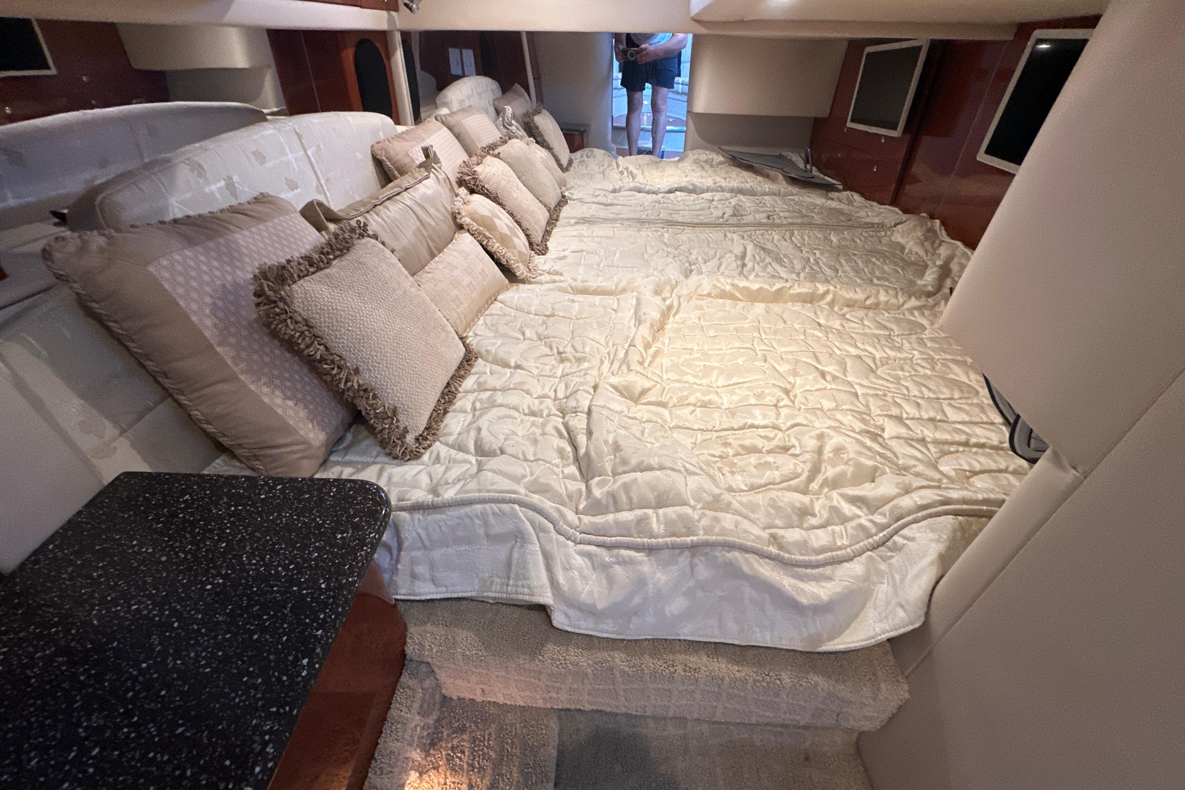 This vessel is also equipped with a 7.3 KW Westerbeke generator with ONLY 463 hours. The boat is cleaned by professional detailers on a scheduled basis and serviced with an open checkbook. The boat has always been lift-kept and under a covered roof & under a full bow to stern marine concepts cover here at Lake of the Ozarks.