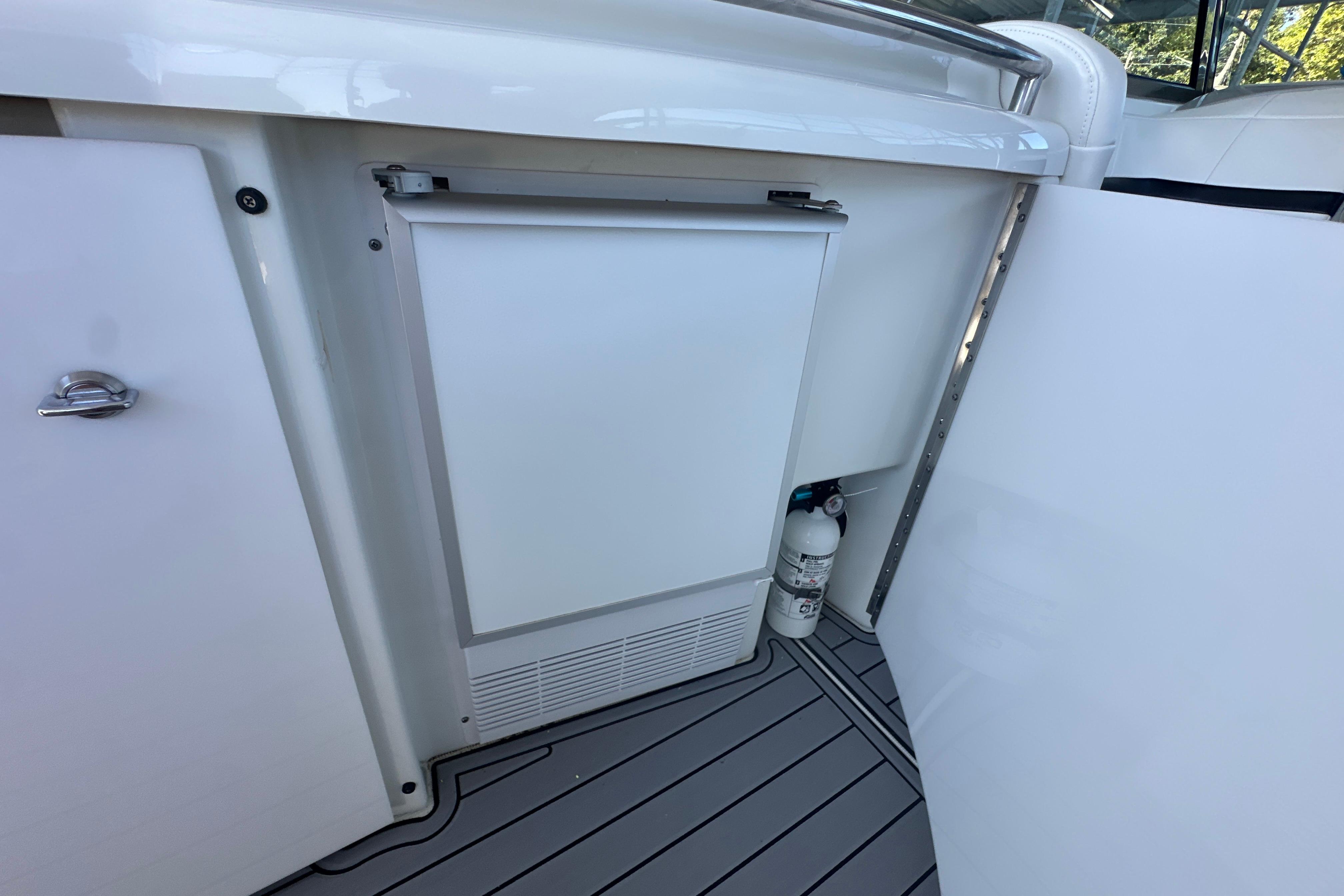 - Raymarine 12-inch display and 8-inch display that both talk to engines/ stereo and have charts built into them