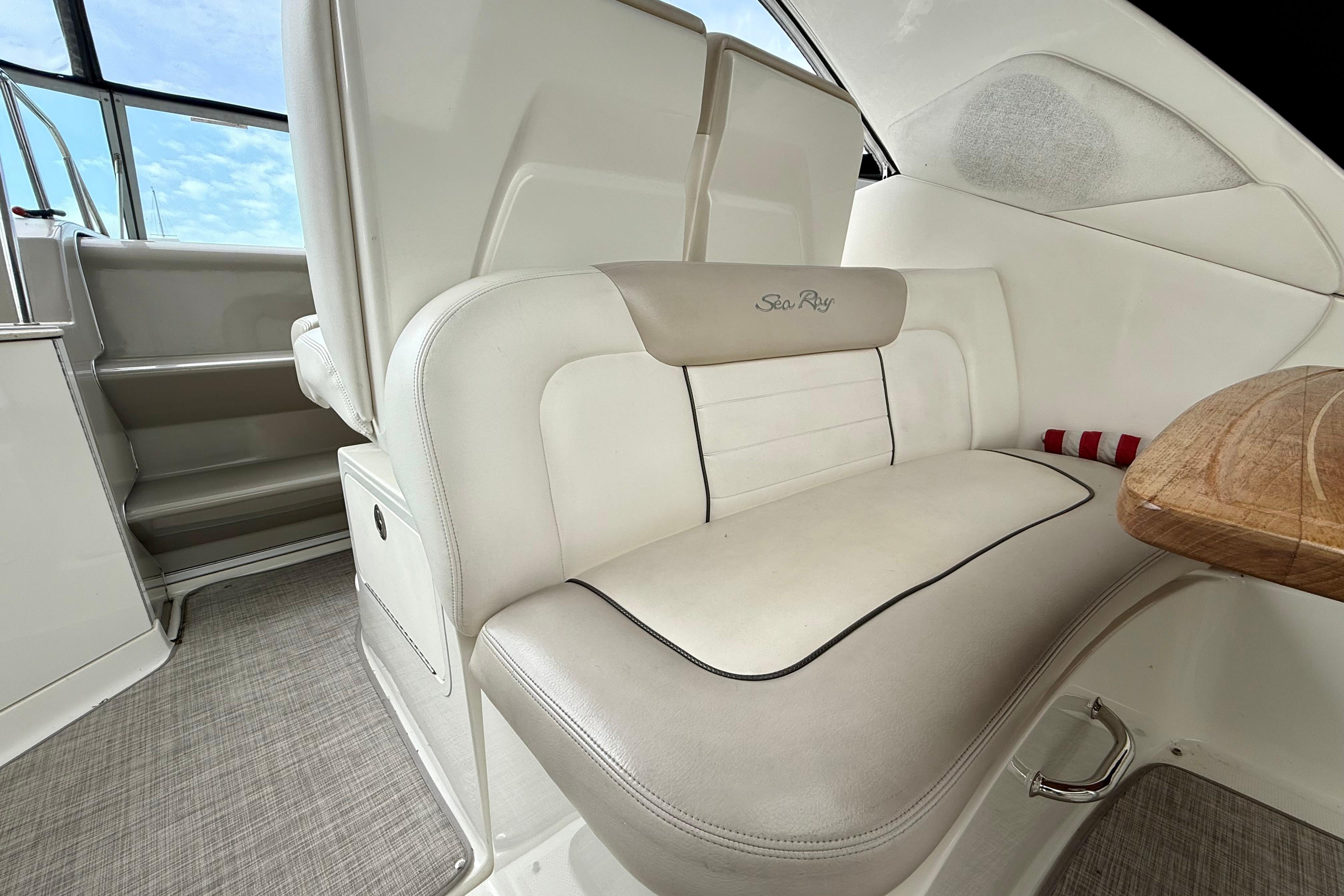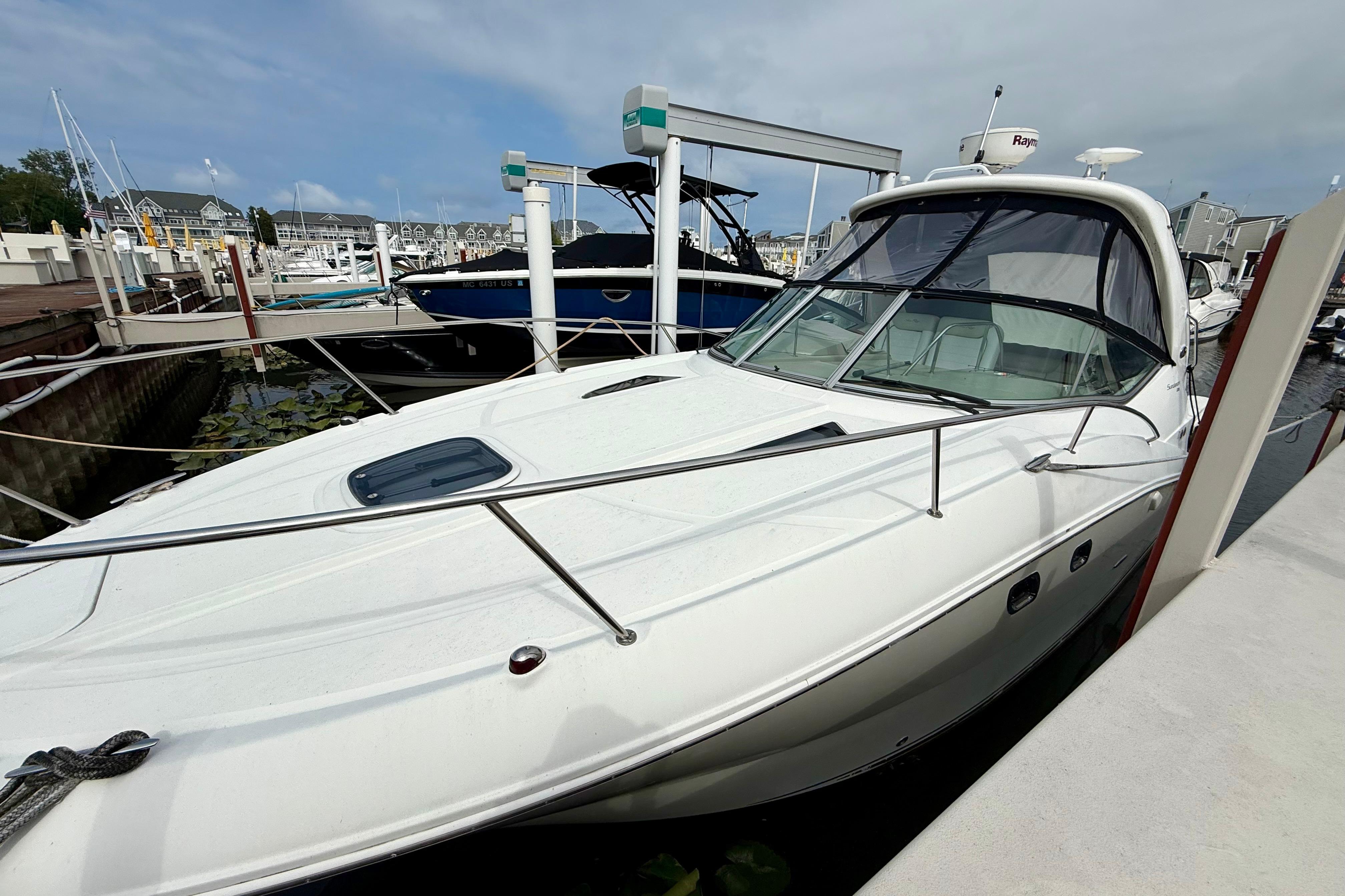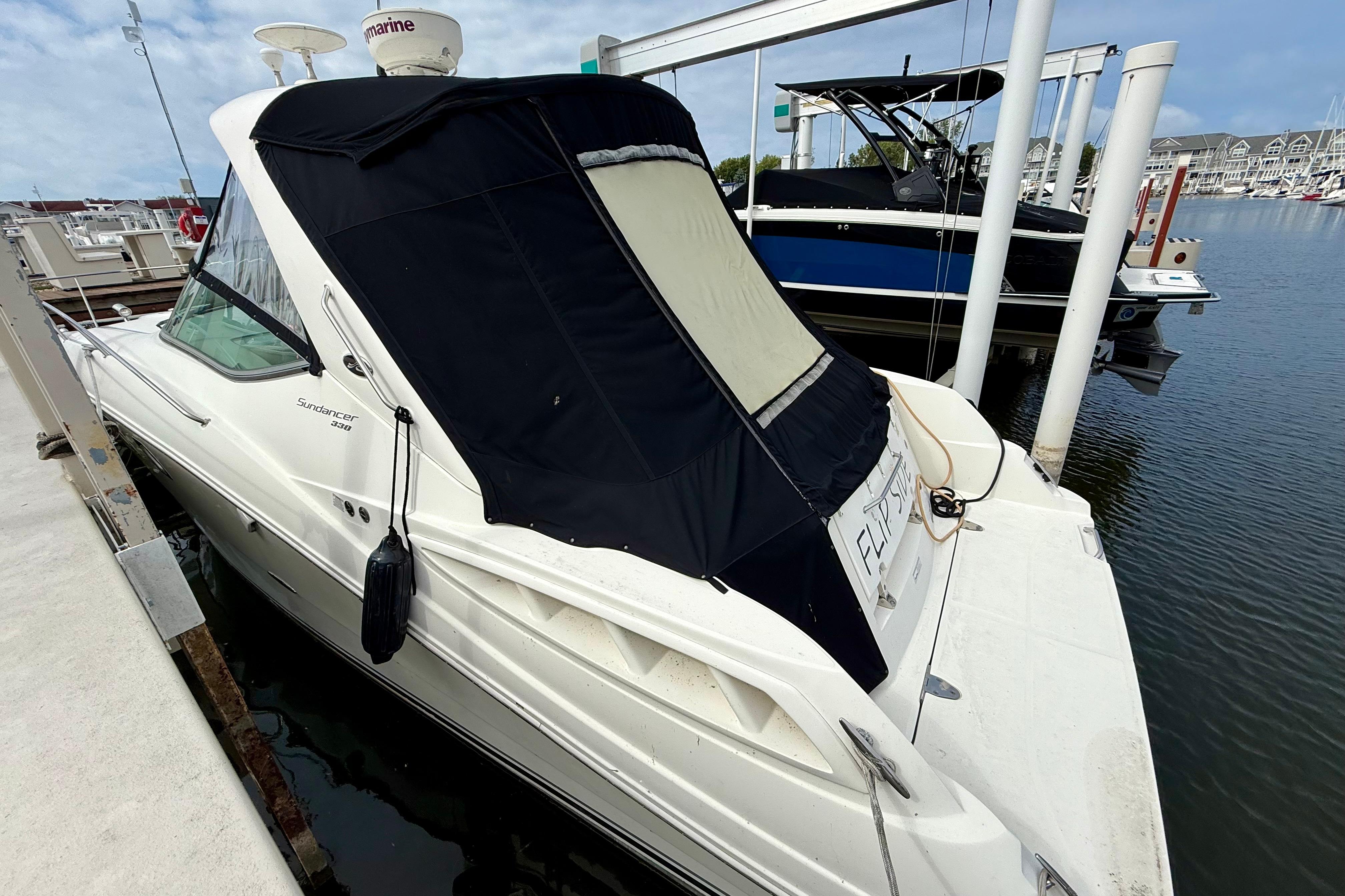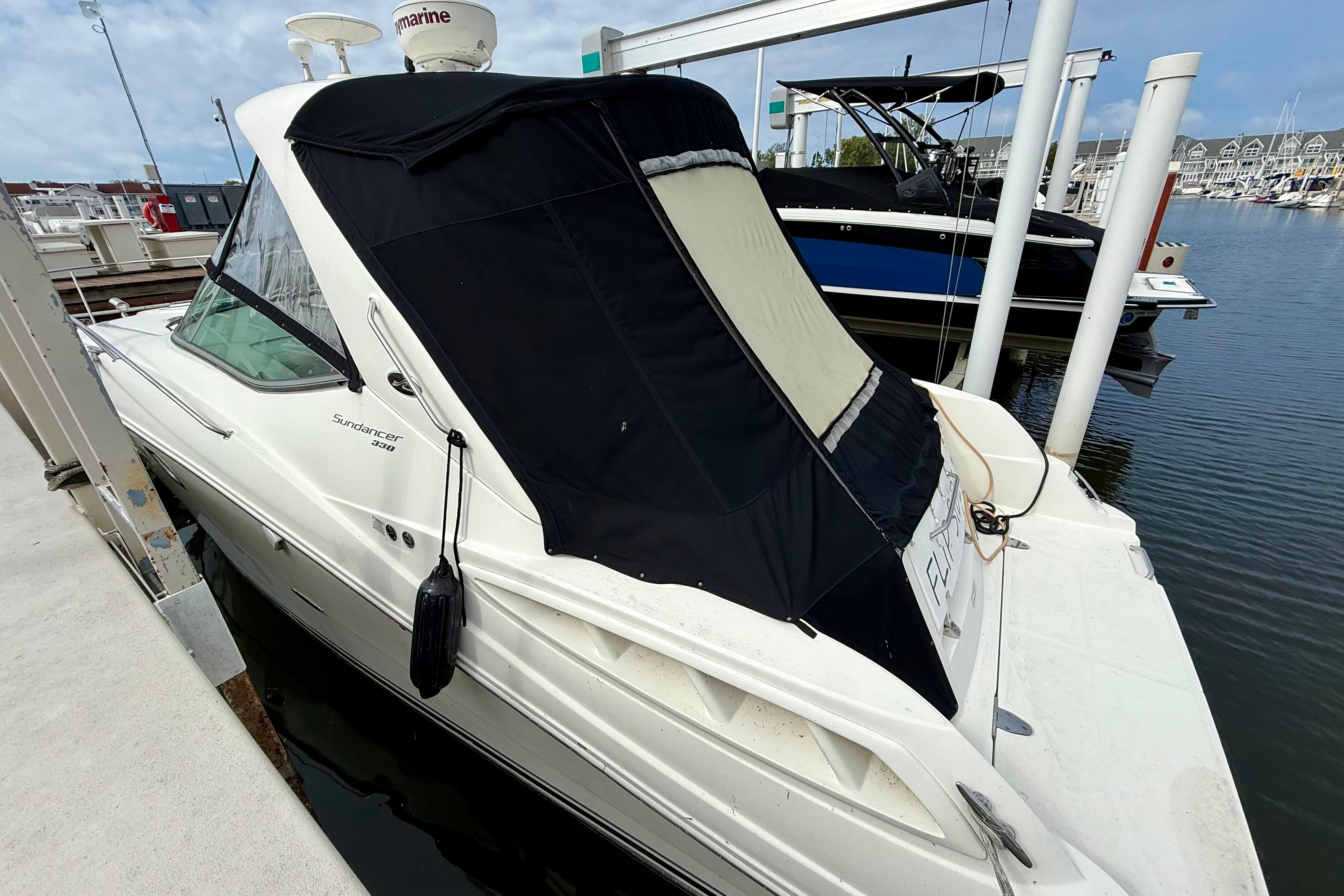The Sea Ray 330 Sundancer is one of the most sought-after express cruisers in her class, offering a perfect balance of performance, luxury, and comfort. With her sleek styling, spacious cockpit, and well-appointed cabin, this Sundancer is ideal for weekend getaways, entertaining on the water, or extended cruising. This Sundancer is equipped with twin 350 MAG MPI Axius mains with Bravo 3 DTS transmissions controlled by both sticks and joystick - Making maneuvering a breeze and docking the easiest part of your cruise. The carpet in the cockpit is relatively new at 2 years old and is completely removable by snaps. Overall, she is a fantastic boat that has been well cared for and is ready for her next owner.