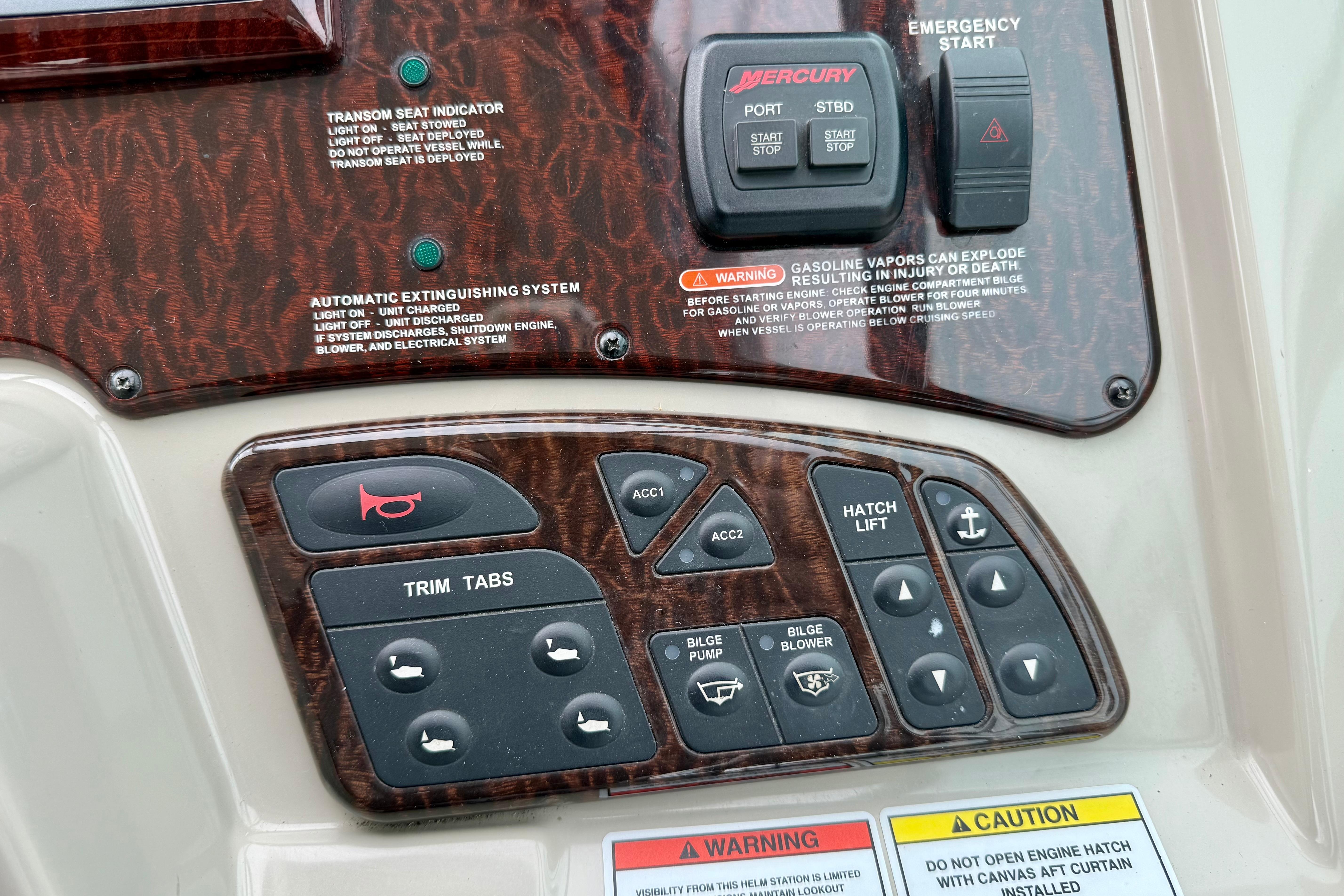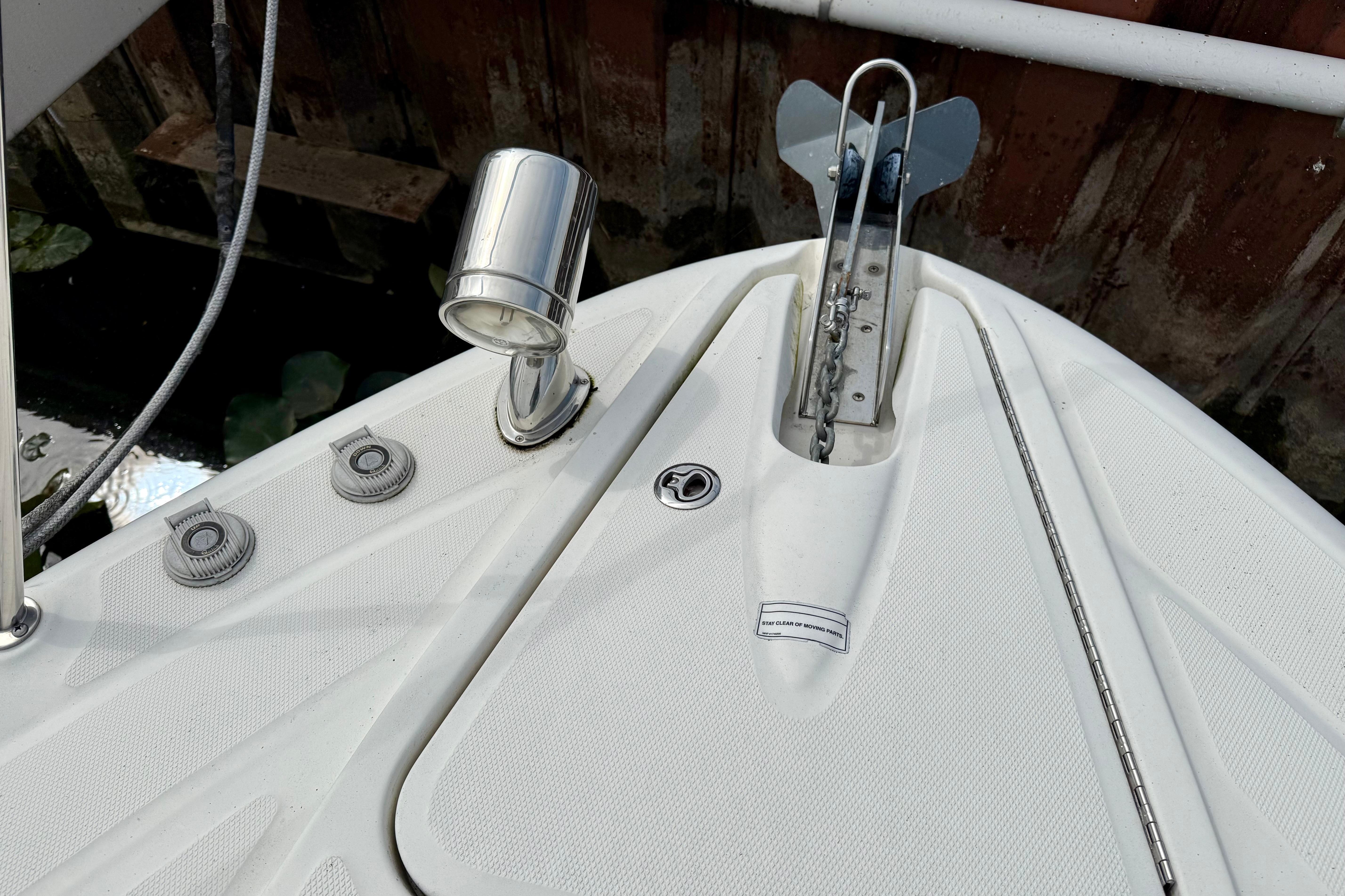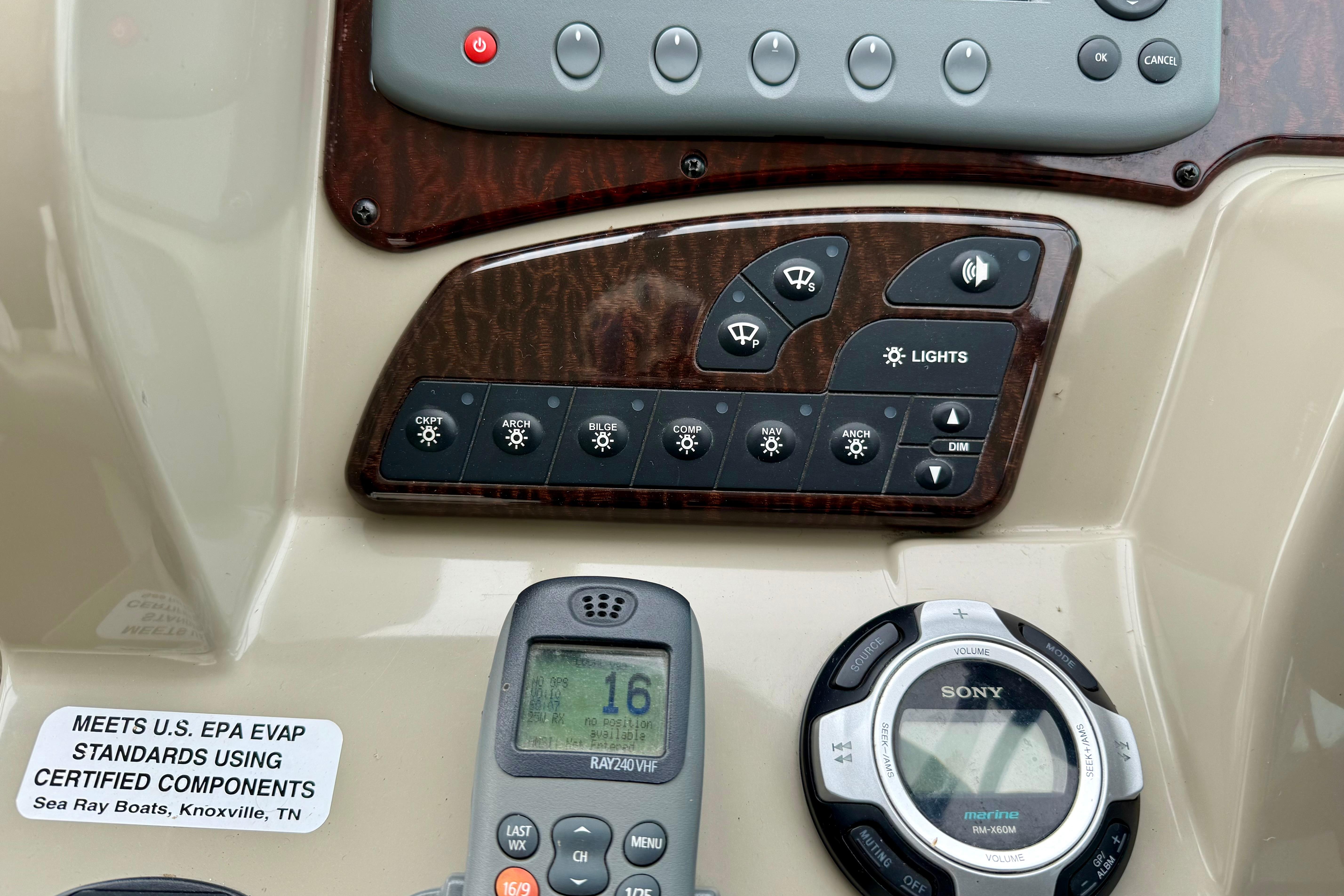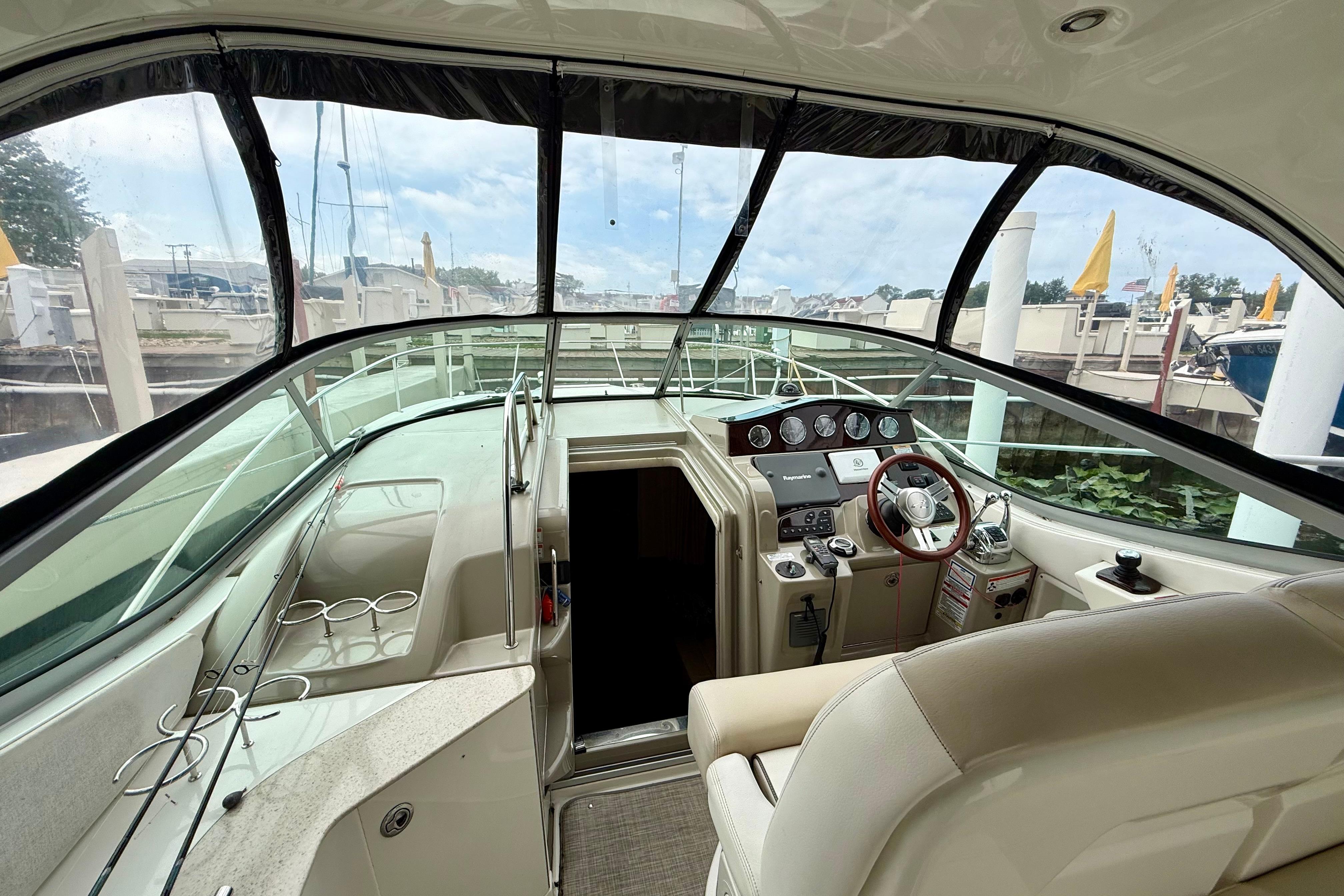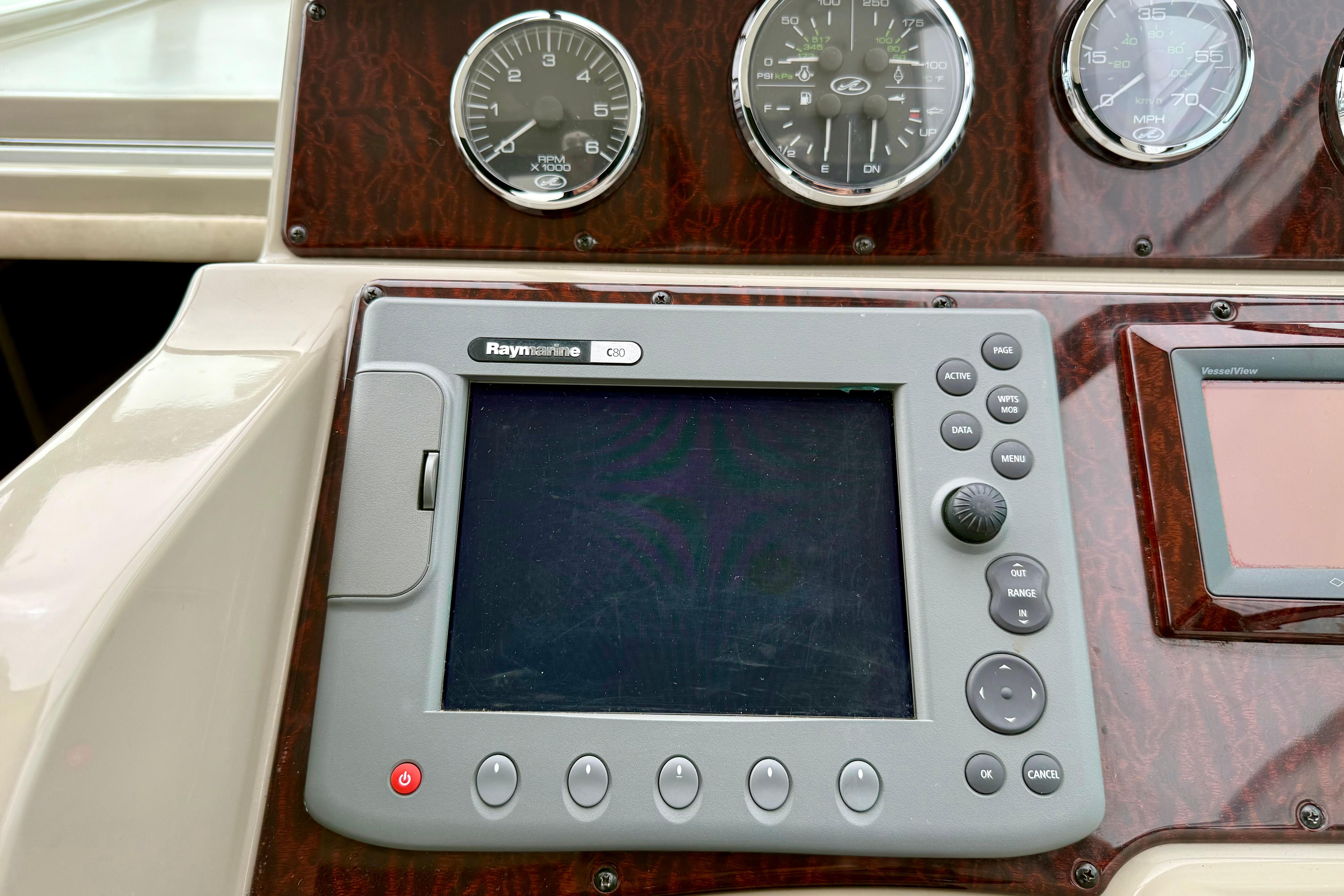 - Skyhook, Autopilot, Raymarine GPS/Chartplotter, VHF Radio, SmartCraft Vessel view, and compass