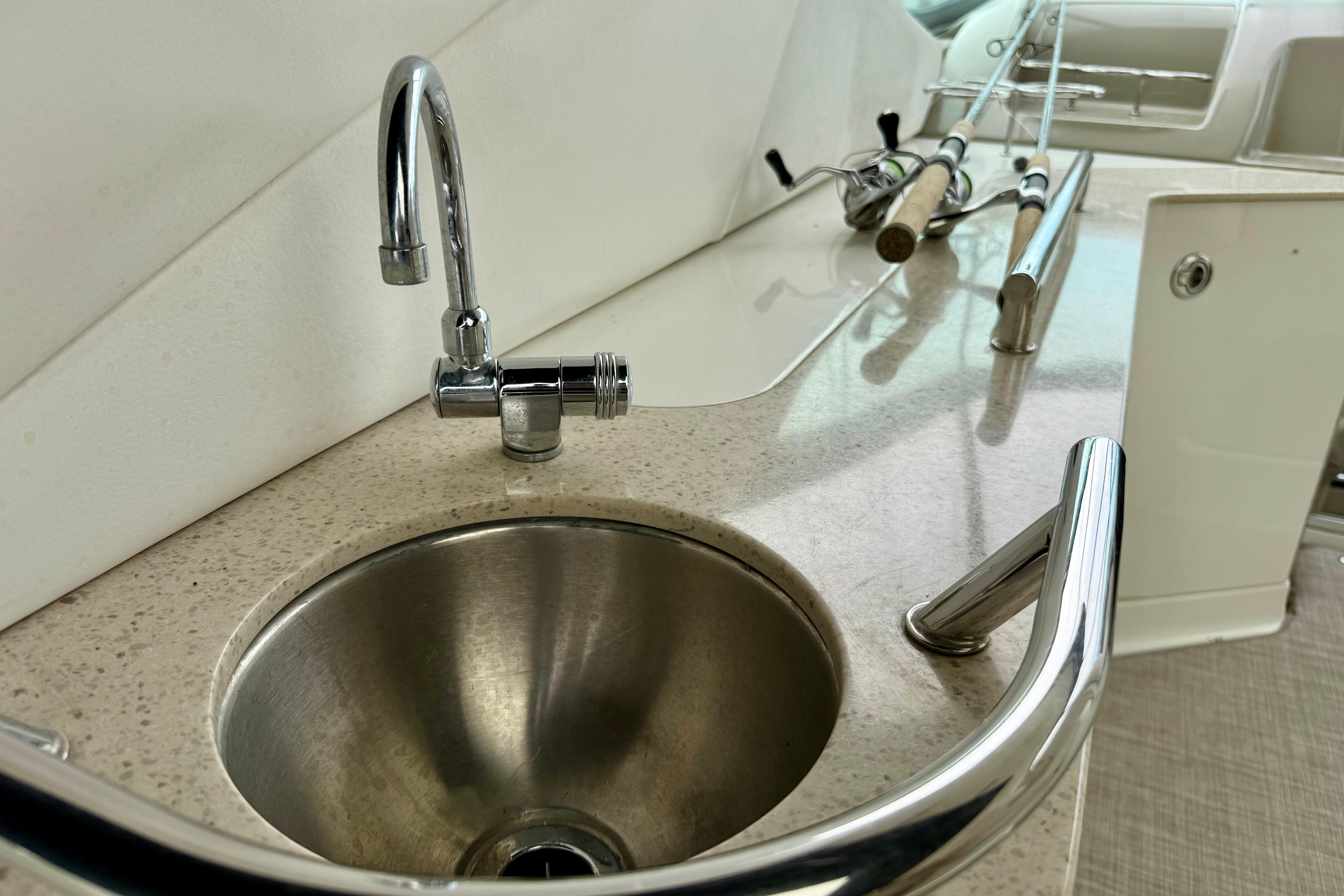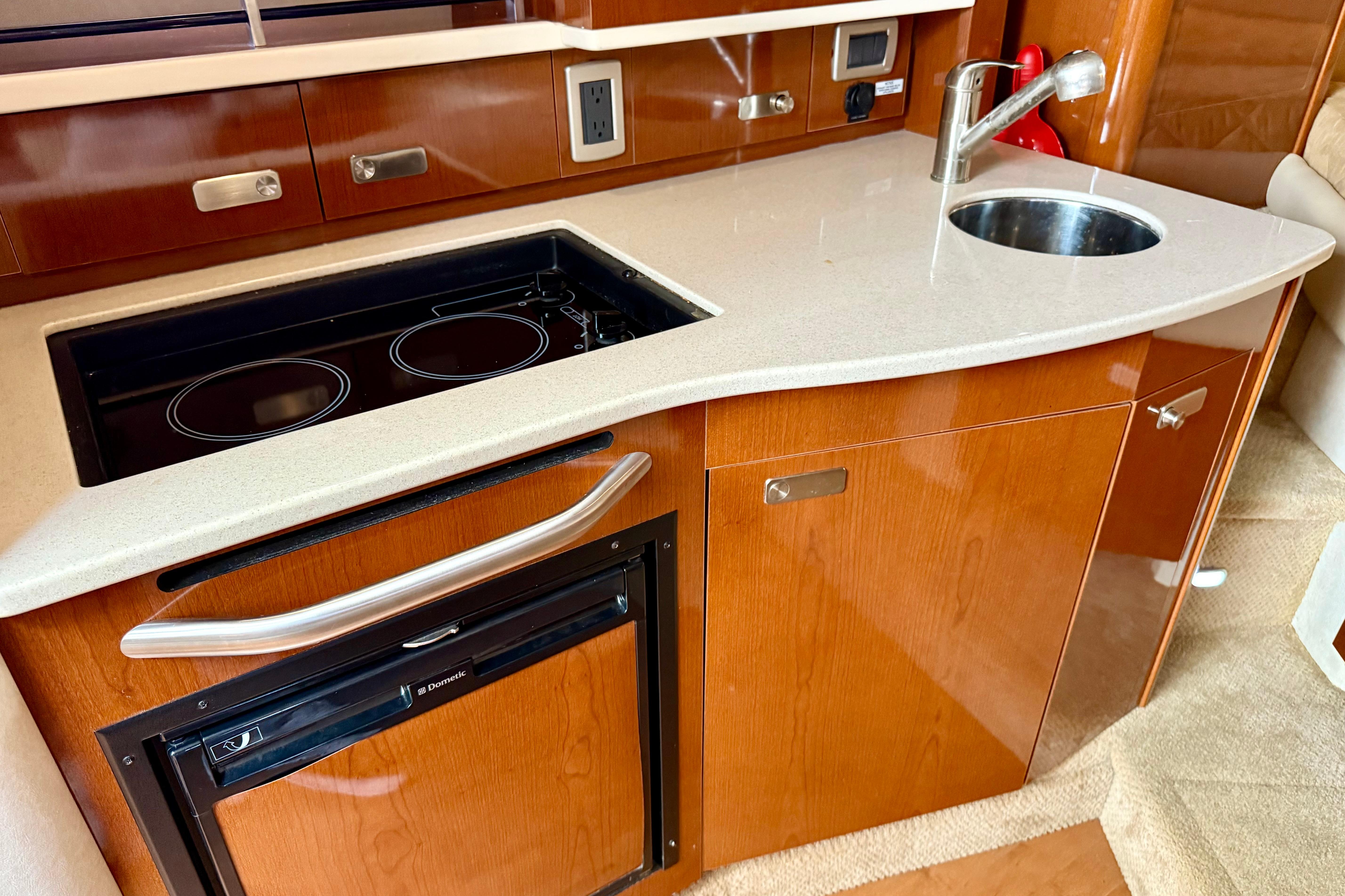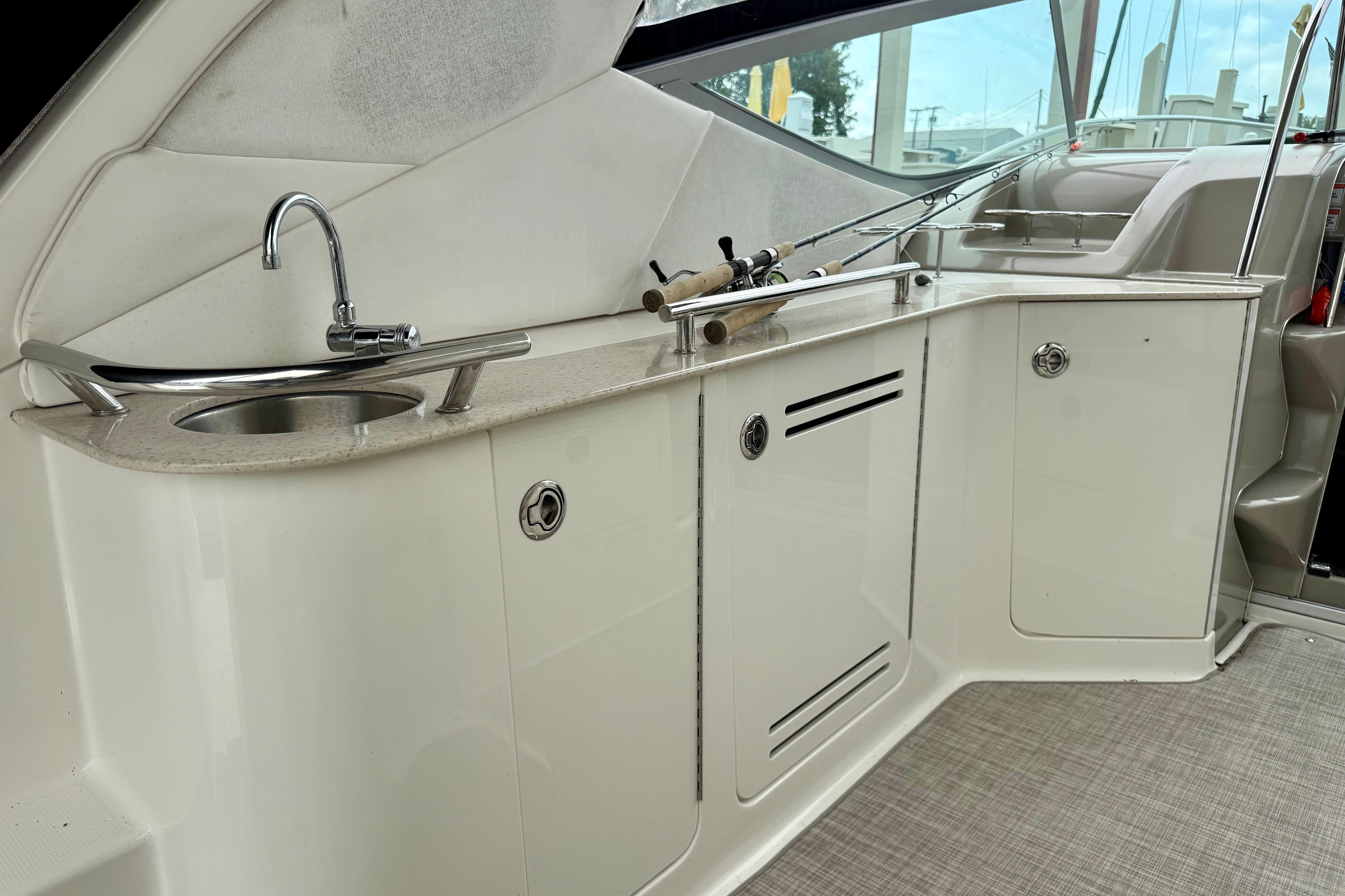 - Cockpit wet bar with refrigerator and sink