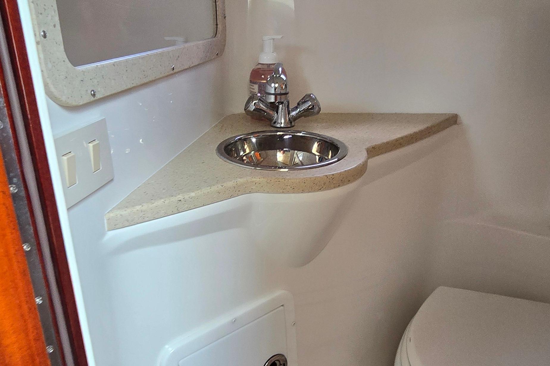 . It is geared toward day-boating and entertaining in style, rather than extended cruising.