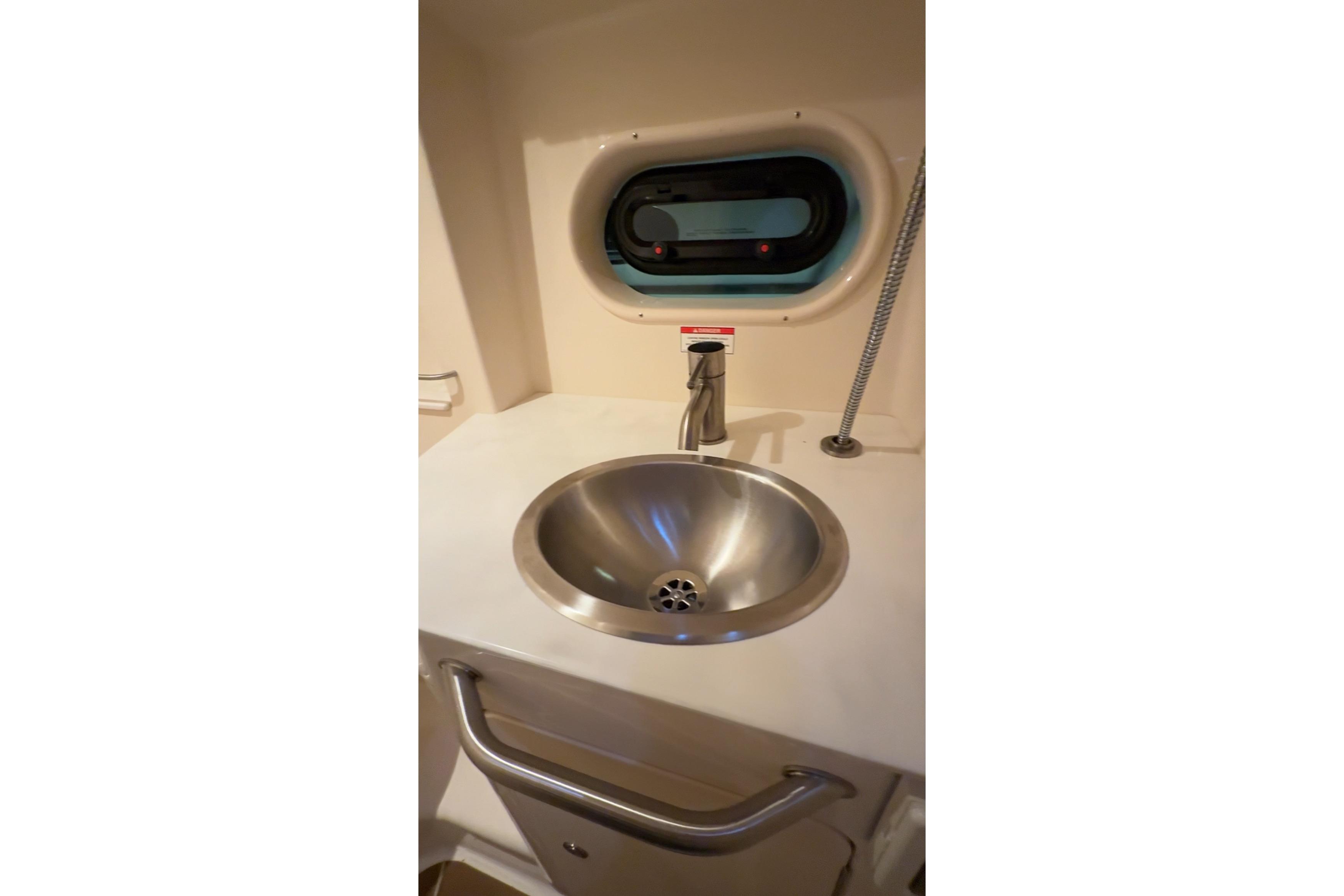 Always stored indoors in heated storage, this Sundancer shows like new. From the immaculate SeaDek flooring to the premium upholstery and stunning hickory wood interior, every inch reflects care and quality. Whether you're day cruising, entertaining, or overnighting, this vessel is ready to impress.