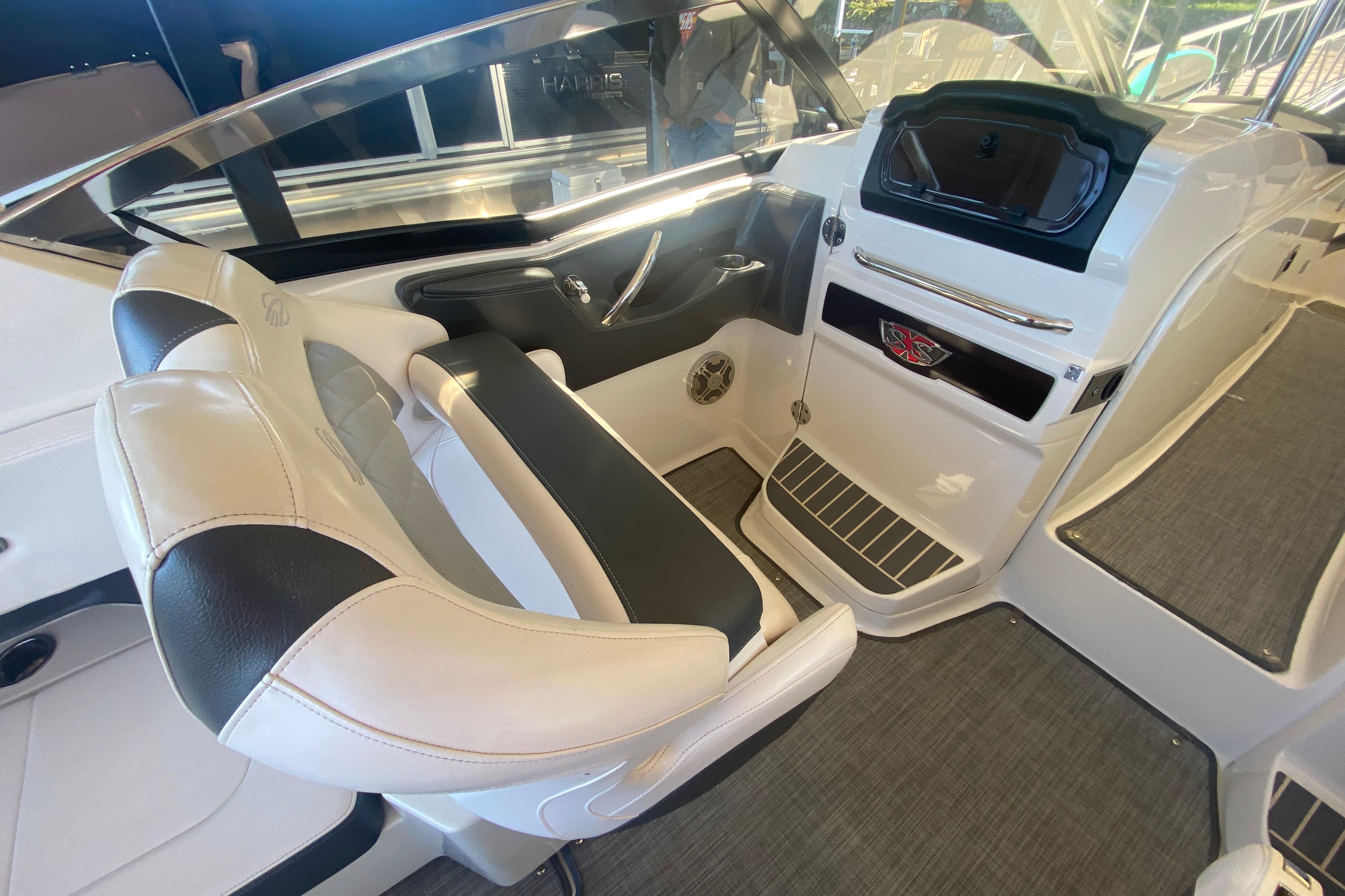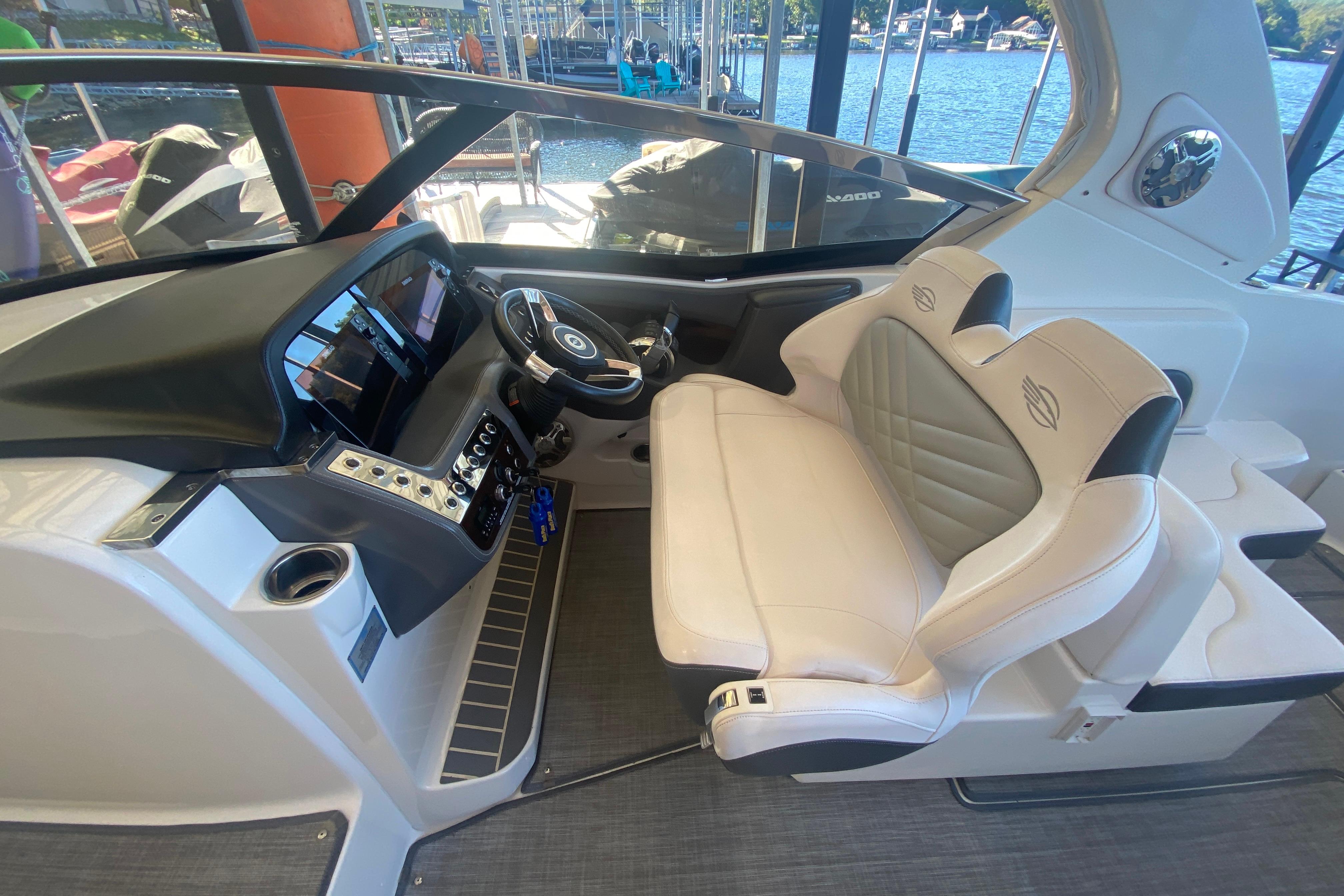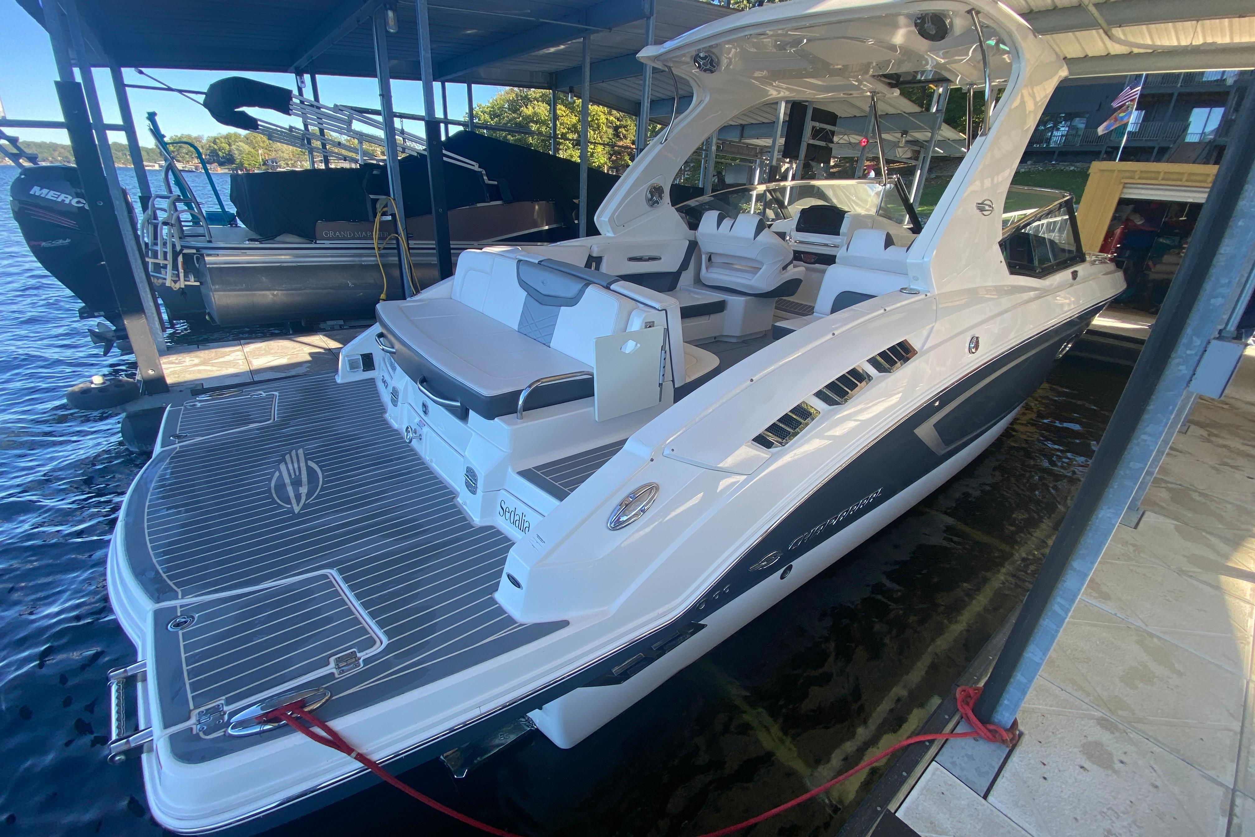 Beautifully kept, two-owner freshwater-only boat, stored on a covered lift and protected by a Marine Concepts cover. This 337 SSX is immaculate inside and out, with cabin amenities that show little to no use.