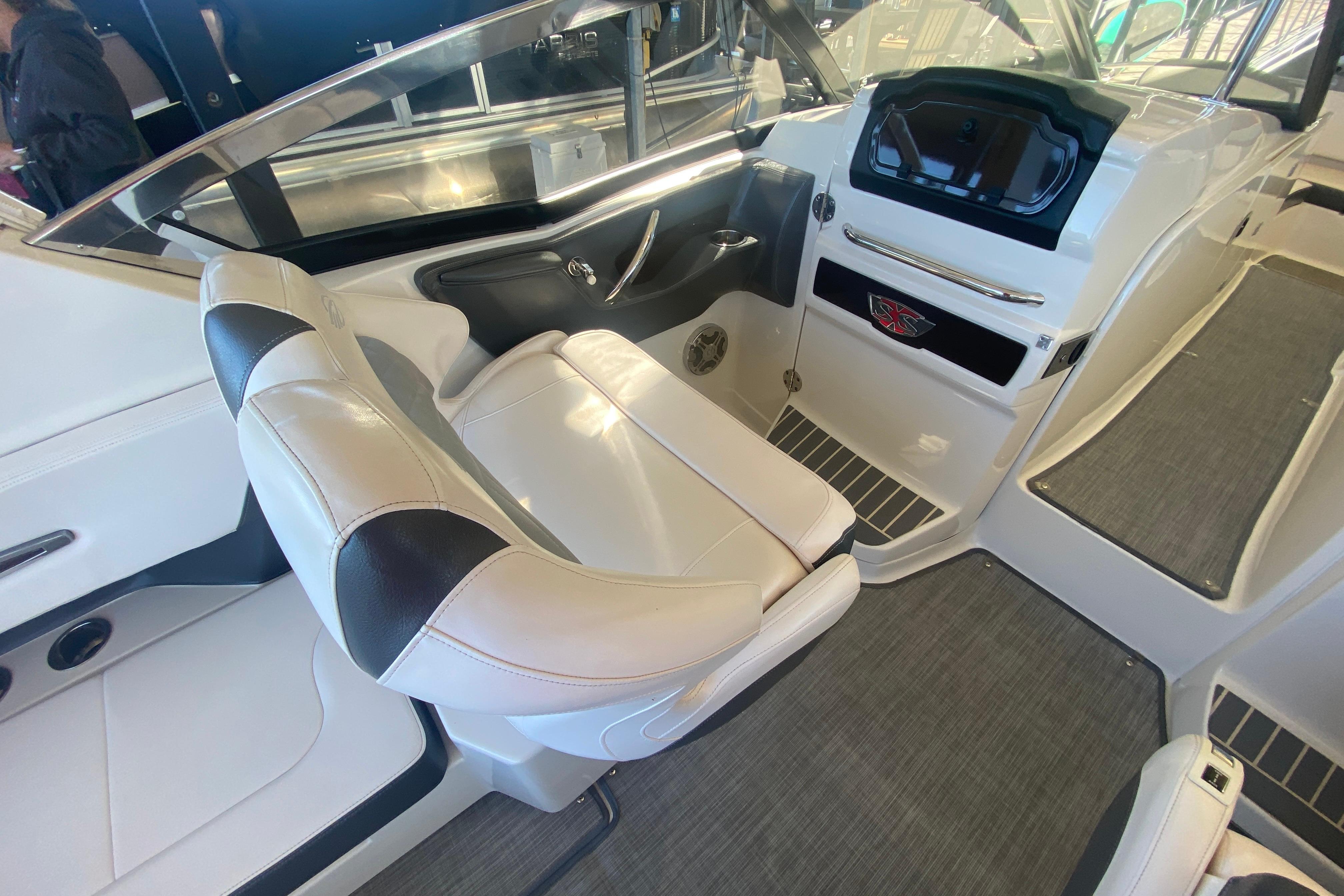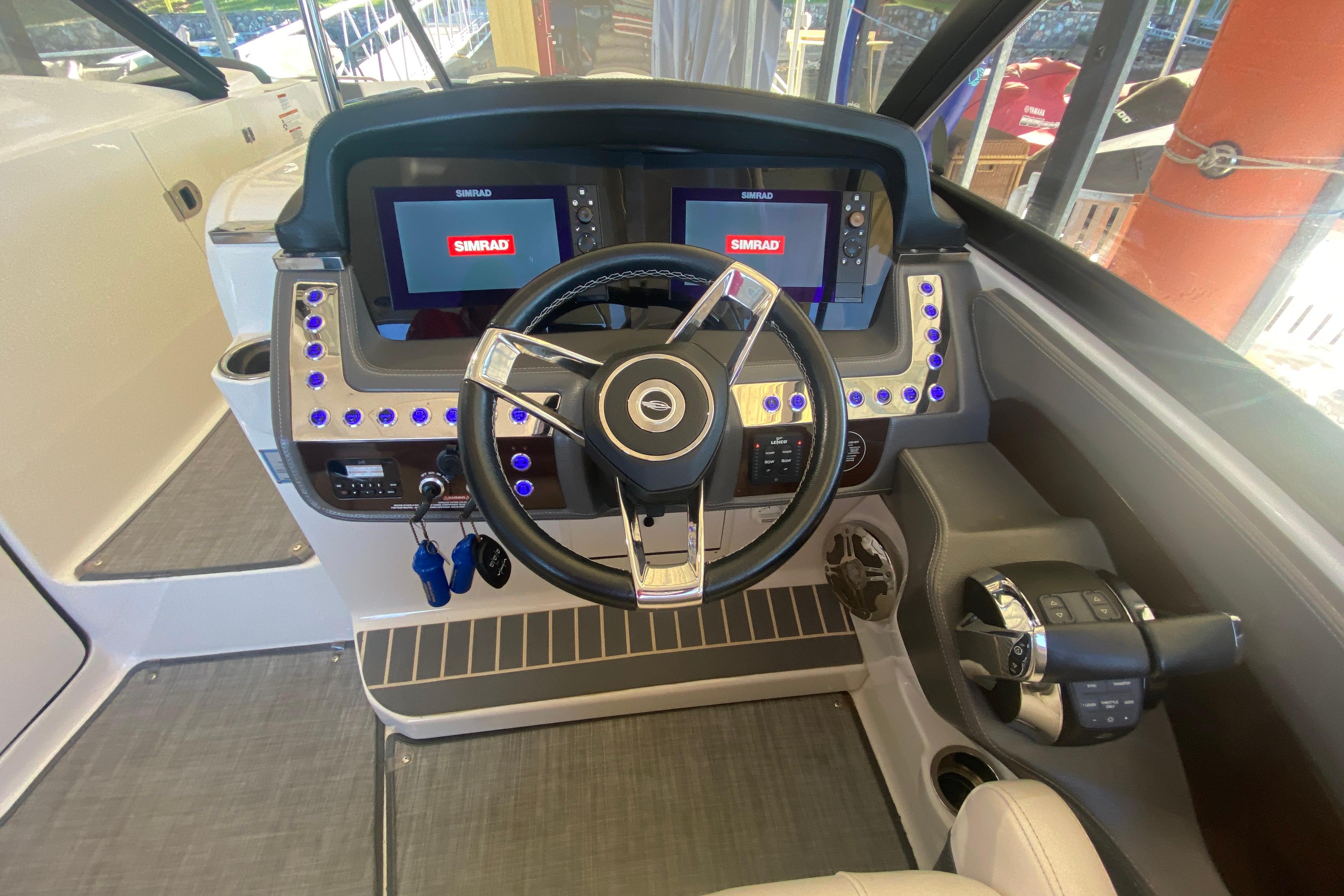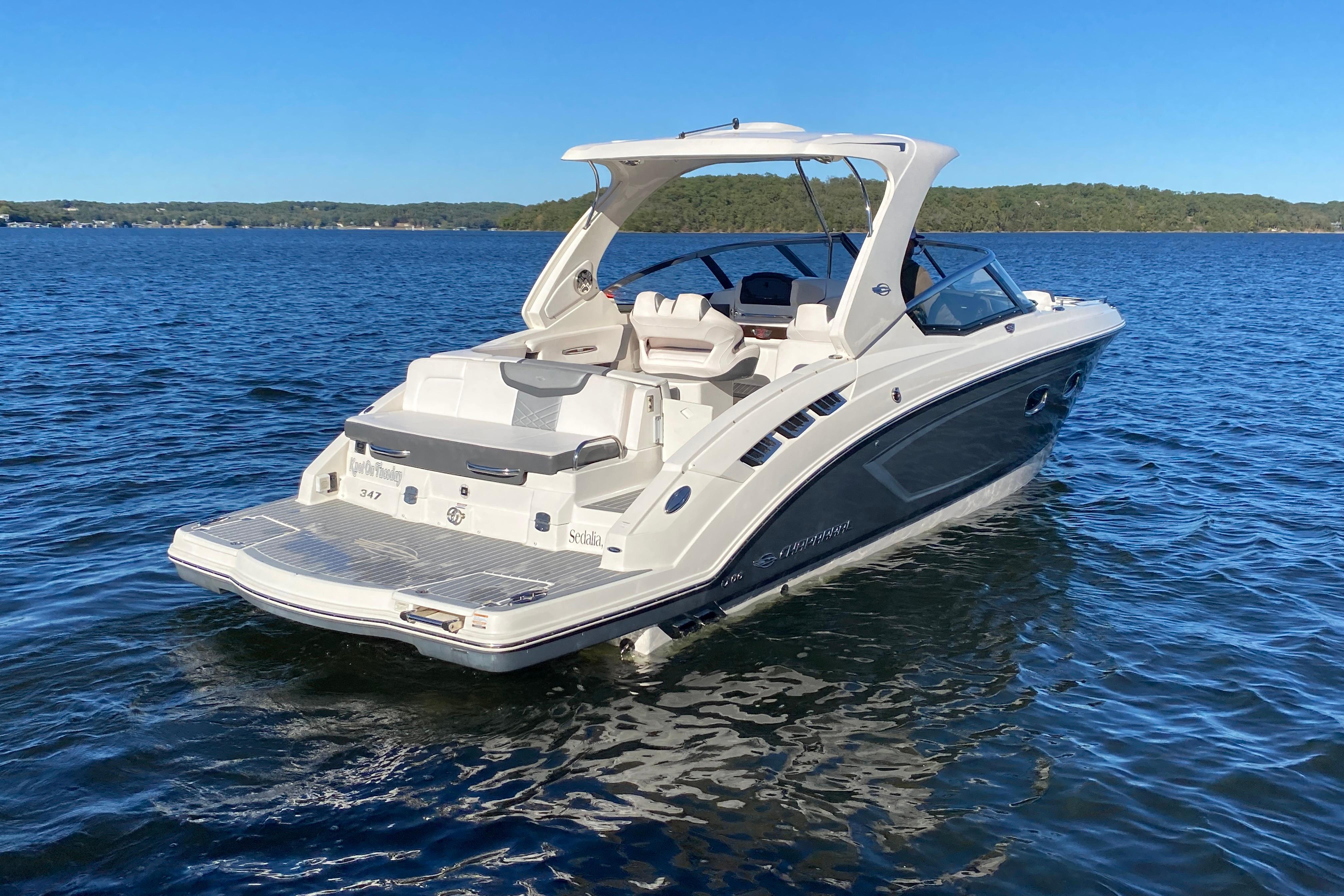 Beautifully kept, two-owner freshwater-only boat, stored on a covered lift and protected by a Marine Concepts cover. This 337 SSX is immaculate inside and out, with cabin amenities that show little to no use.