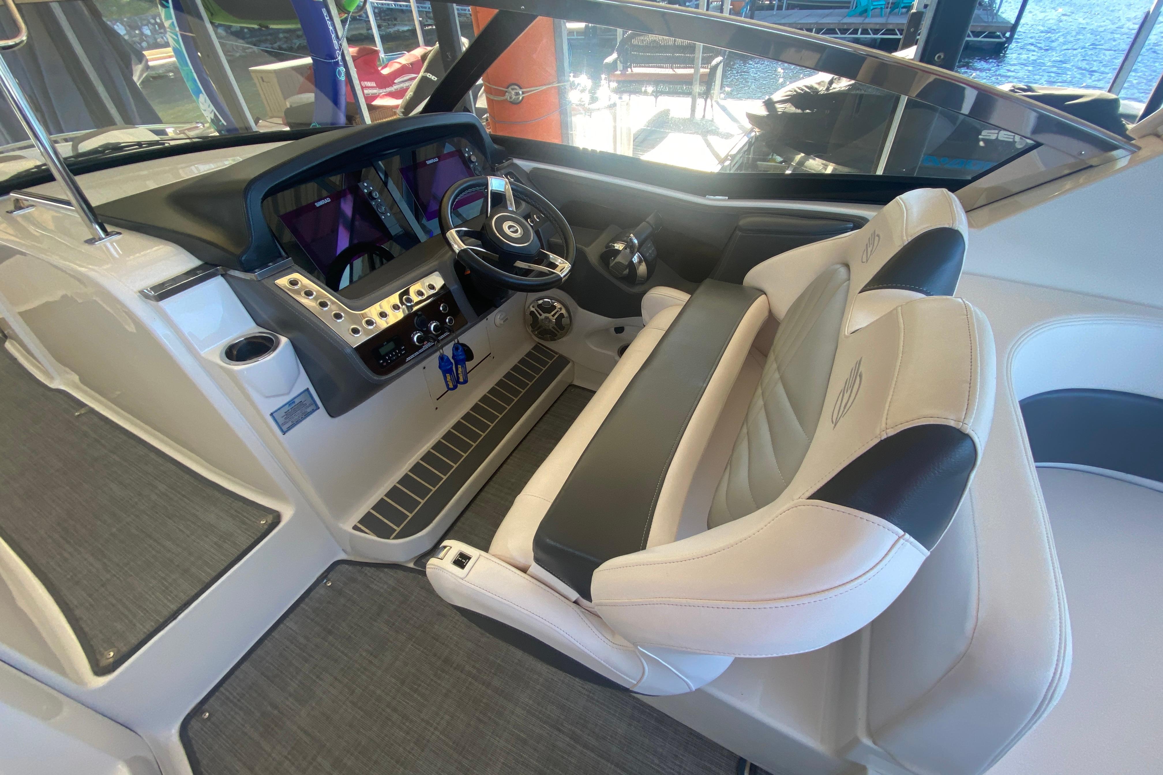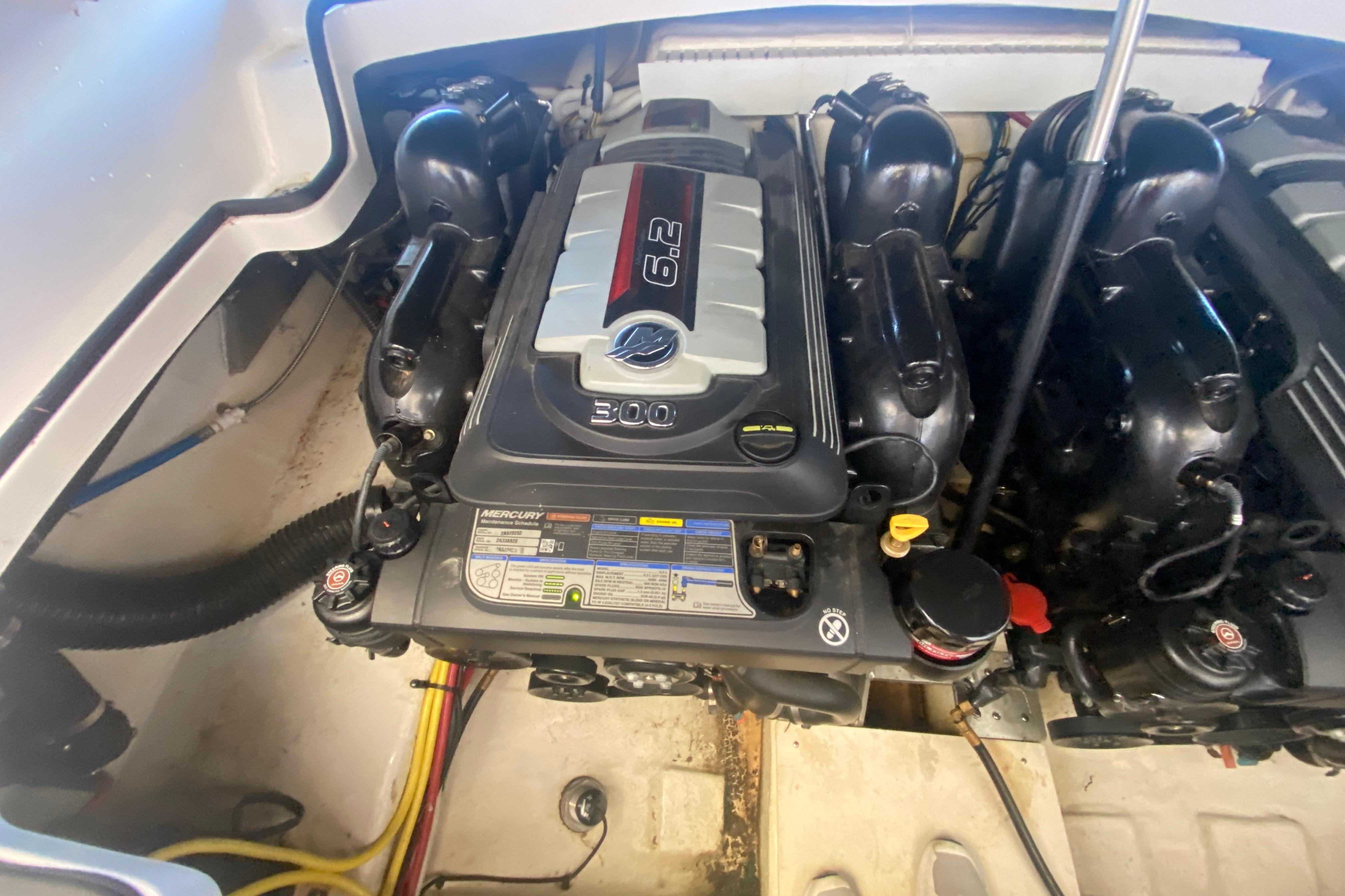 Equipped with Twin Mercury 6.2L DTS 300HP Bravo 3 drives, this boat delivers a smooth, confident ride with plenty of power for cruising or entertaining.