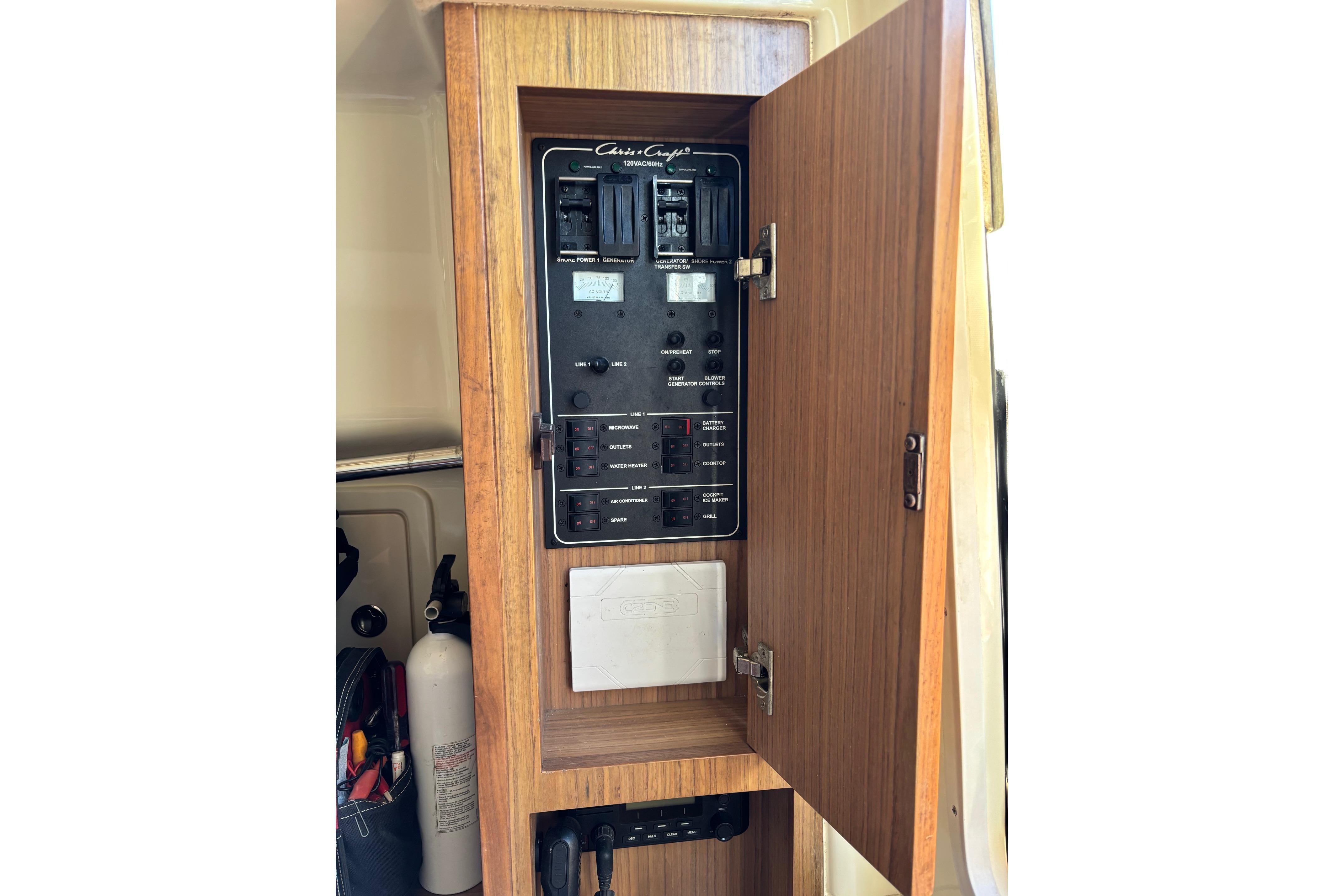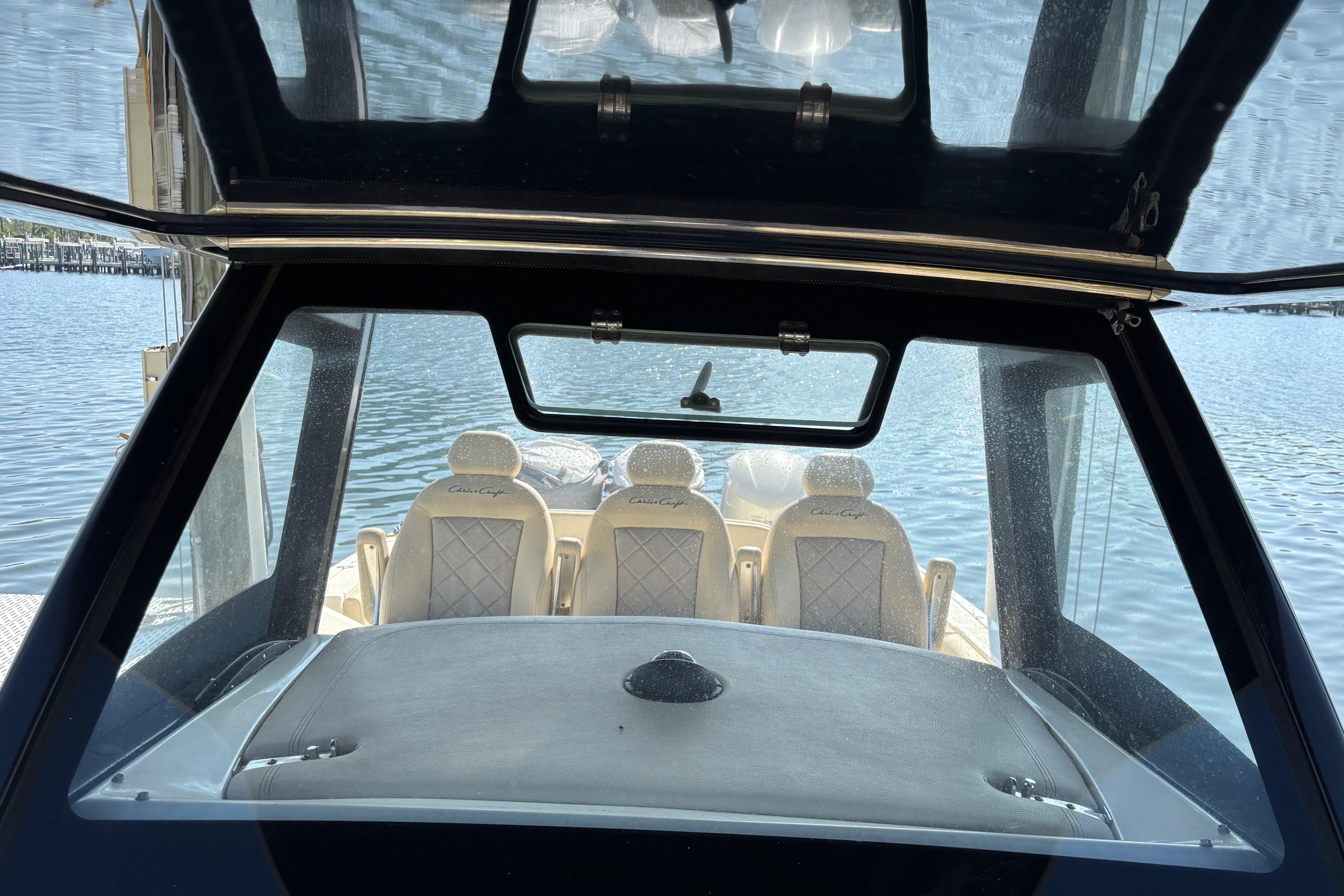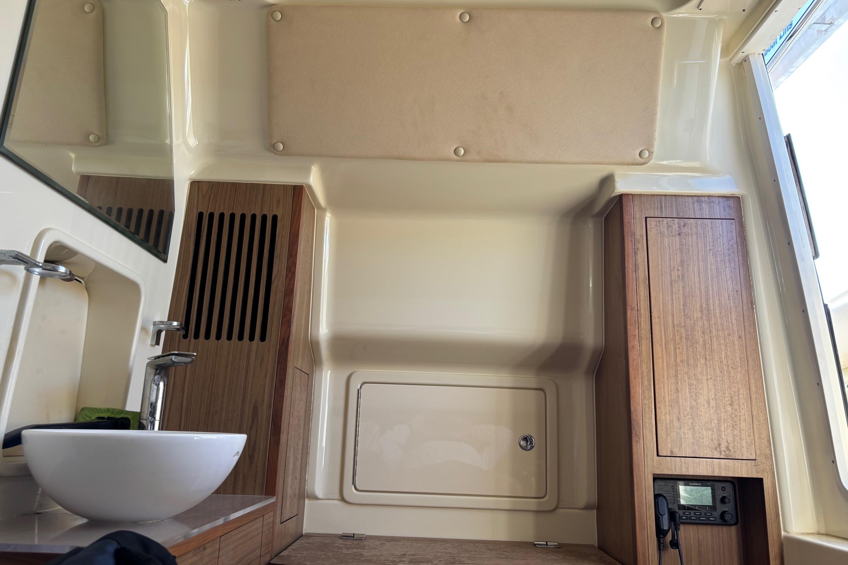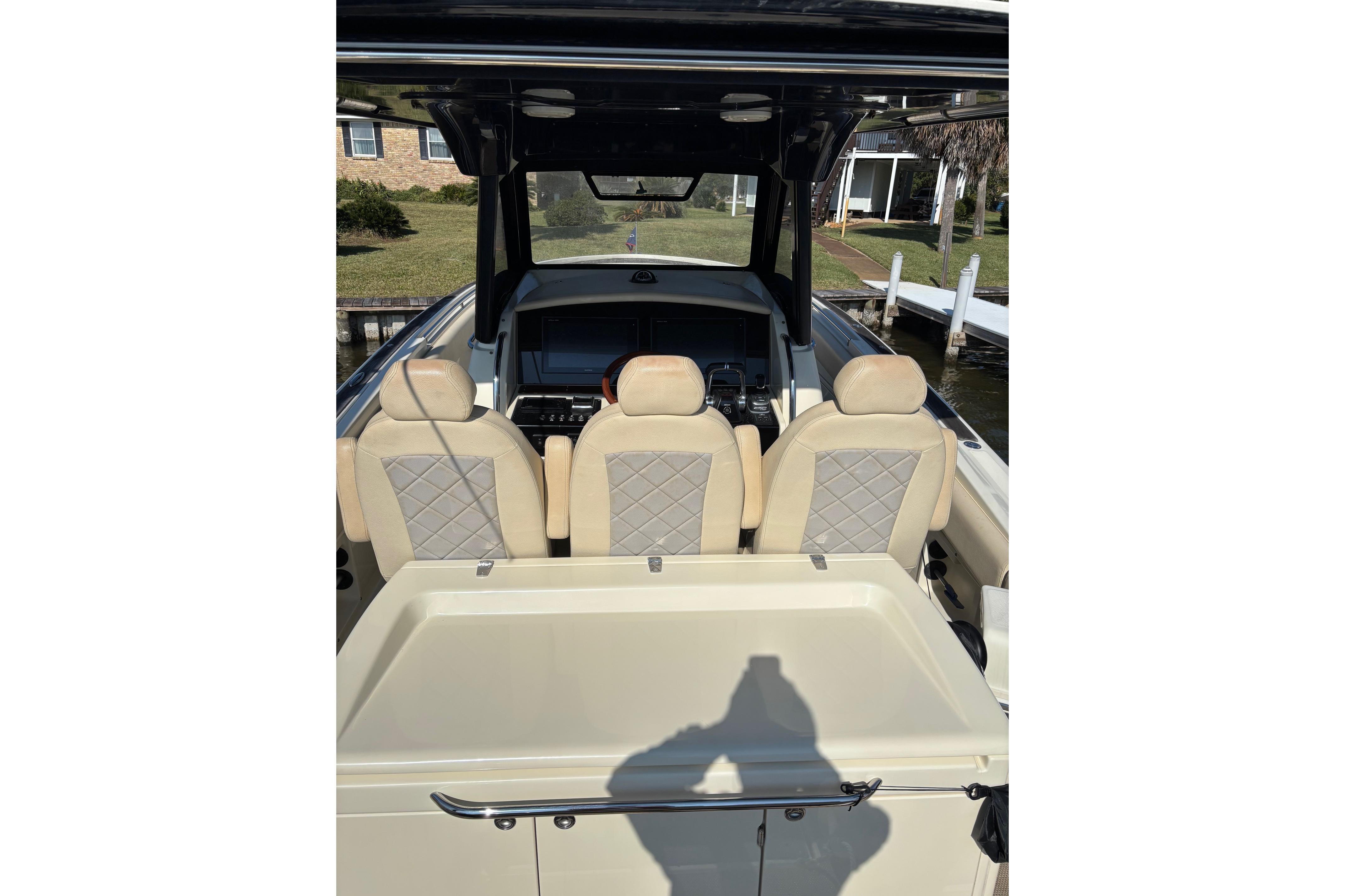 This Boat has every option available but not limited to. Fresh water Maker, Ice Maker, 5.0 KW 120/240-volt Generator , A/C, Rear retractable sun shade, Flir Night Vision. Garmin Radar, VHF and GPS. Fuel capacity is 322 gallons. Optimus Joystick for single lever operation, Fly-By-Wire throttles. New Optima Batteries - D27800CCA. Electric head, Sewage disposal system with holding tank. Single cabin inside the console featuring double berth, head and sink. Lewmar Pro Series winch, Delta Plow anchor with 300' of chain rope. Water Tap, Cockpit Refrigerator, Microwave, 2 burner stove top, and grill.Fusion stereo system with amplifier and multiple speakers operable from the helm and remote locations.