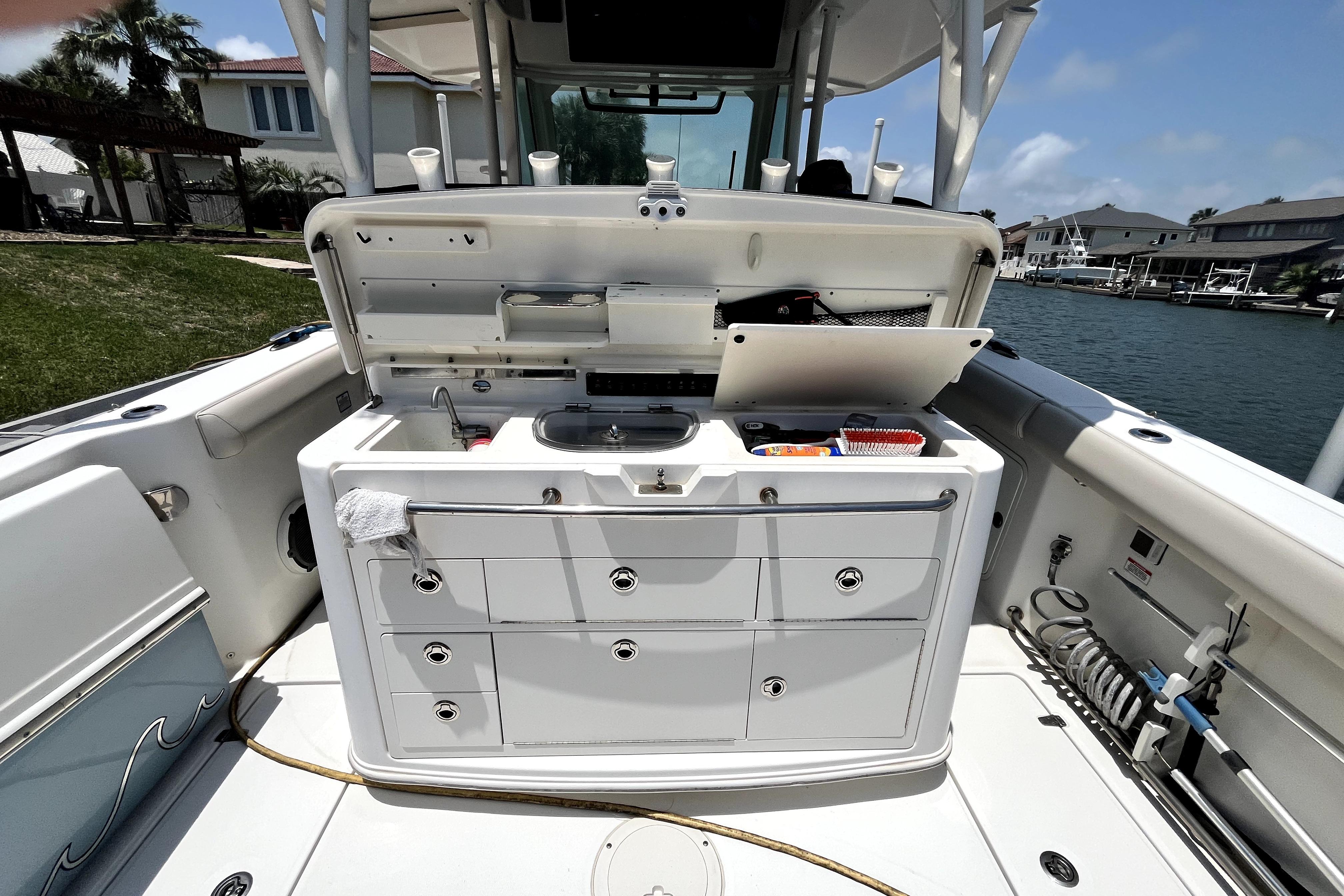 - Enjoy ample fish-fighting room in the cockpit, courtesy of a wide beam and fold-away aft bench.