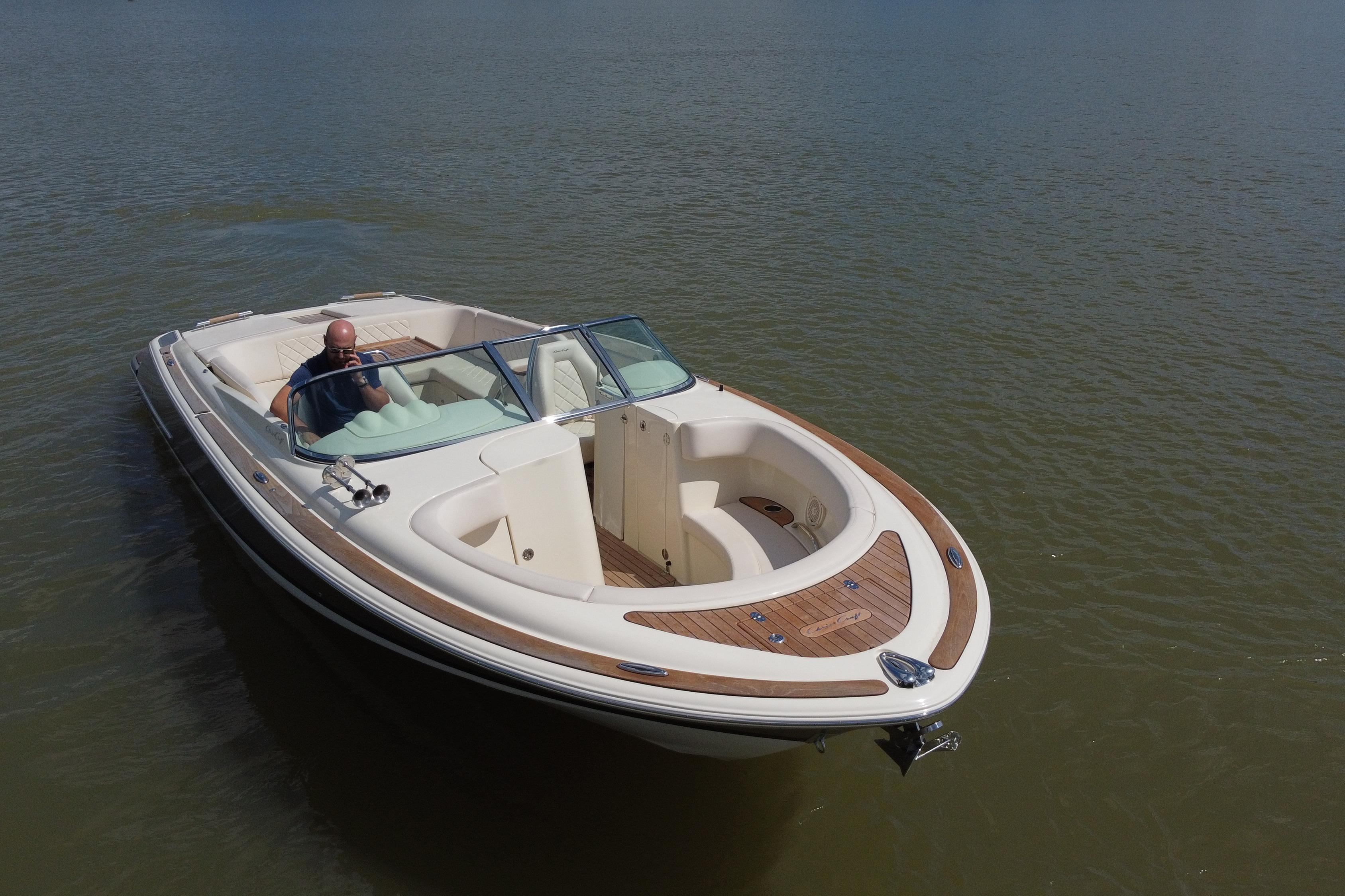 Exuding the signature Chris-Craft heritage, the Launch 30 features an abundance of beautifully finished teak decking, premium upholstery, and stainless-steel accents. Power is delivered by twin Mercury engines, offering exhilarating performance and confident handling in a variety of conditions.