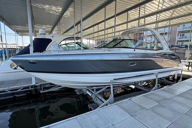 Lift kept under a mooring cover & covered dock this boat has only serviced by Formula Boats of Missouri a certified Mercruiser dealer.