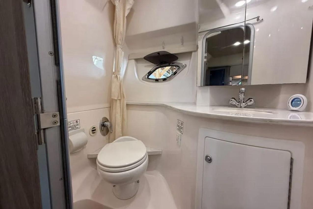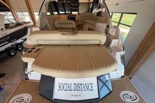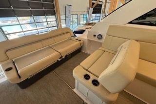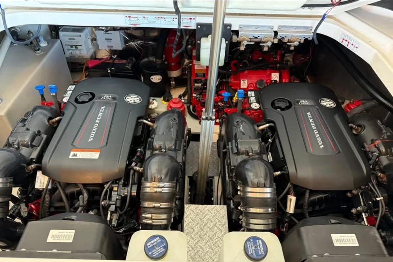 Powered by upgraded twin Volvo Penta 350 V8 gasoline engines (standard is 300s) with stainless steel DuoProps, the boat delivers excellent performance, efficiency, and reliability. Engines, and drives have 518 hours and have been consistently maintained to a high standard.