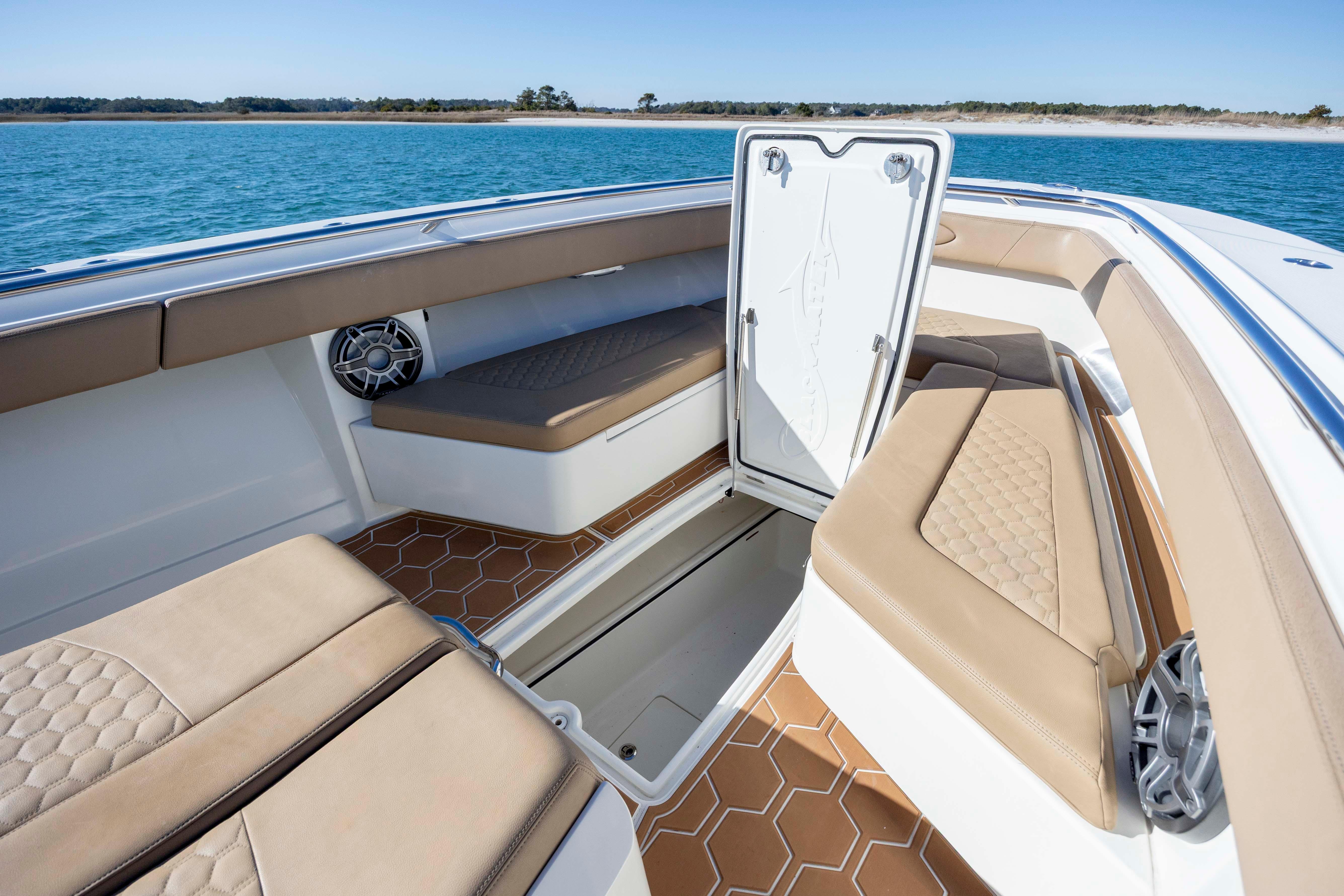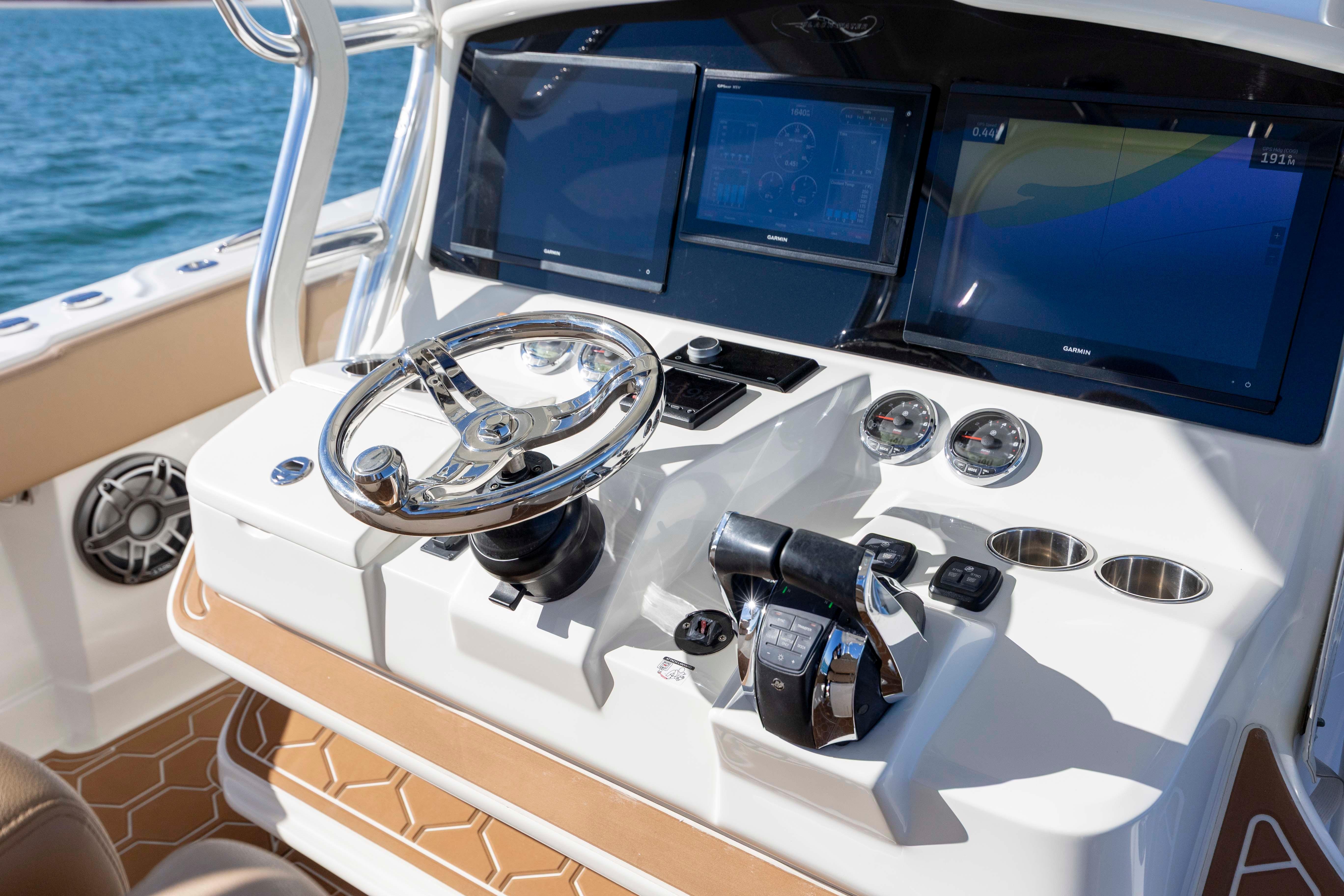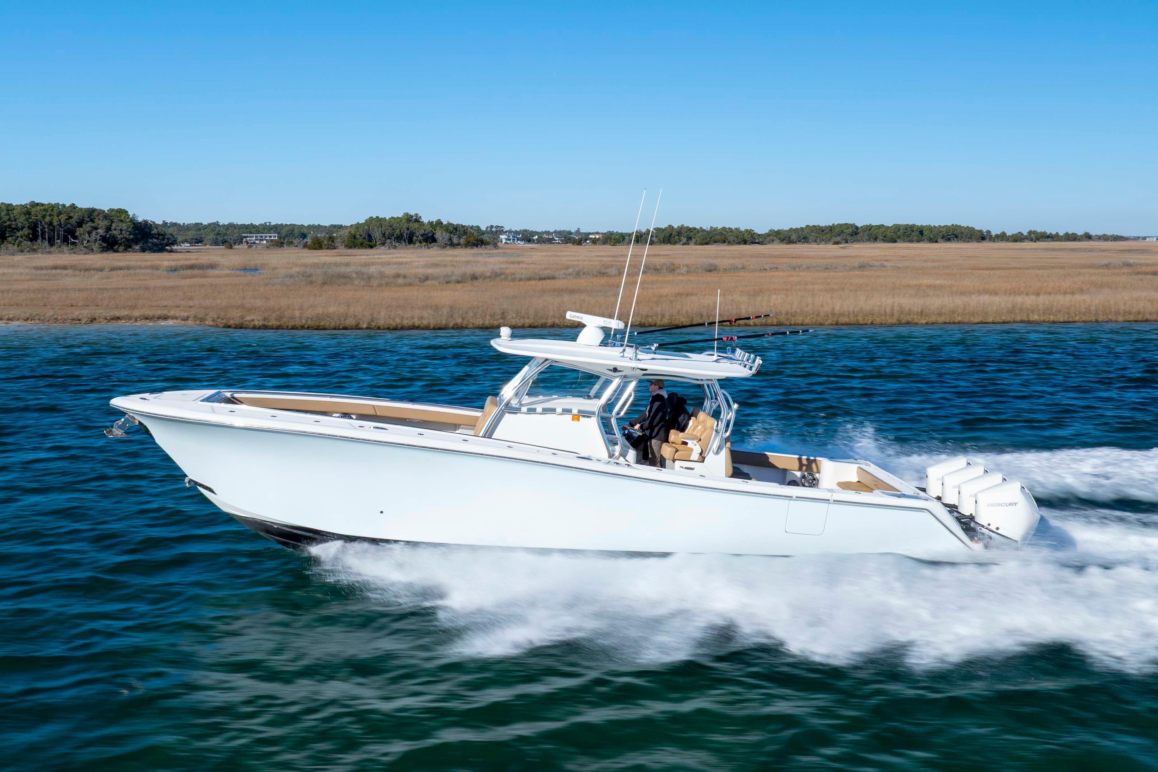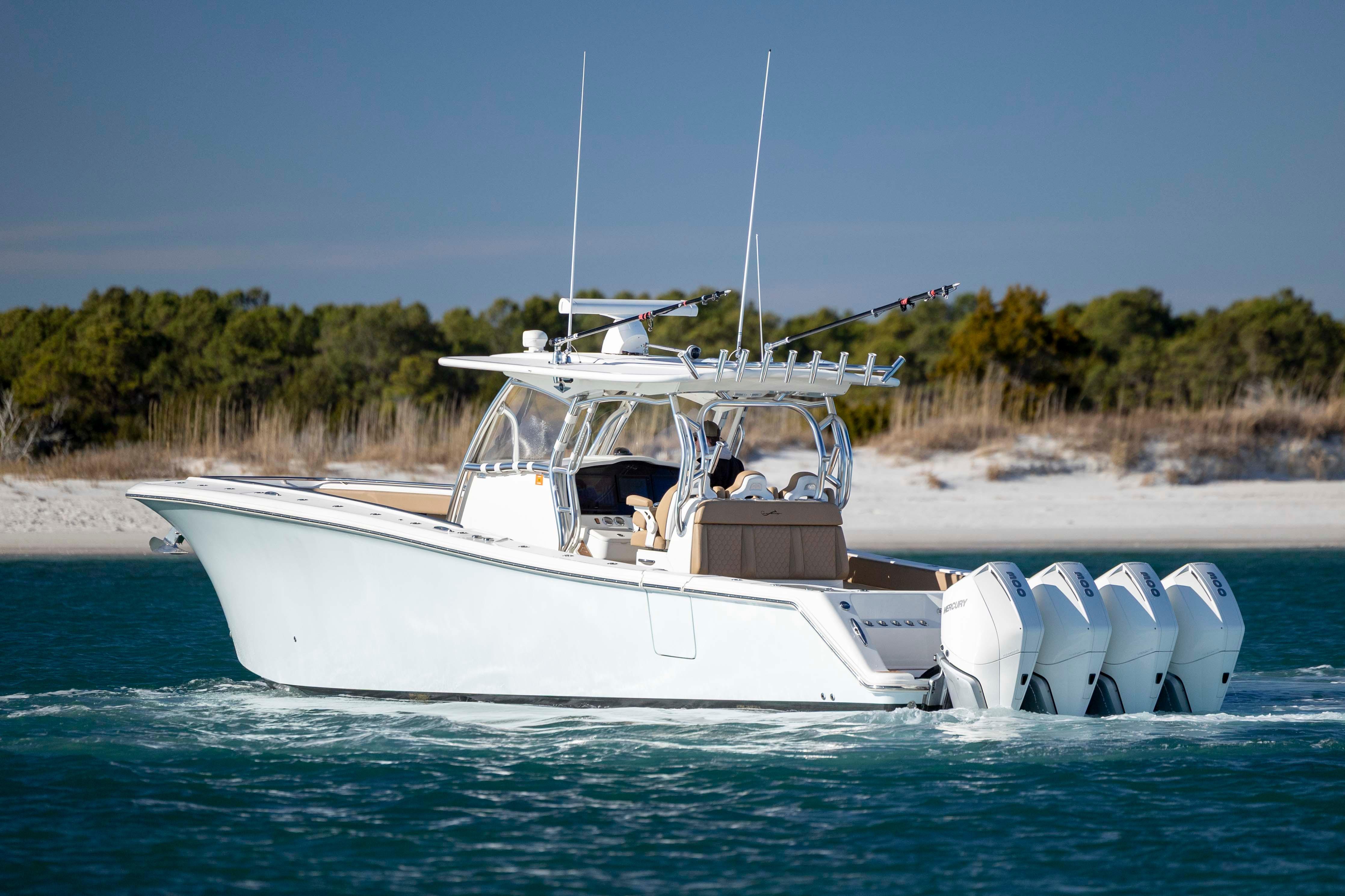 The 2020 Blackwater 41 Tournament is a hardcore offshore center console designed for serious bluewater performance, range, and fishing capability. Outfitted with quad Mercury V8 power, a tournament-grade livewell system, sea chest, massive rod storage capacity, and a premium electronics/audio package, this boat is tournament-ready.