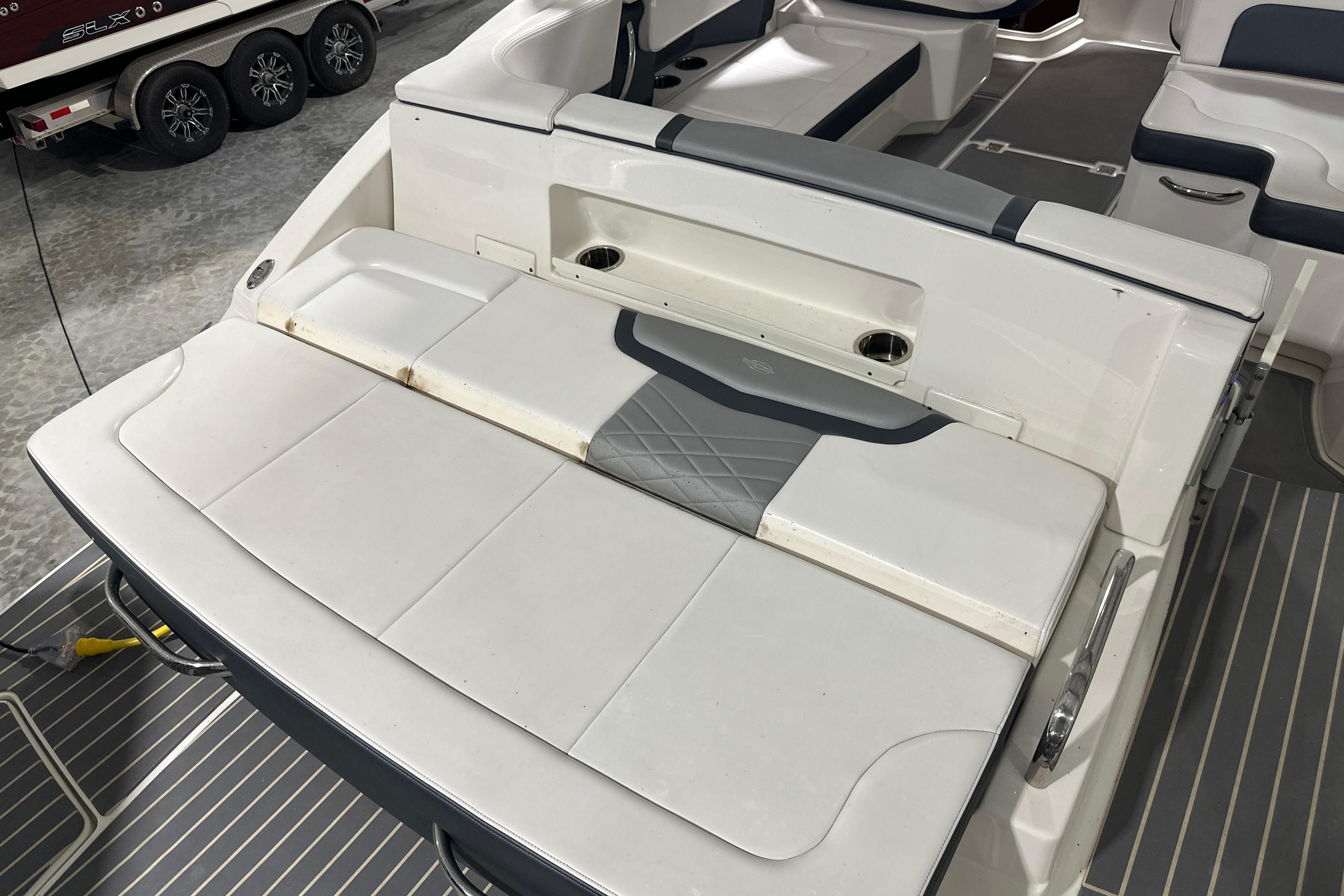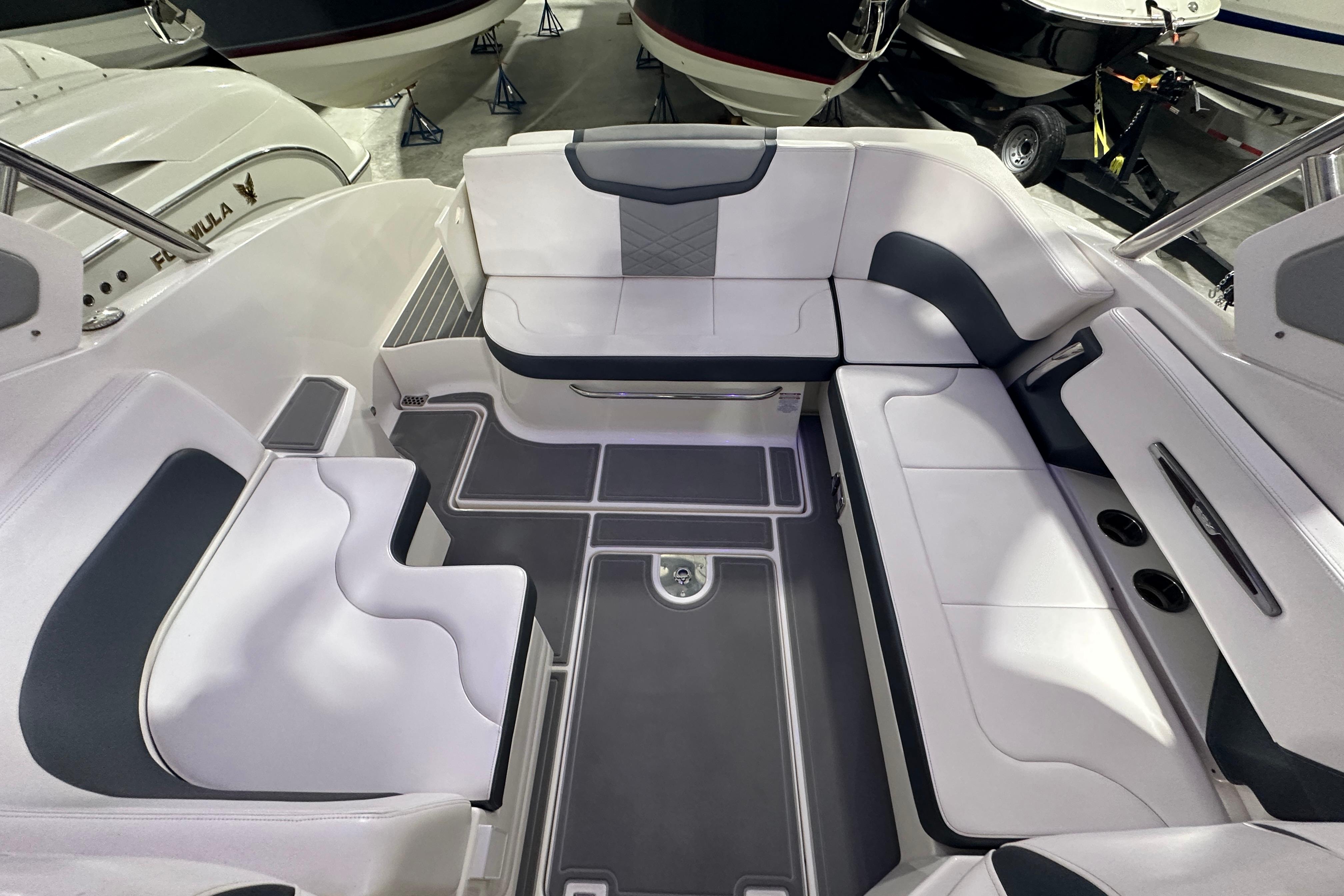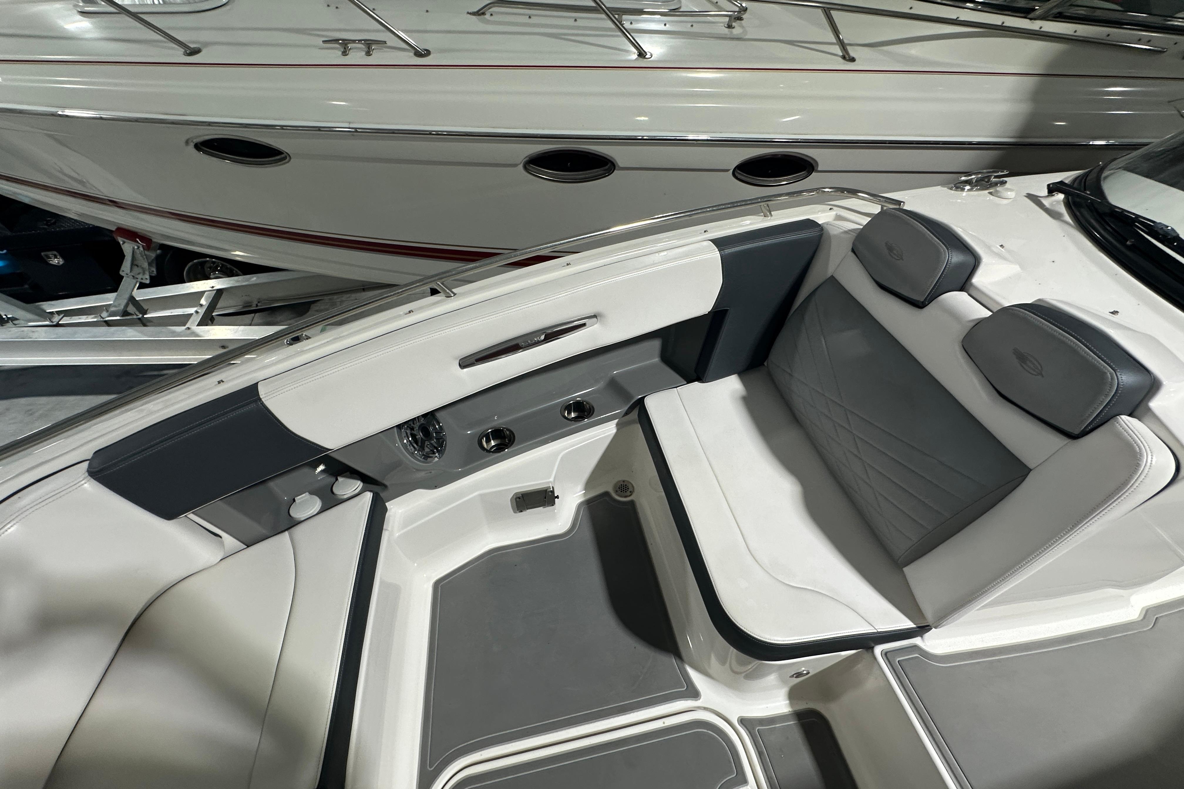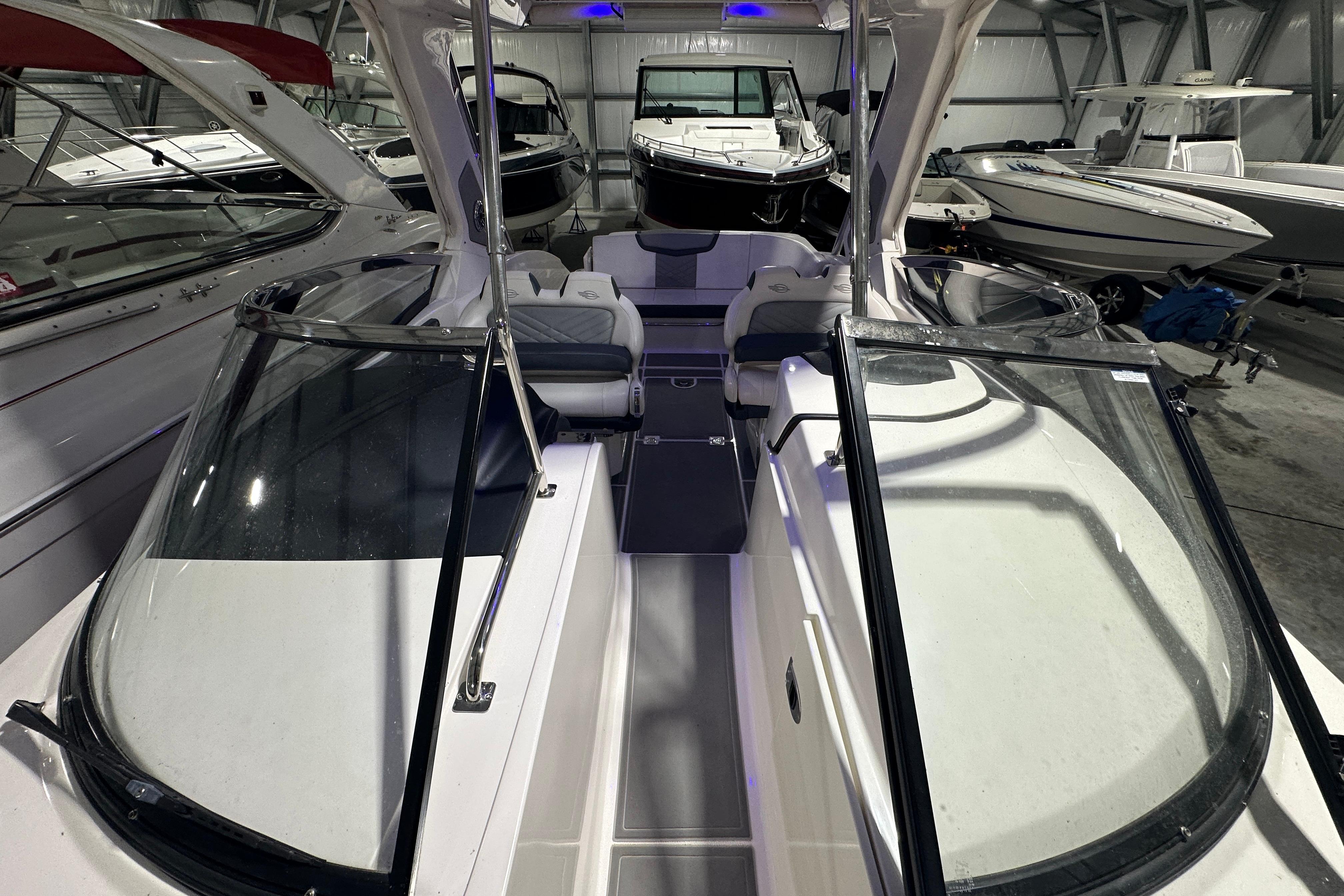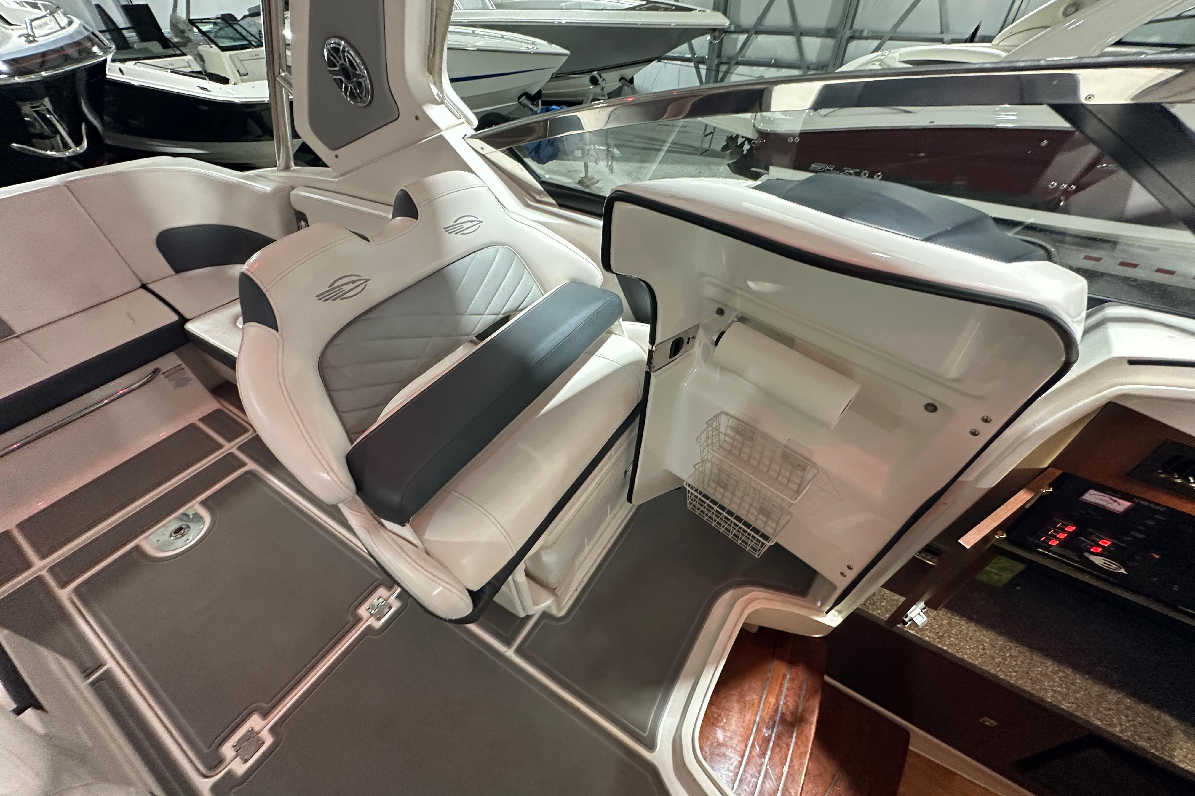 The amazing 347 SSX offers the most demanding of boaters the best of both worlds with a supersized bowrider layout and a full-beam enclosed cabin. We've never built a boat more versatile or impressive than the 347 SSX. Massive seating capacity. Luxury appointments. Clever features. Go anywhere performance. But the real magic of Chaparral innovation happens when you open the port side entry door and discover a space defying lavish full beam cabin. While most rivals at this length settle for a split beam design where neither area satisfies, the 347's unified cabin comes complete with an entertainment console, enclosed head and overnight accommodations for two.