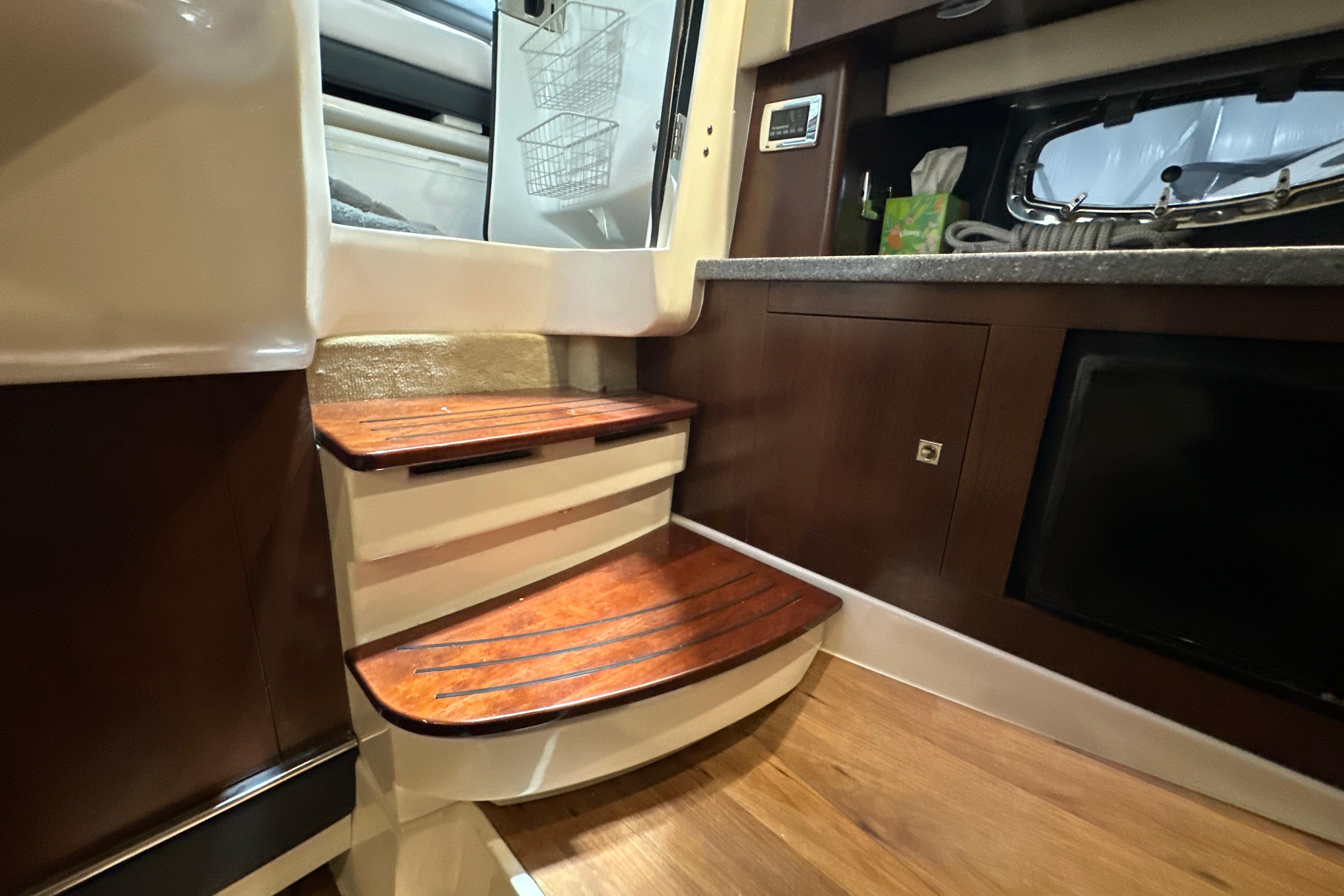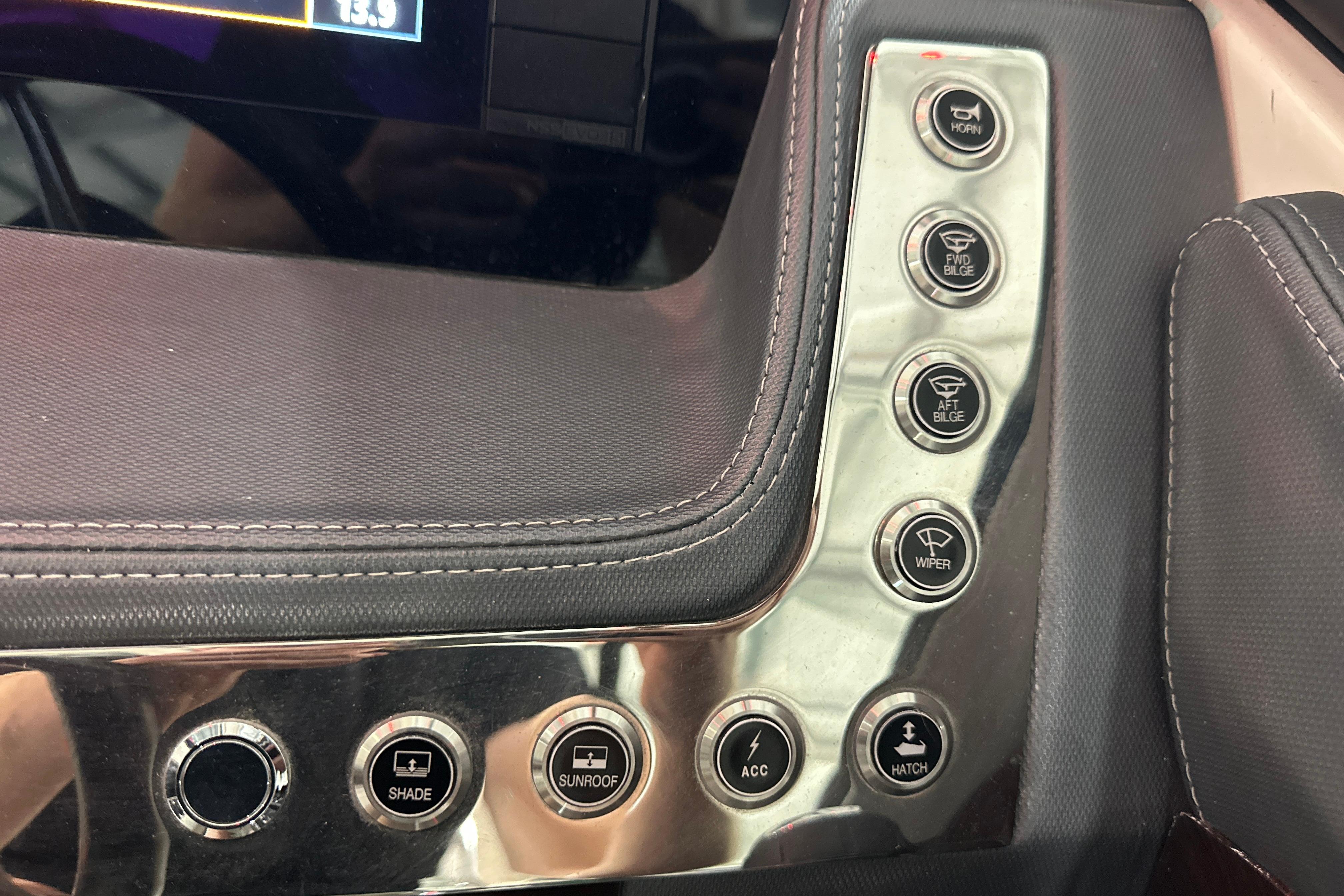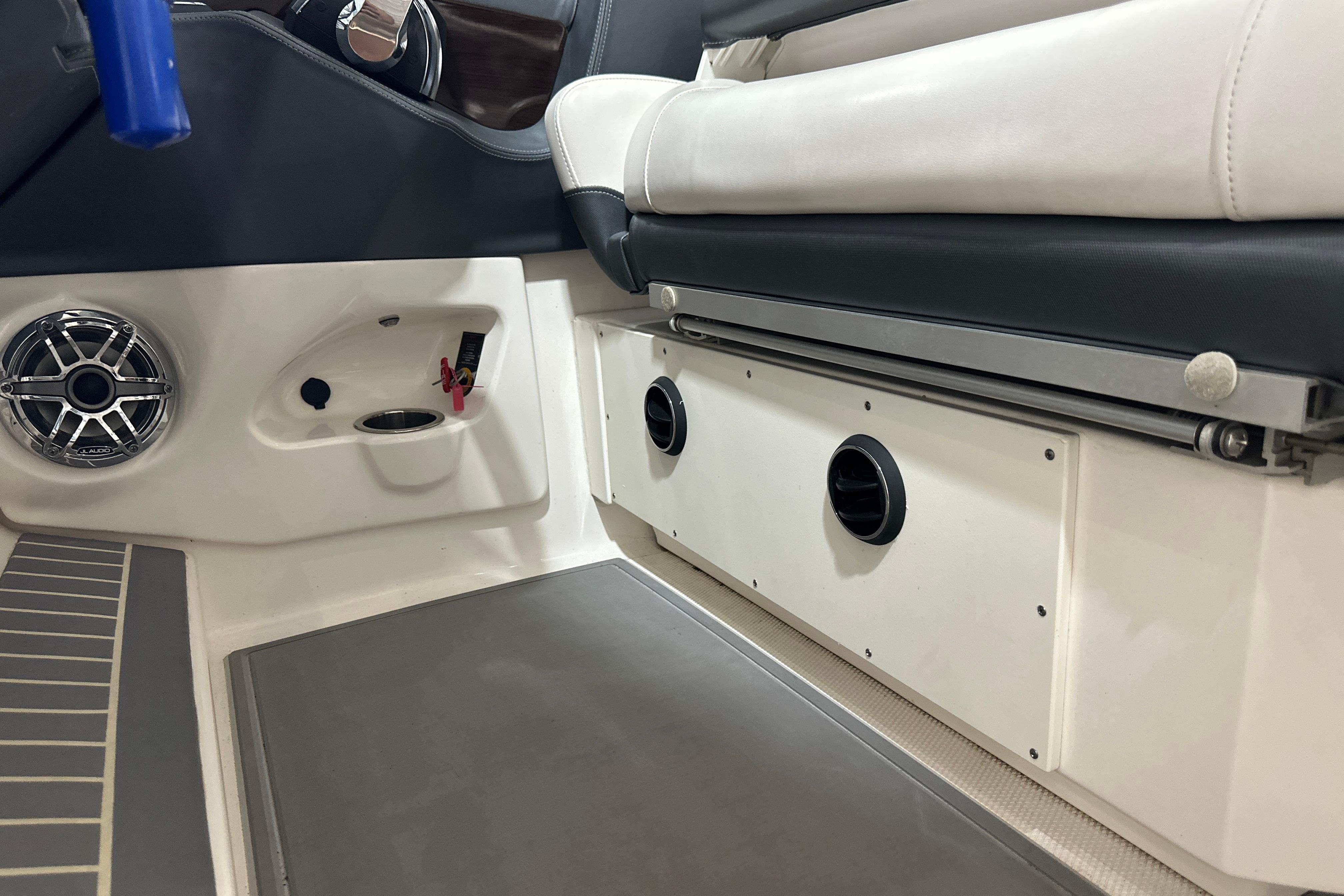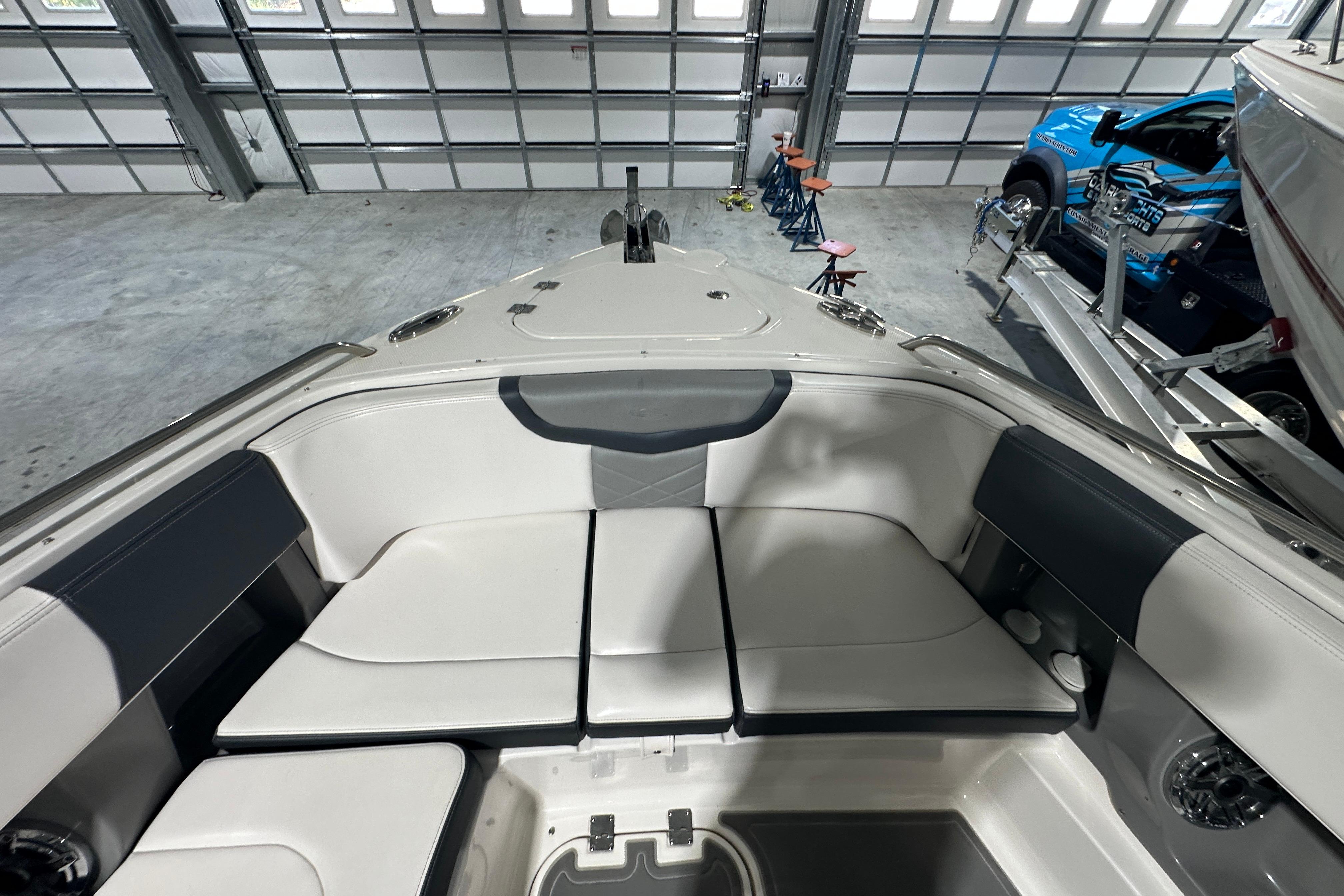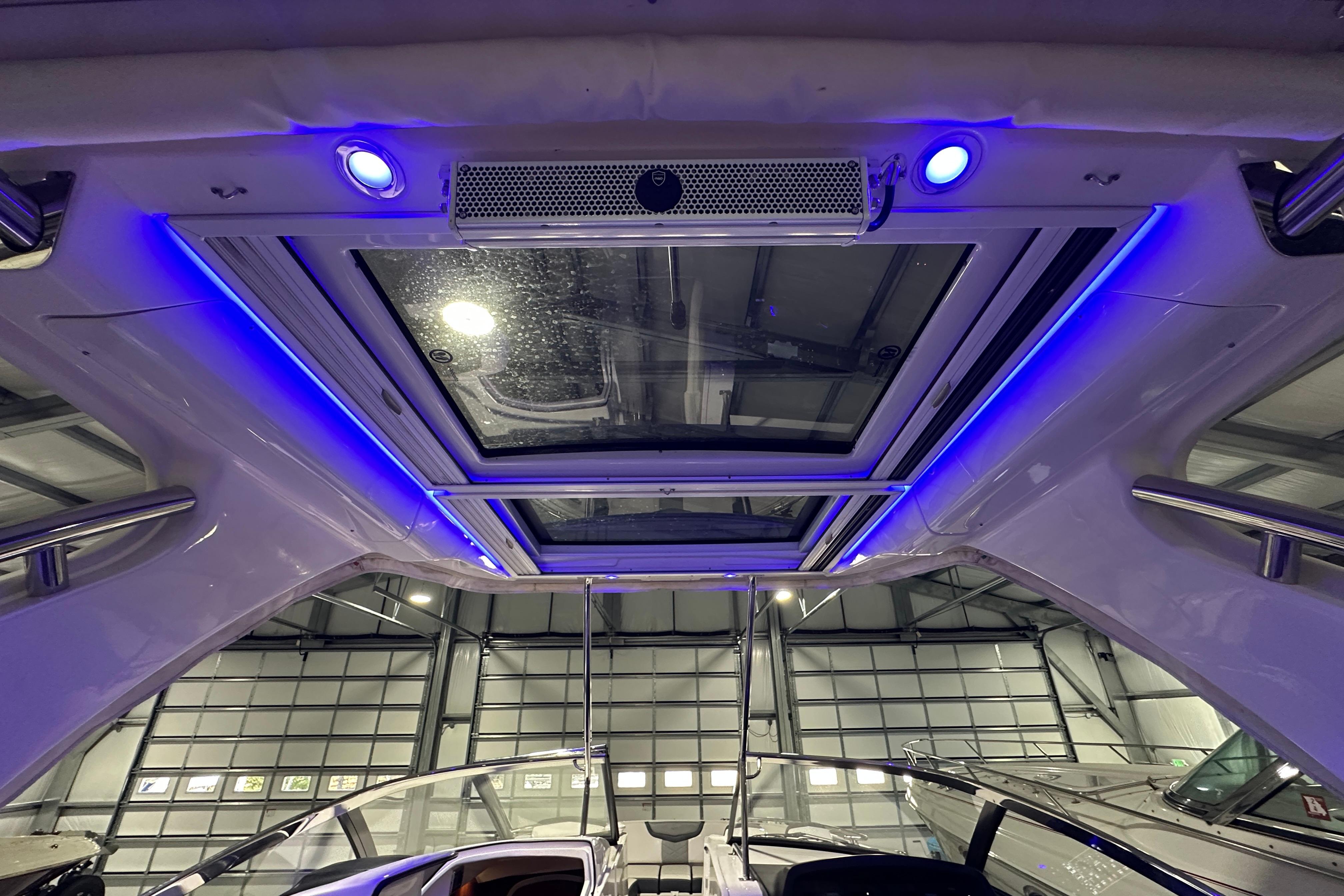 The amazing 347 SSX offers the most demanding of boaters the best of both worlds with a supersized bowrider layout and a full-beam enclosed cabin. We've never built a boat more versatile or impressive than the 347 SSX. Massive seating capacity. Luxury appointments. Clever features. Go anywhere performance. But the real magic of Chaparral innovation happens when you open the port side entry door and discover a space defying lavish full beam cabin. While most rivals at this length settle for a split beam design where neither area satisfies, the 347's unified cabin comes complete with an entertainment console, enclosed head and overnight accommodations for two.