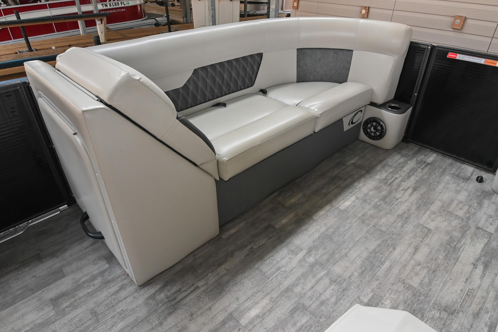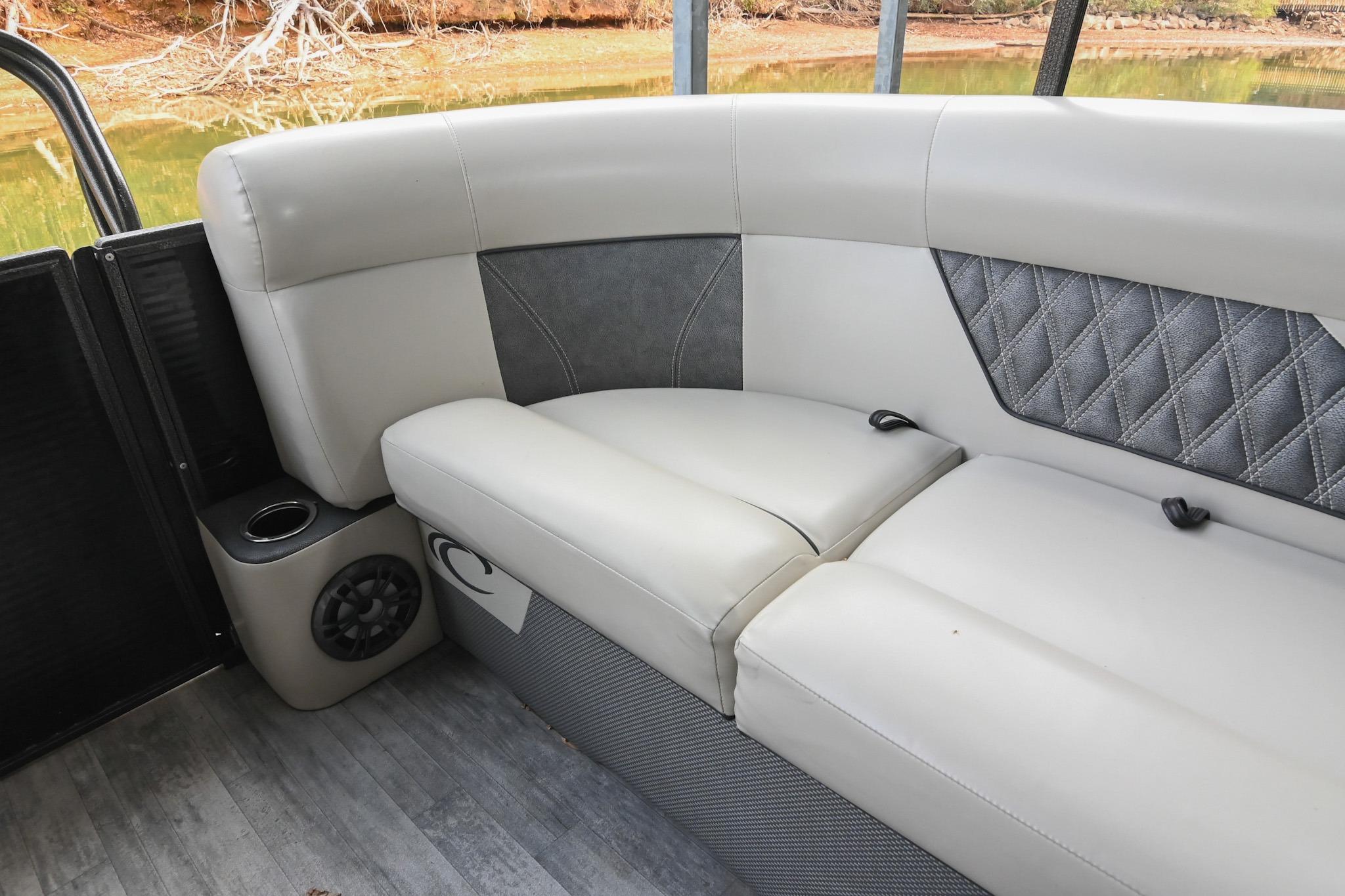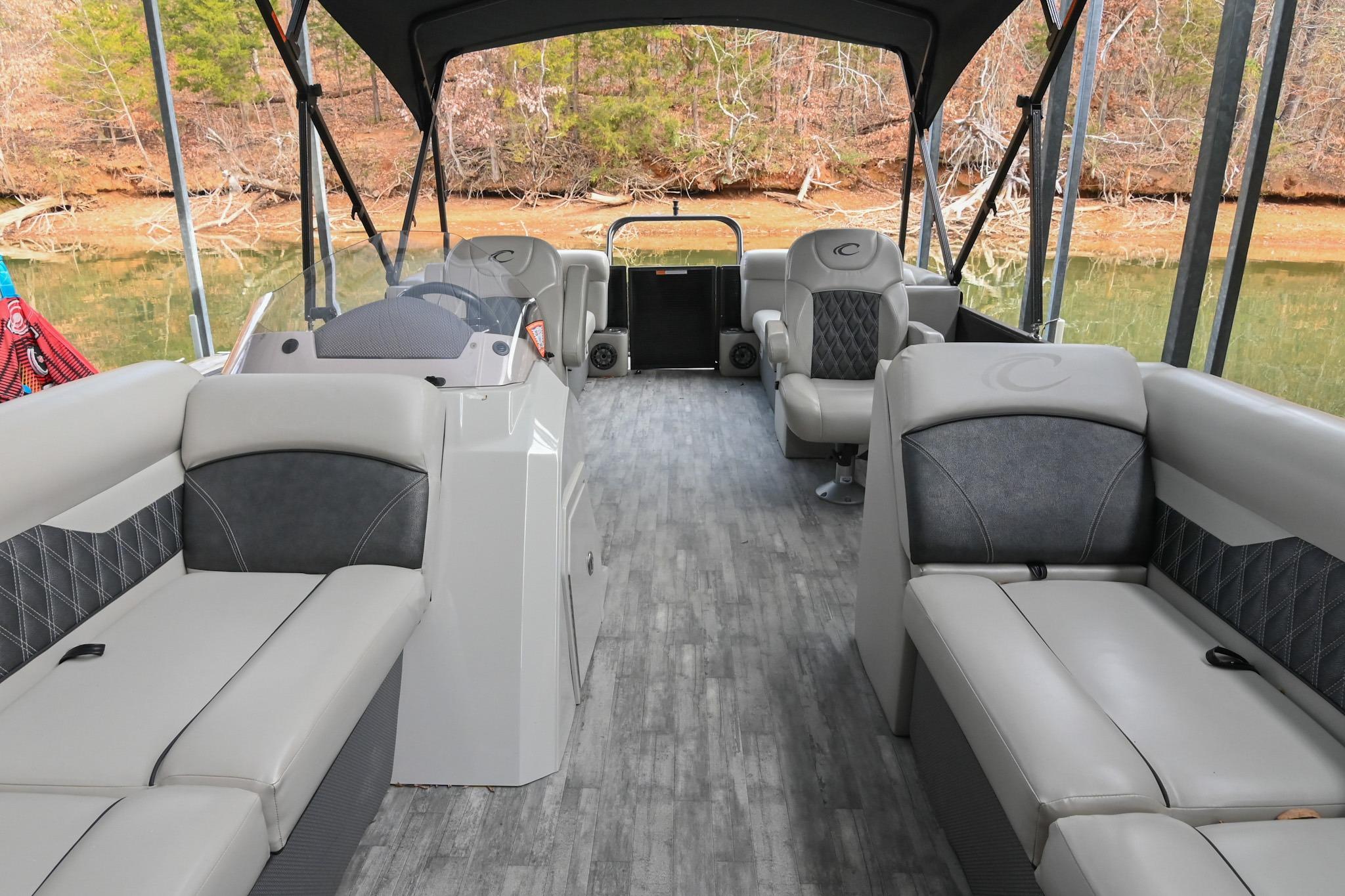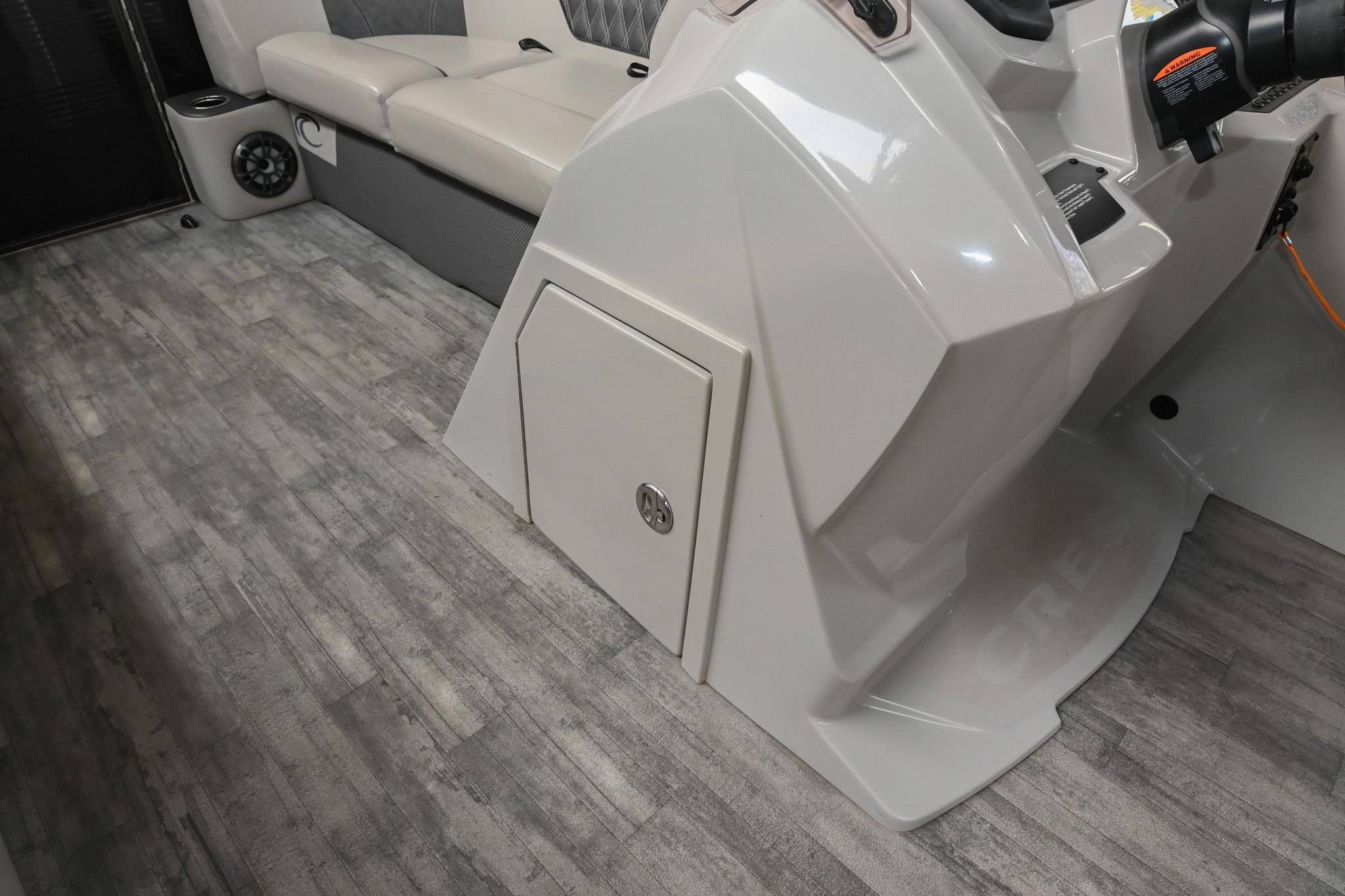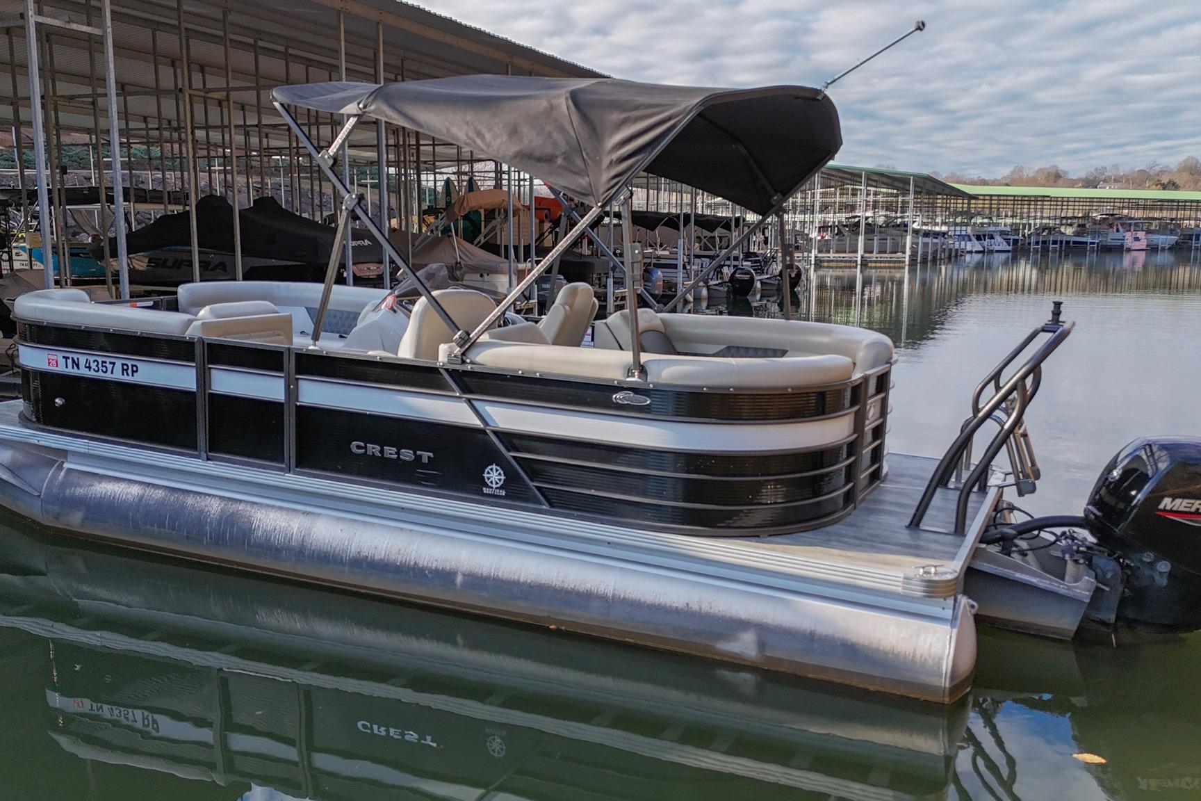 This Crest DLX 220 offers a practical, open pontoon layout designed for comfort and easy movement throughout the boat. The bow features wraparound lounge seating with storage below, creating a relaxed space for passengers while keeping gear out of the way. The mid-ship and aft seating areas provide flexible space for cruising or spending time at anchor. An open aft deck and swim ladder make boarding and swimming simple and convenient. Powered by a Mercury 150, it delivers smooth, dependable performance for everyday boating.