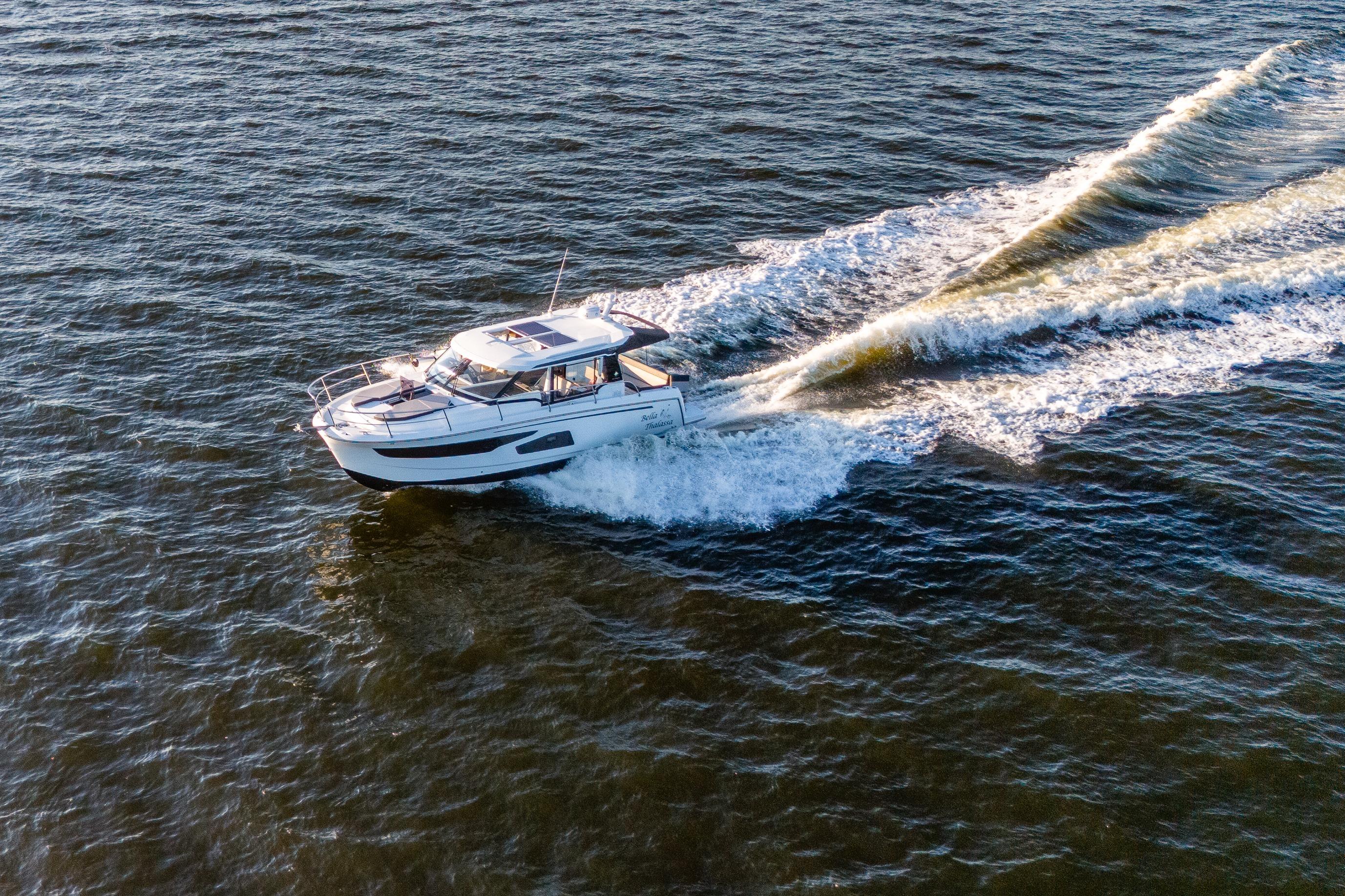 This NC 1095 blends luxury, performance, and comfort perfectly. The layout is designed for entertaining, long weekends, or cruising with the family, all in total comfort. With its spacious salon, air-conditioned cabins, and fully equipped galley, every outing feels like a getaway.