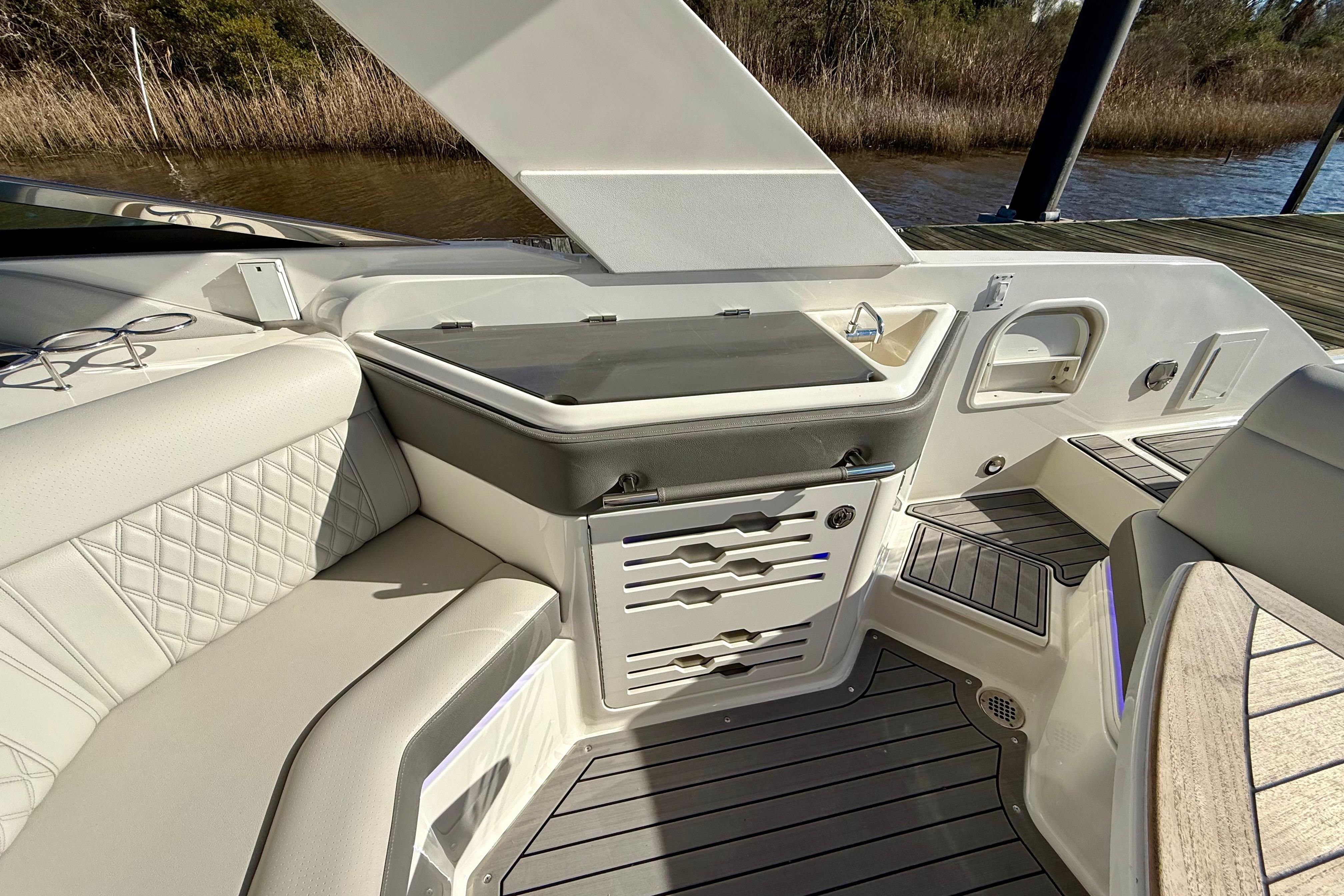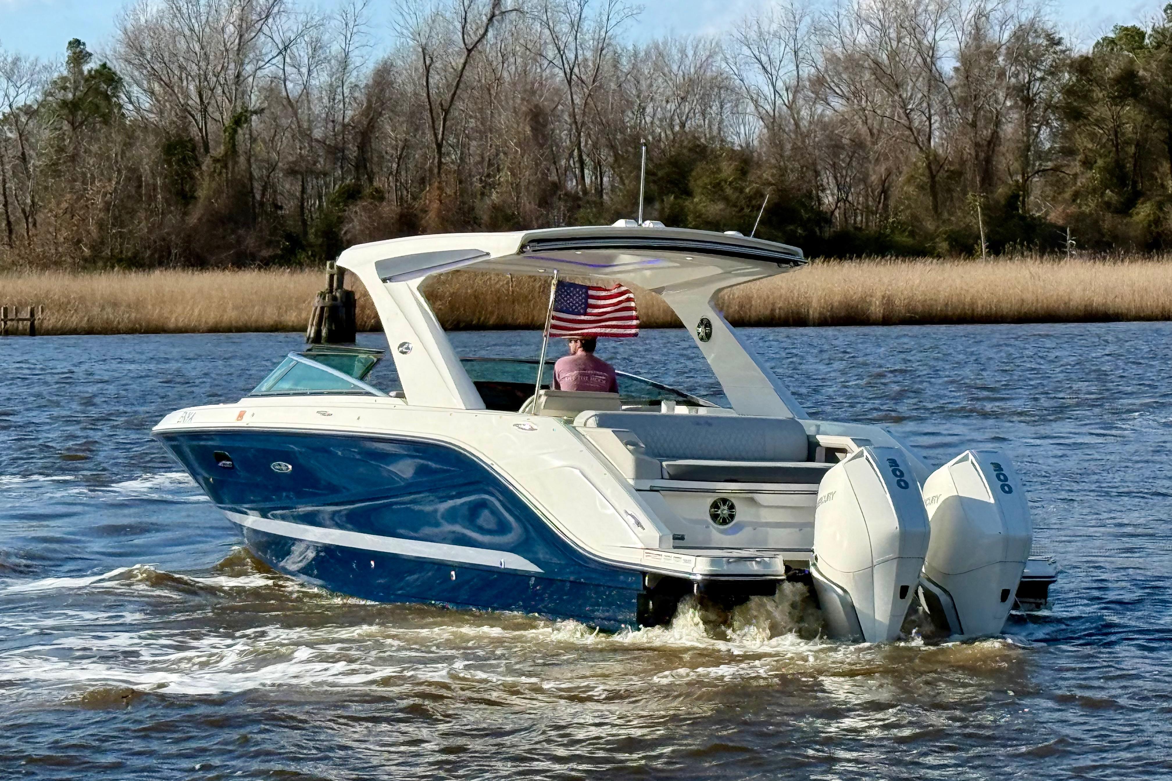 Powered by Twin Mercury 300 Verado Outboards w/ Joystick Control