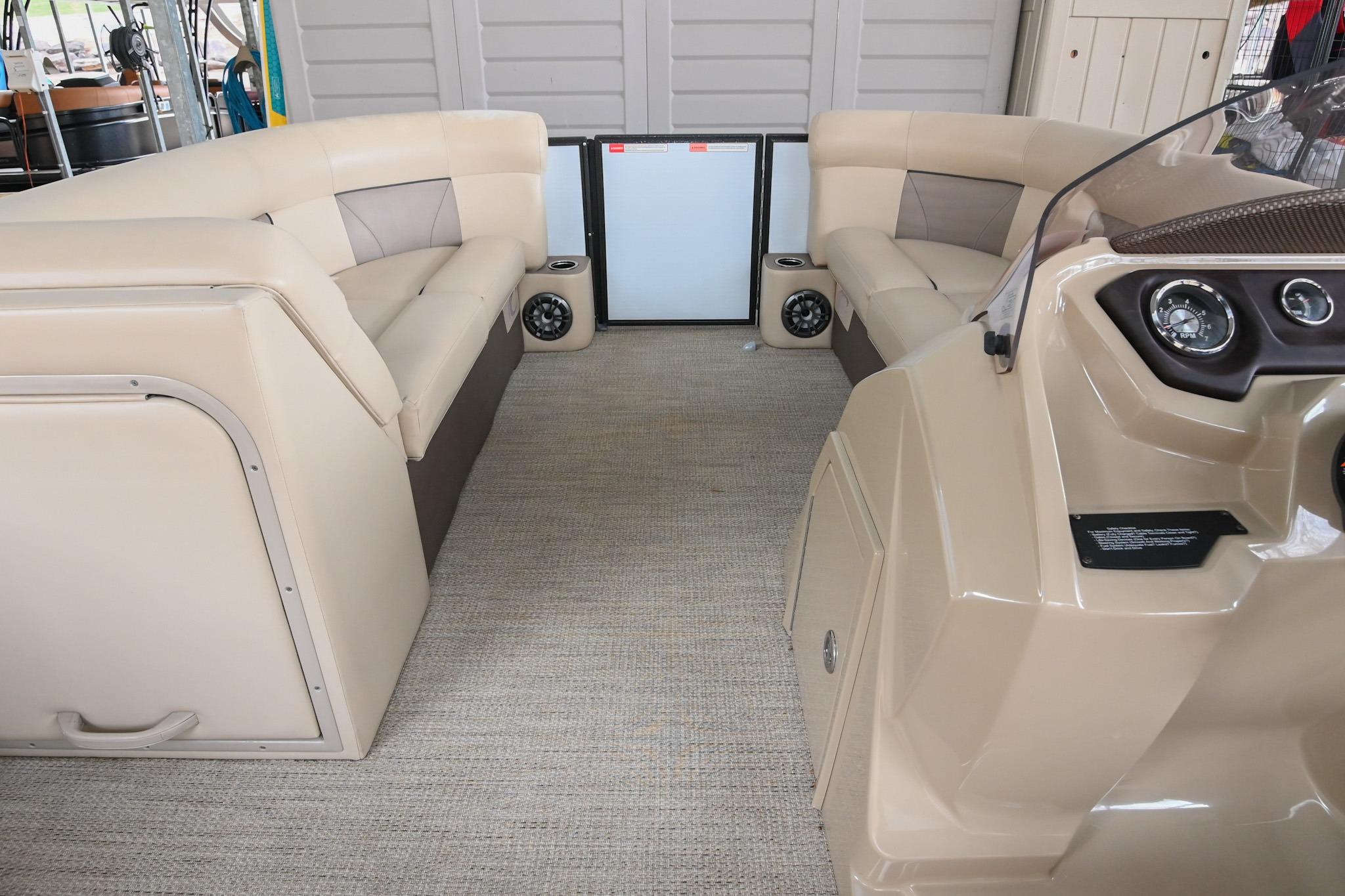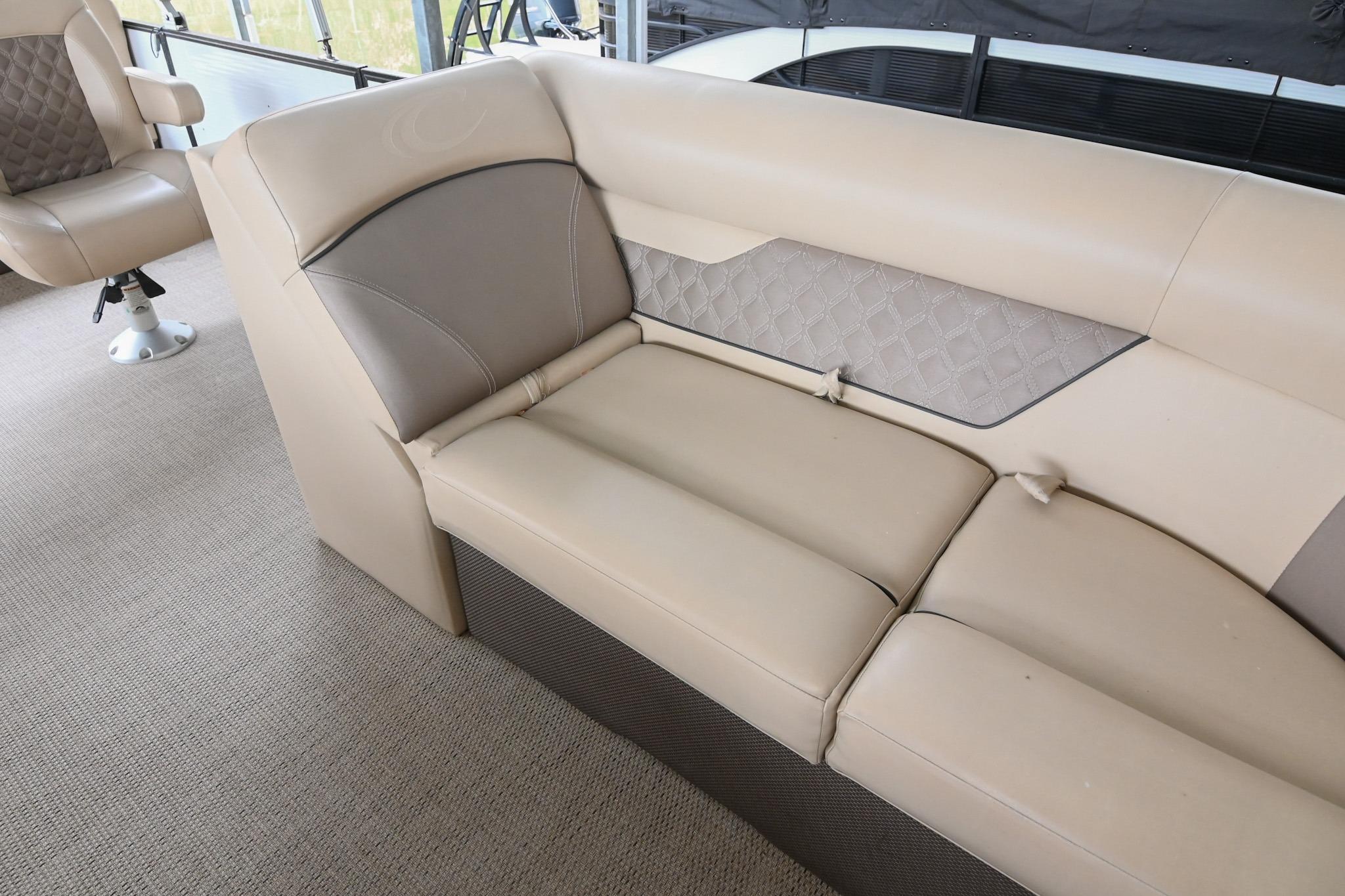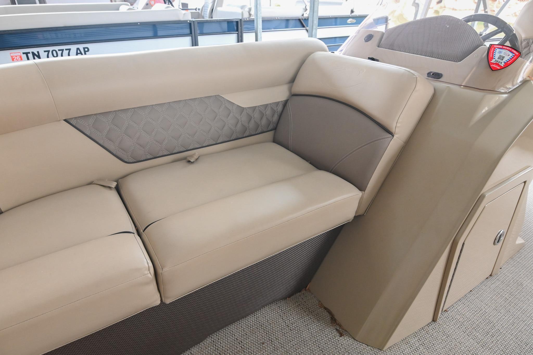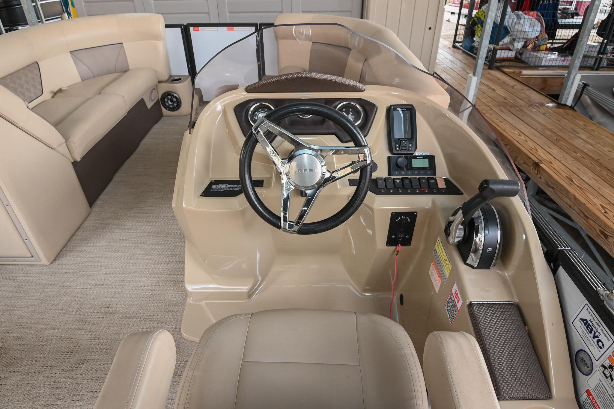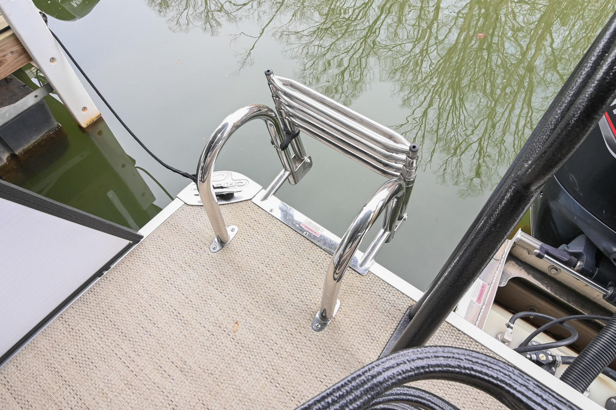 This Crest DLX 220 offers a practical, open pontoon layout designed for comfort and easy movement throughout the boat. The bow features wraparound lounge seating with storage below, creating a relaxed space for passengers while keeping gear out of the way. The aft sunpad features a reversible backrest for a forward/aft facing seating position, while the mid-ship and aft seating areas provide flexible space for cruising or spending time at anchor. An open aft deck and swim ladder make boarding and swimming simple and convenient. Powered by a Mercury 150, it delivers smooth, dependable performance for everyday boating.