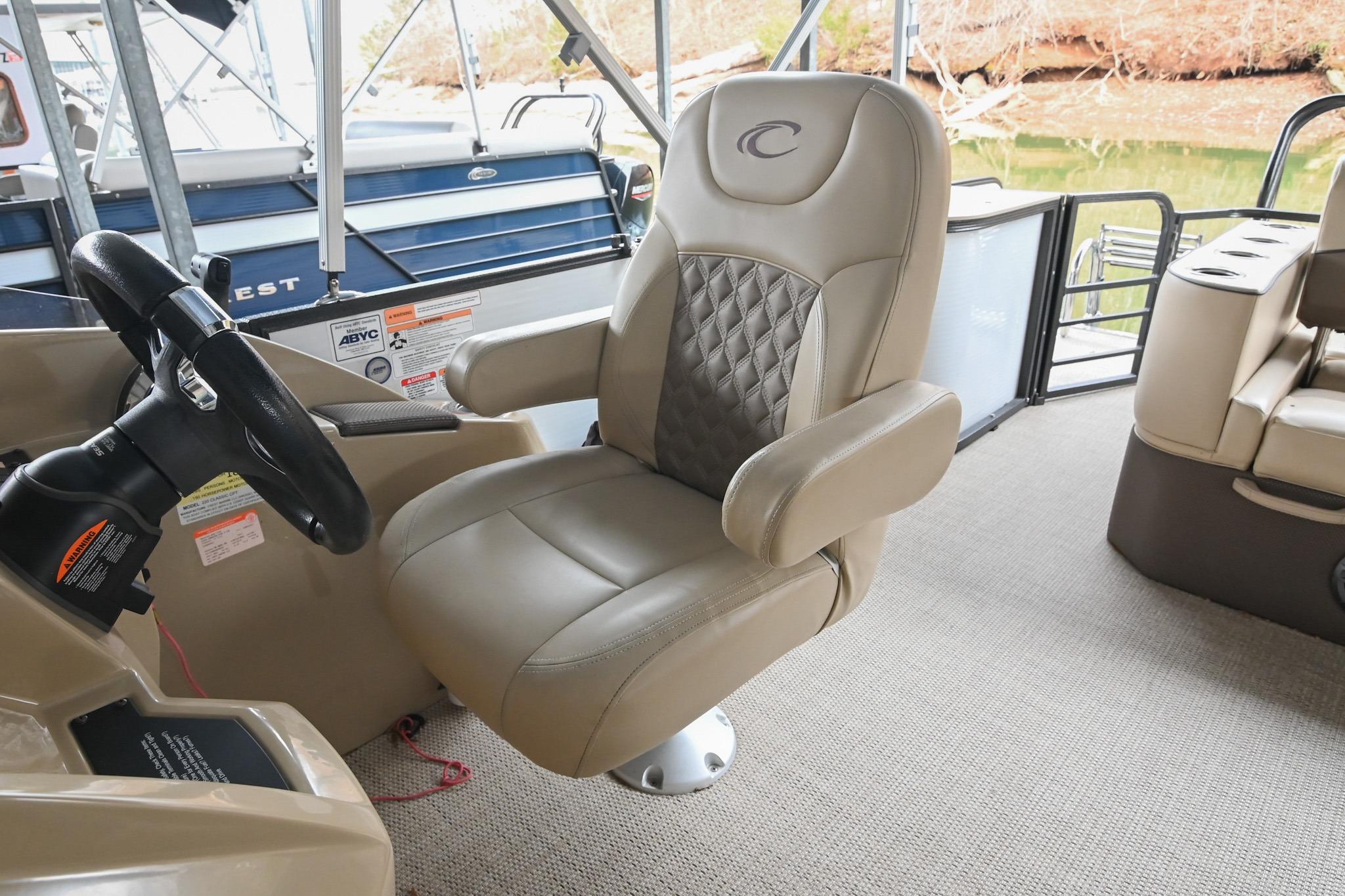 - Adjustable helm & companion Captain's chairs w/ armrests