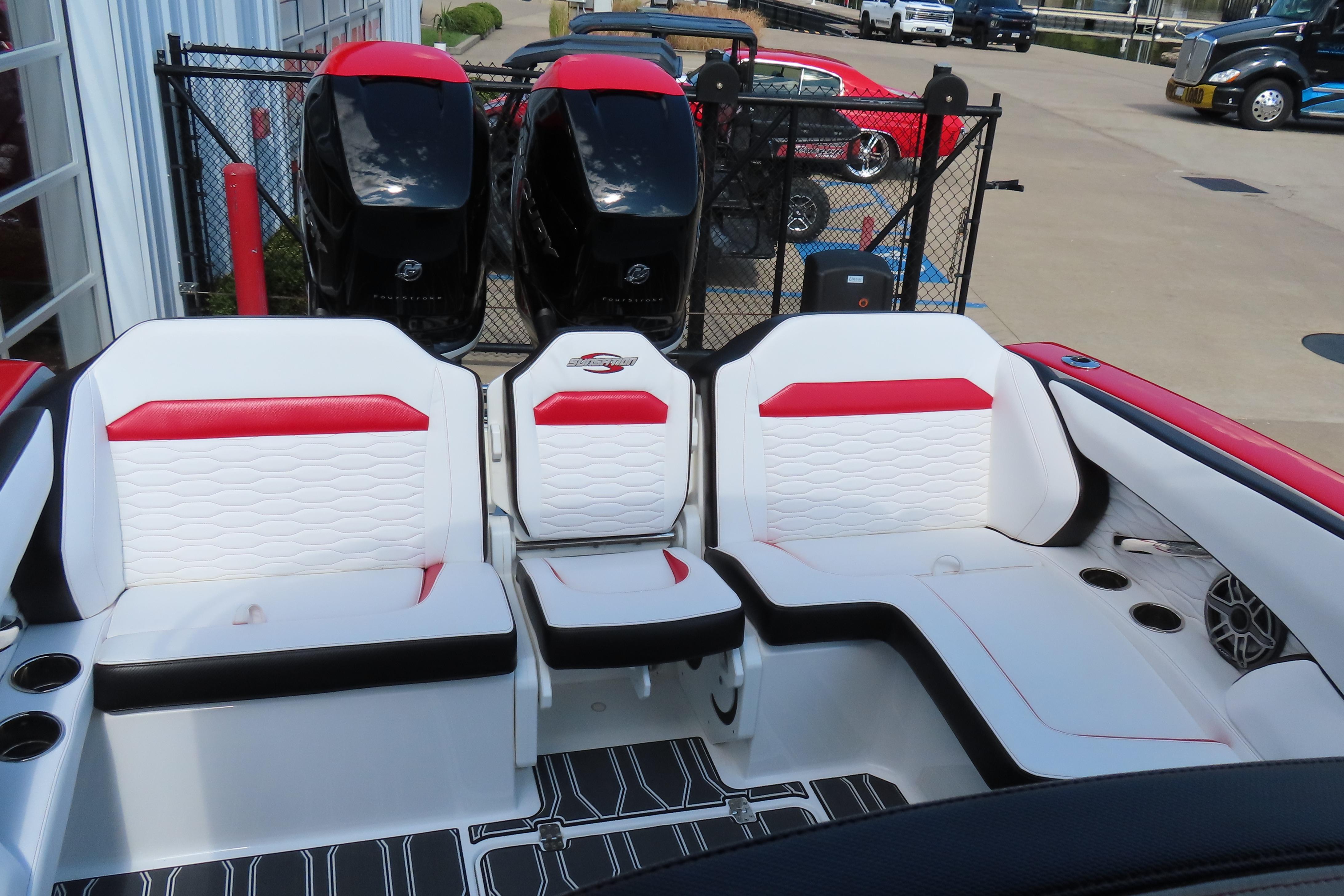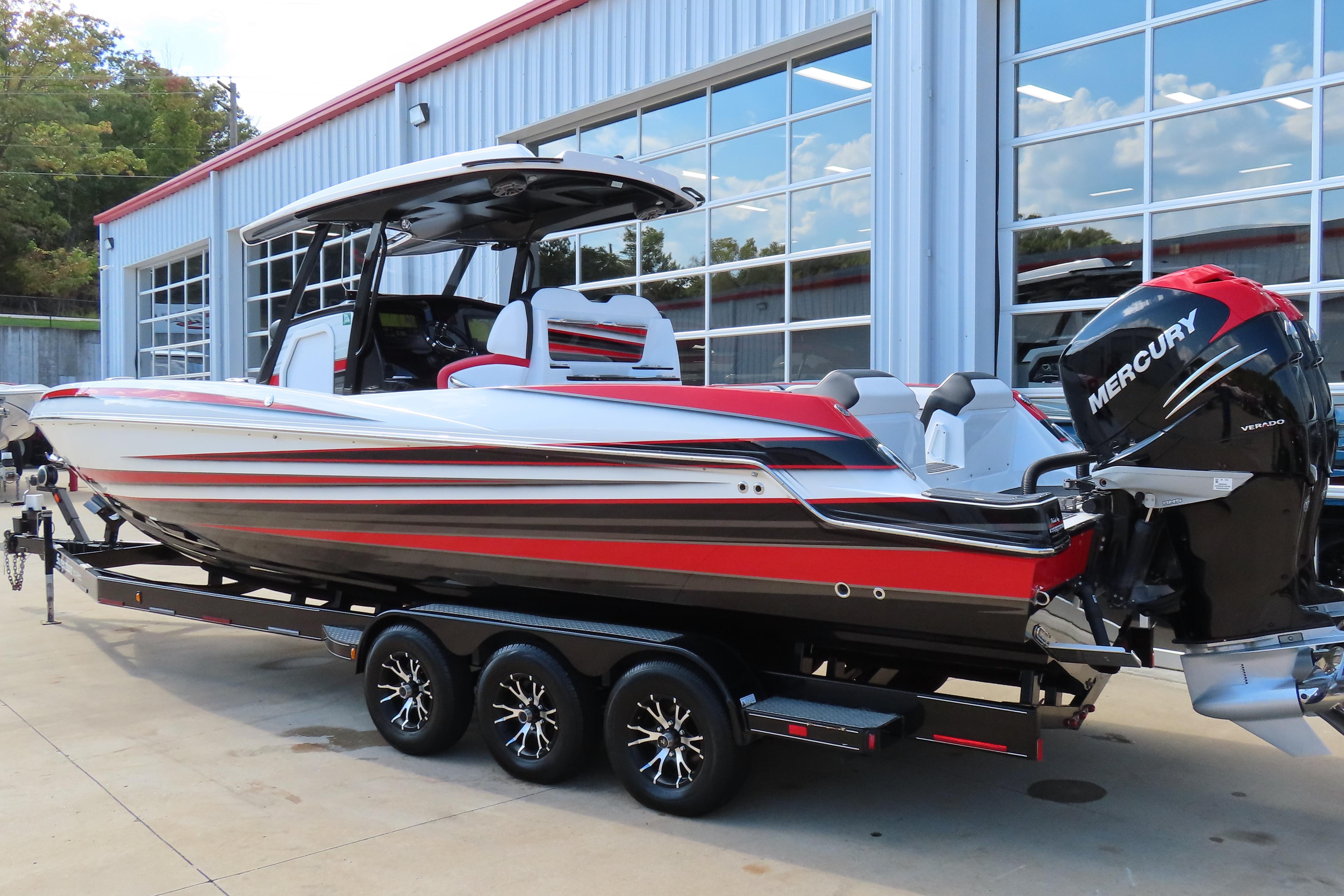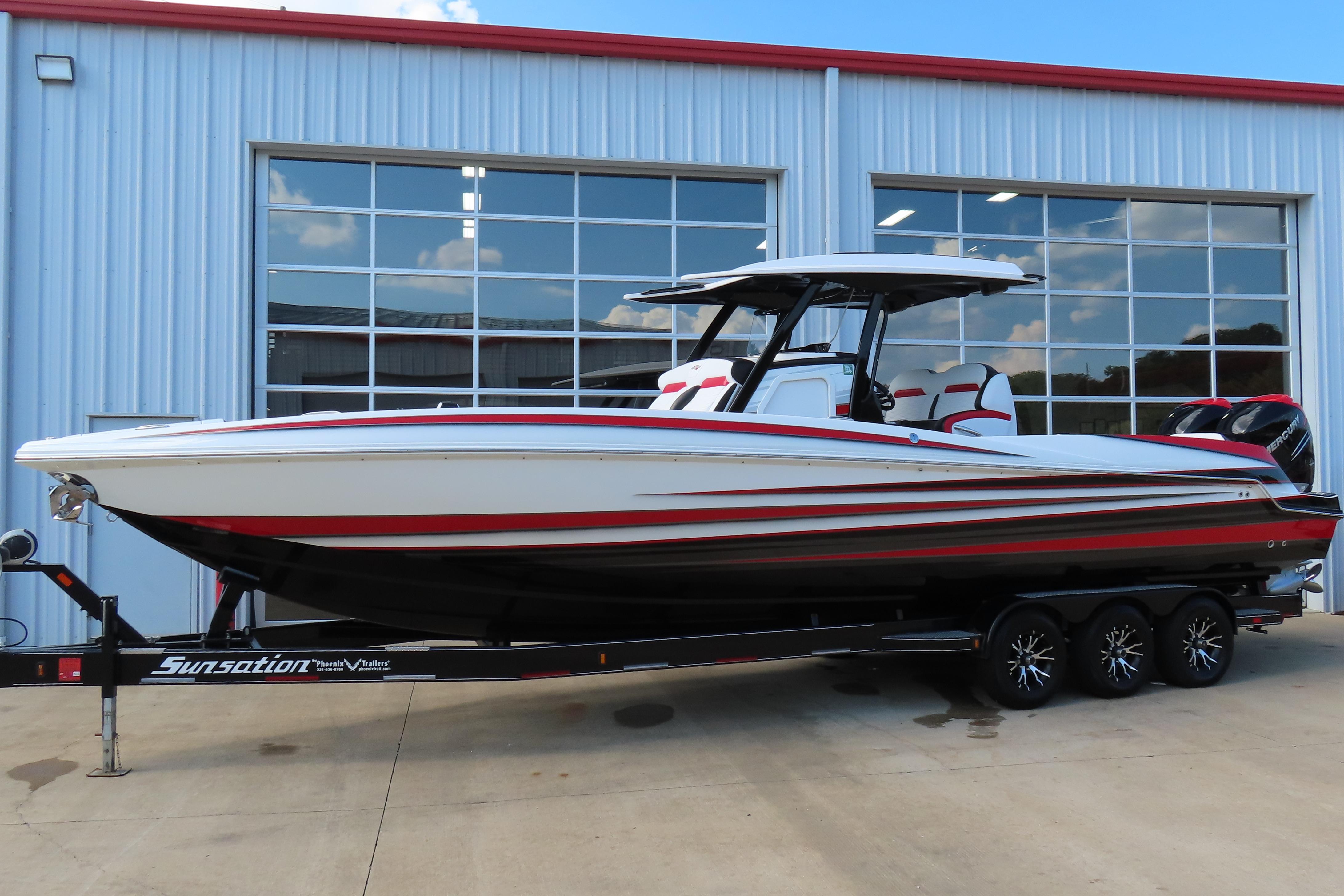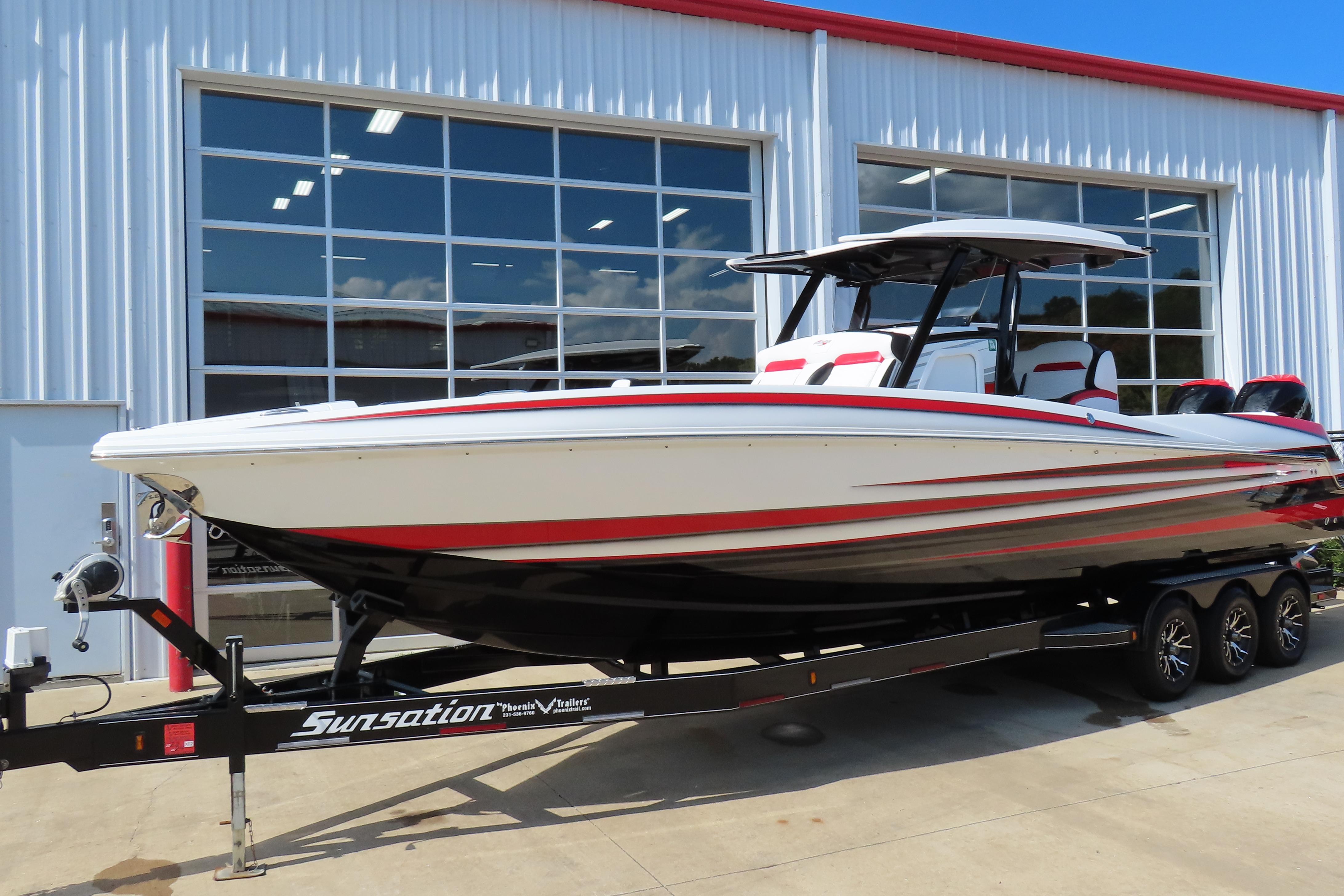 2022 Sunsation 32ccx powered by Twin Mercury 400 Verado with only 174 hours, Custom paint by Performance, 2- Garmin GPS, Mercury Vesselview, Tilt steering wheel, Mercury DTS, Billet push button controls, Windless anchor, Trim Tabs, Fusions stereo with JL components, Bow stereo remote with usb charging station, Sea deck flooring, Cabin with porti potty, Led lighting, Led lit cupholders, Underwater lights, Battery charger, Flip down helm bolsters, Full cover, Painted phoenix steel trailer included