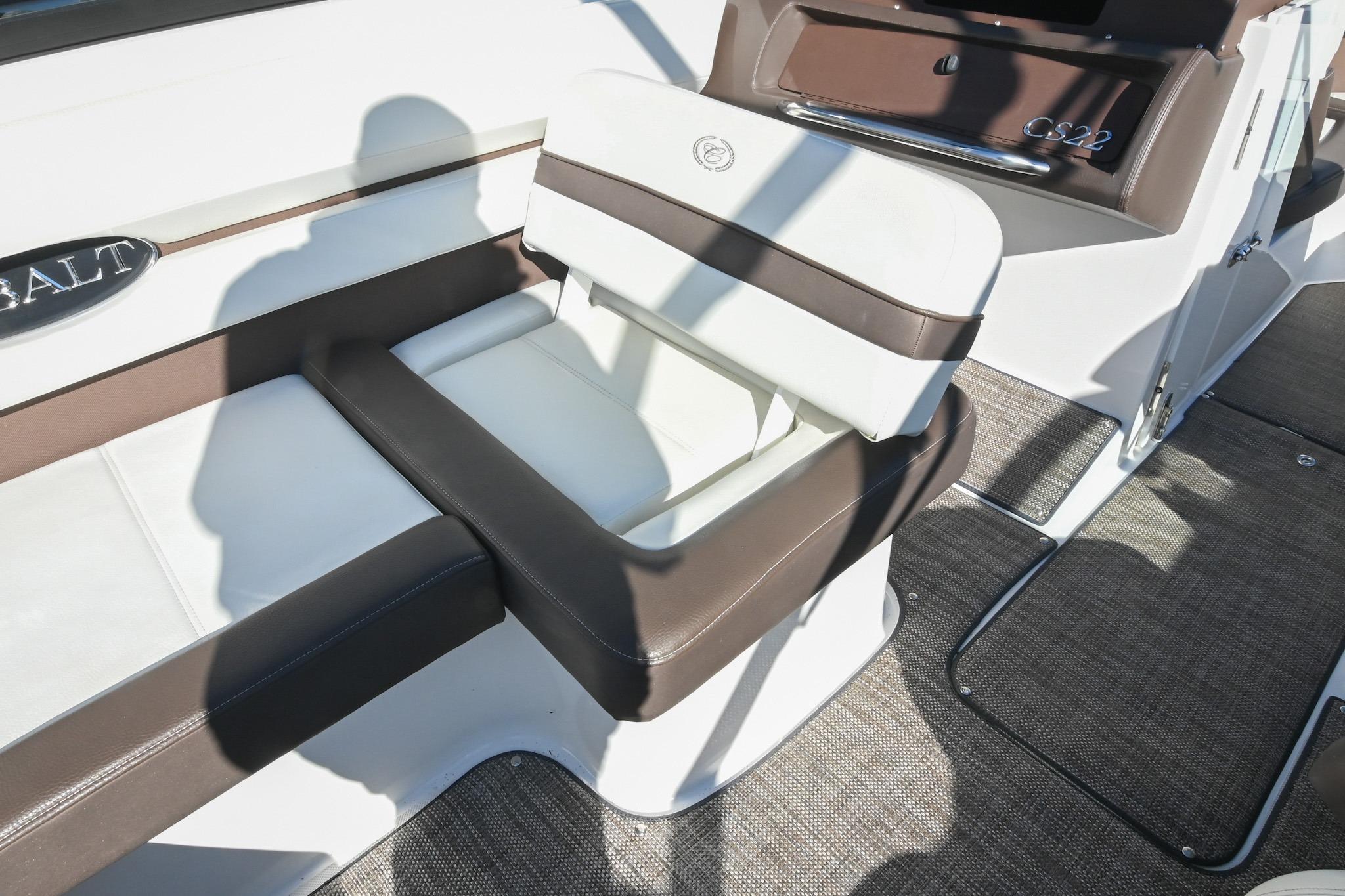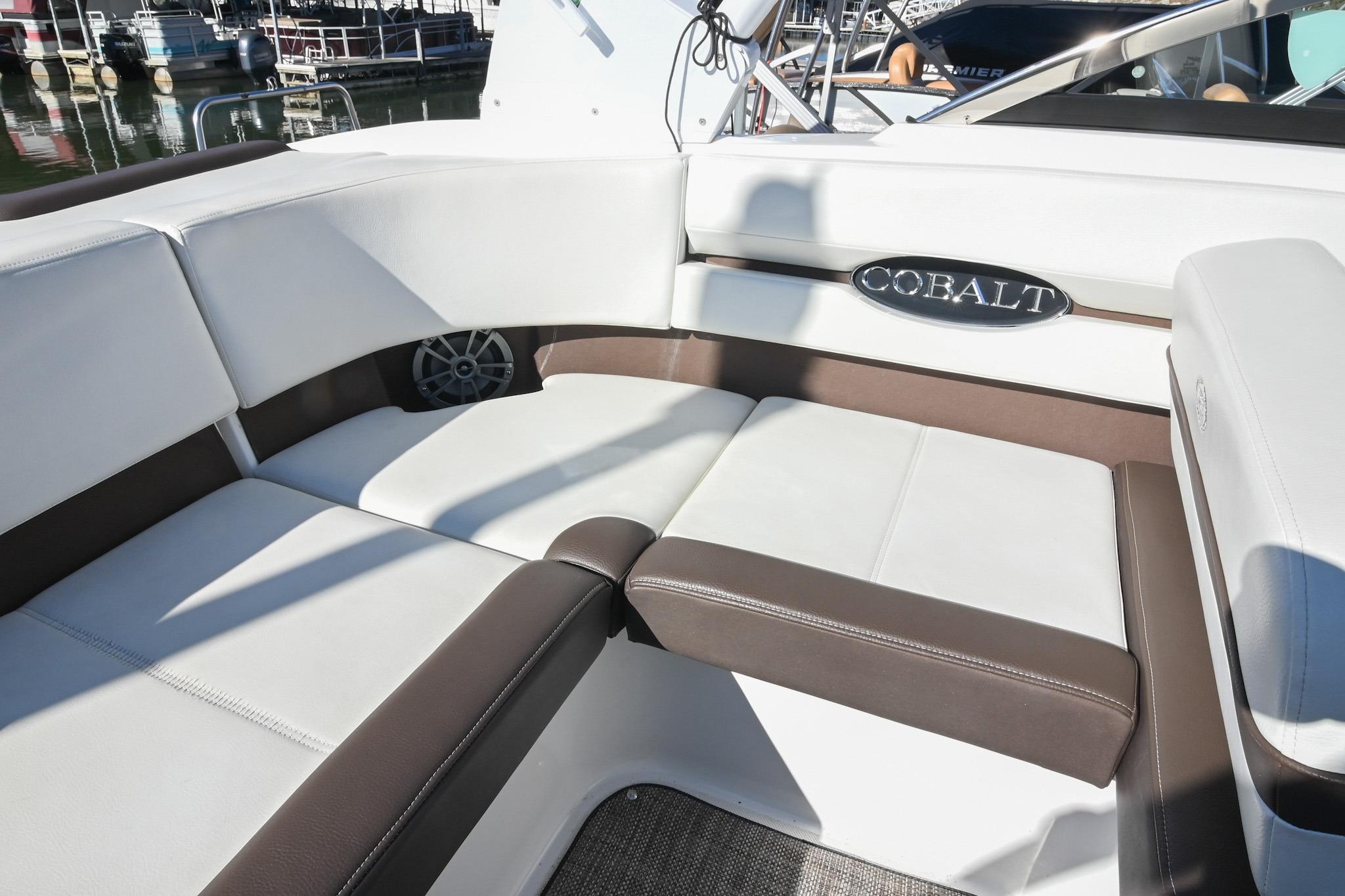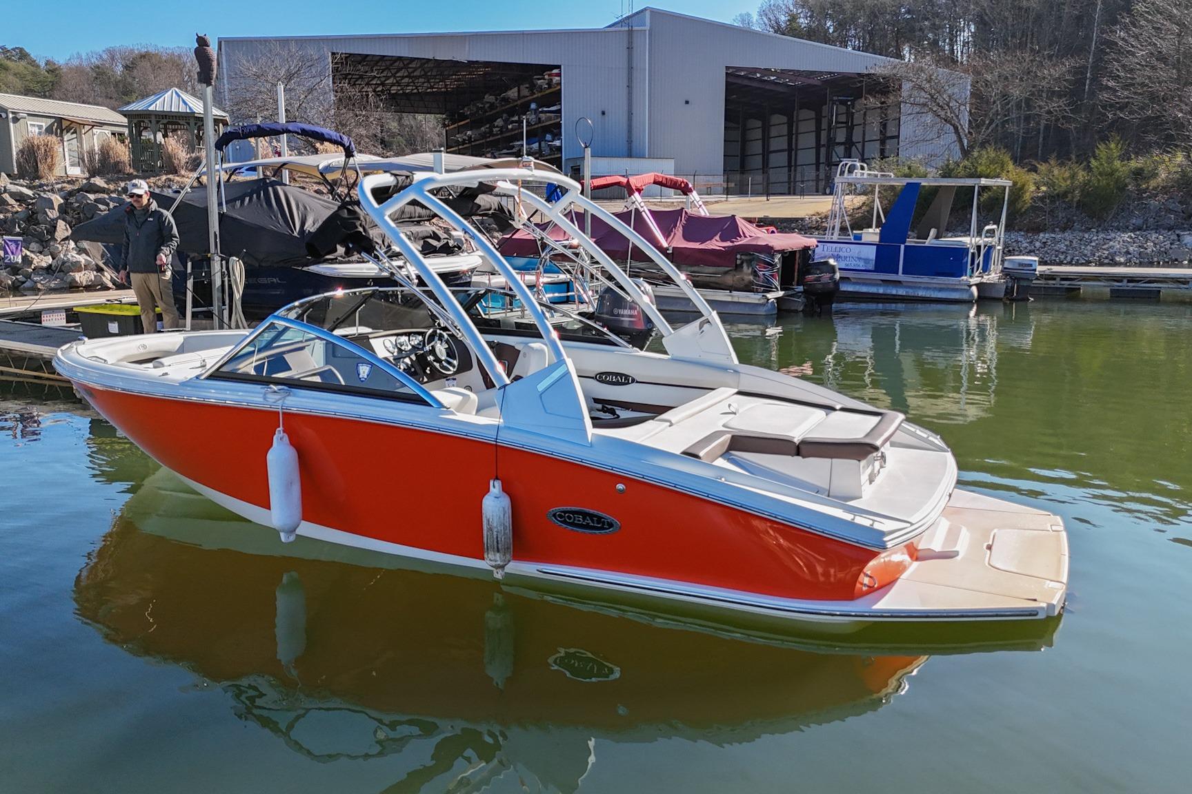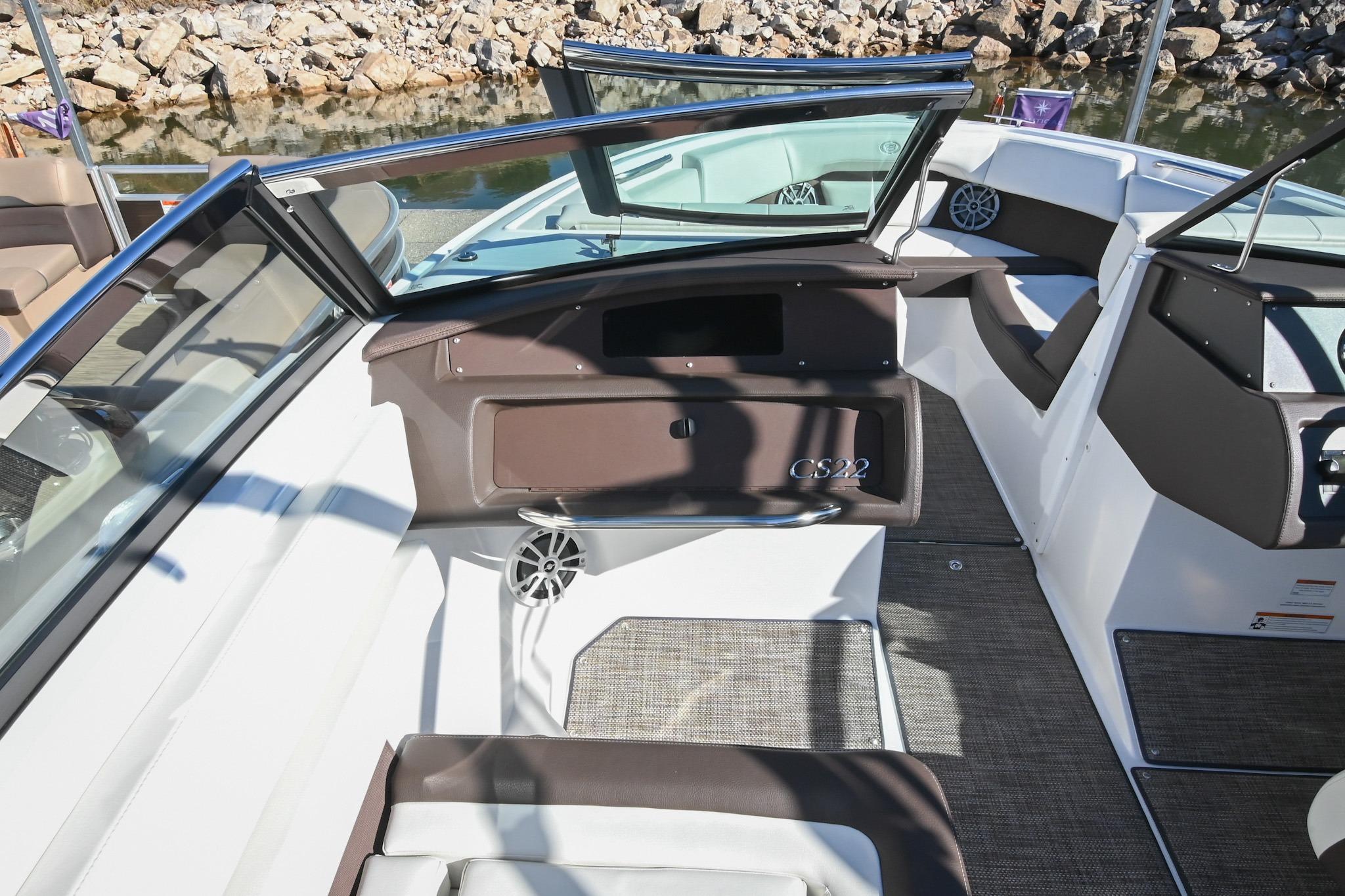The CS22 is a versatile bowrider that provides an ideal platform to perform a wide array of activities on the water. The ample seating can accommodate eleven passengers, with seating that can be reconfigured, so everyone can be included and seated comfortably while underway. Significant storage is available underseat throughout the boat, as well as a built-in cooler. A folding wakeboard tower not only provides additional clearance for storage but also a tow point for wakeboarders. An additional ski tow eye is located at the transom for additional water sports such as tubing and skiing. This lift-kept CS22 facilitates complete functionality on the water by being able to cruise comfortably, anchor out with comfortable, ample seating, as well as the ability to wakeboard, ski, and tube. All achieved within twenty-two feet through Cobalt's high-end fit and finish and durable hull design.
