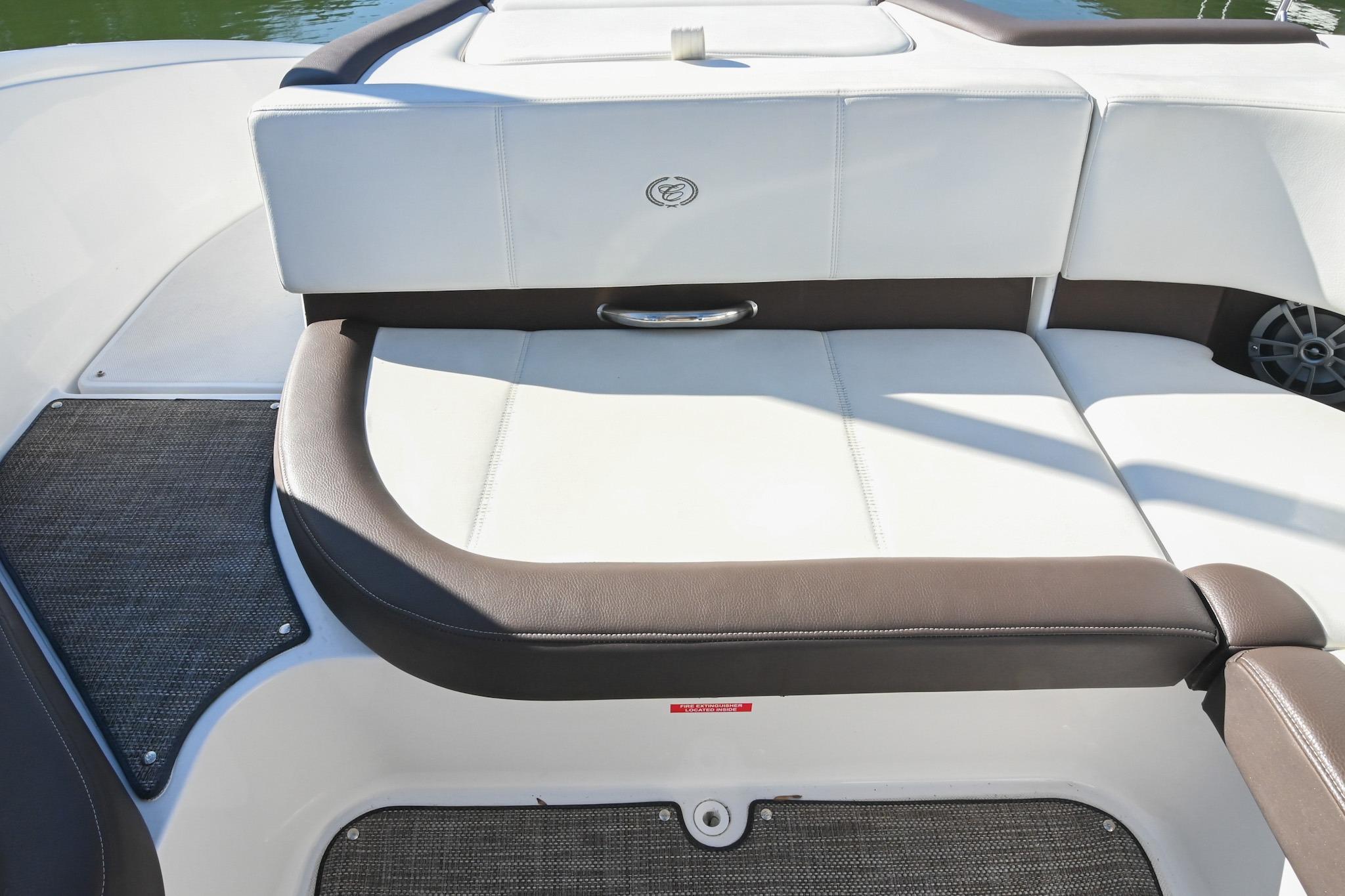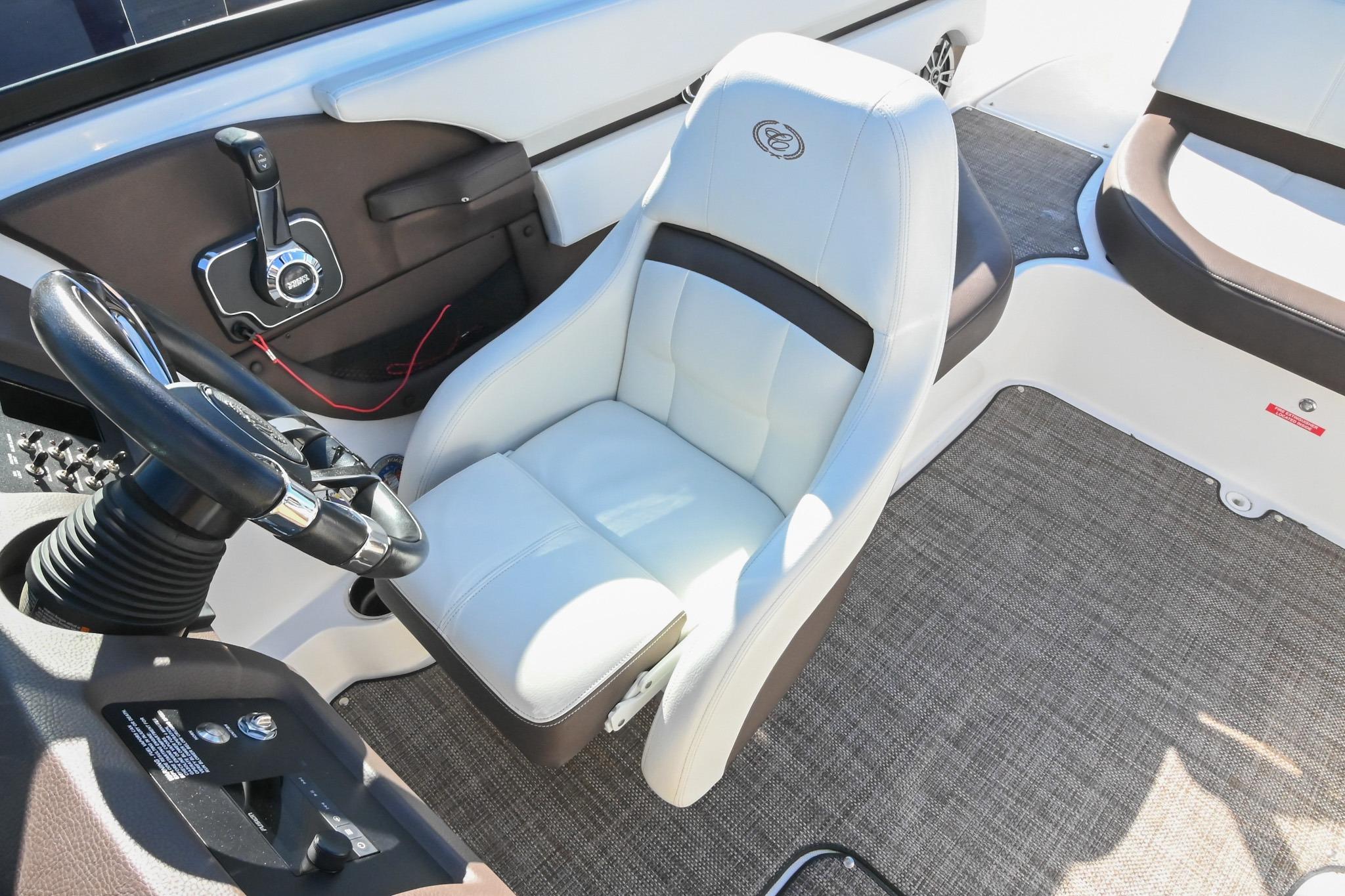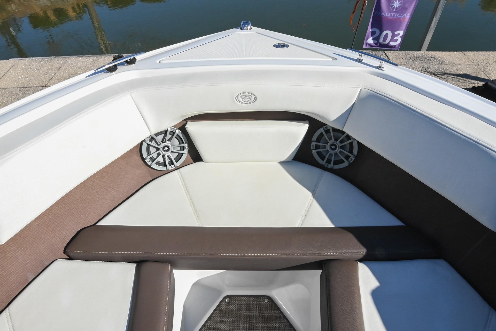 The CS22 is a versatile bowrider that provides an ideal platform to perform a wide array of activities on the water. The ample seating can accommodate eleven passengers, with seating that can be reconfigured, so everyone can be included and seated comfortably while underway. Significant storage is available underseat throughout the boat, as well as a built-in cooler. A folding wakeboard tower not only provides additional clearance for storage but also a tow point for wakeboarders. An additional ski tow eye is located at the transom for additional water sports such as tubing and skiing. This lift-kept CS22 facilitates complete functionality on the water by being able to cruise comfortably, anchor out with comfortable, ample seating, as well as the ability to wakeboard, ski, and tube. All achieved within twenty-two feet through Cobalt's high-end fit and finish and durable hull design.