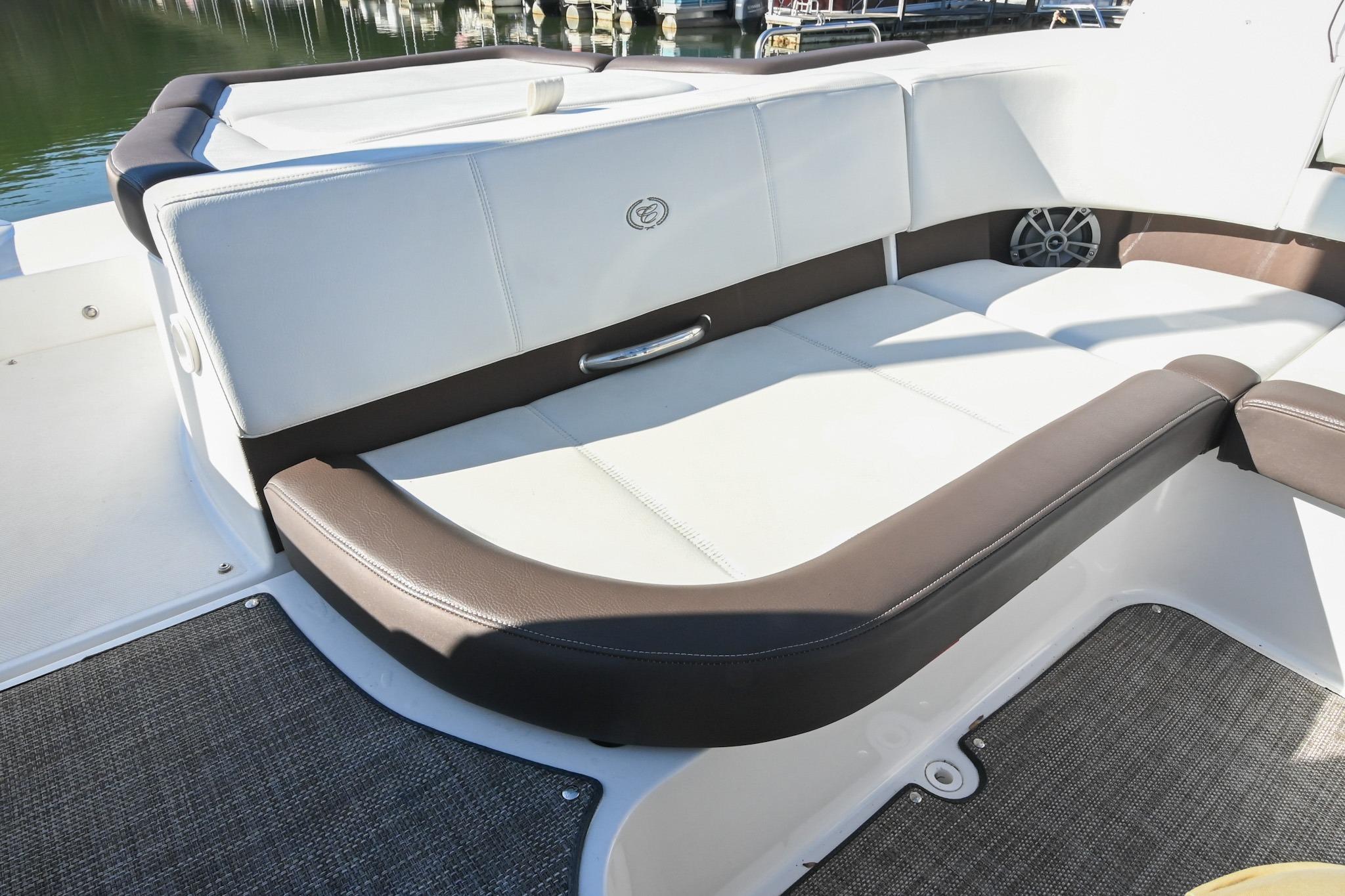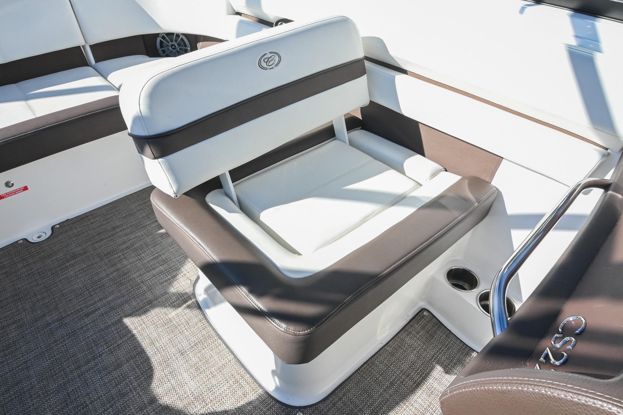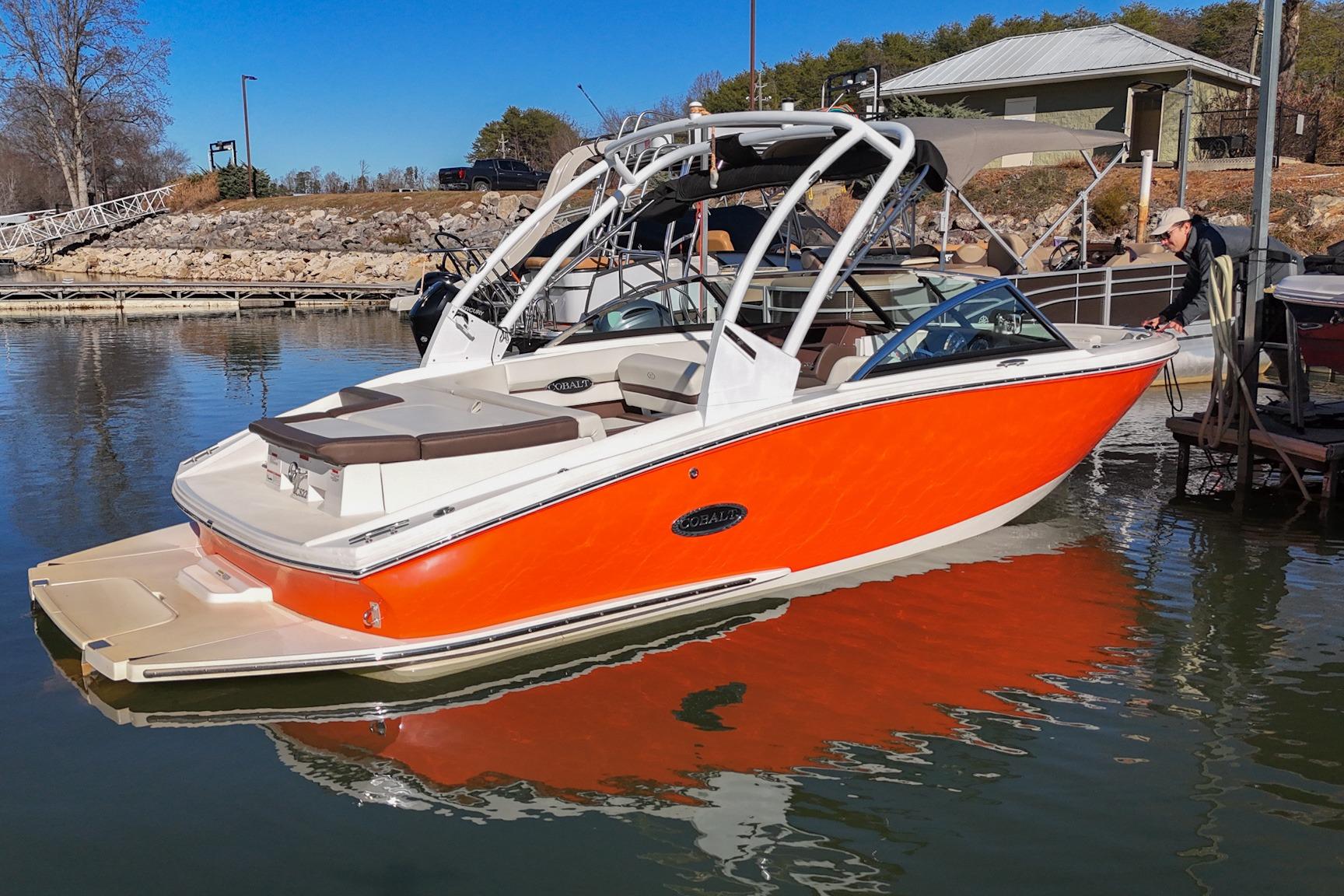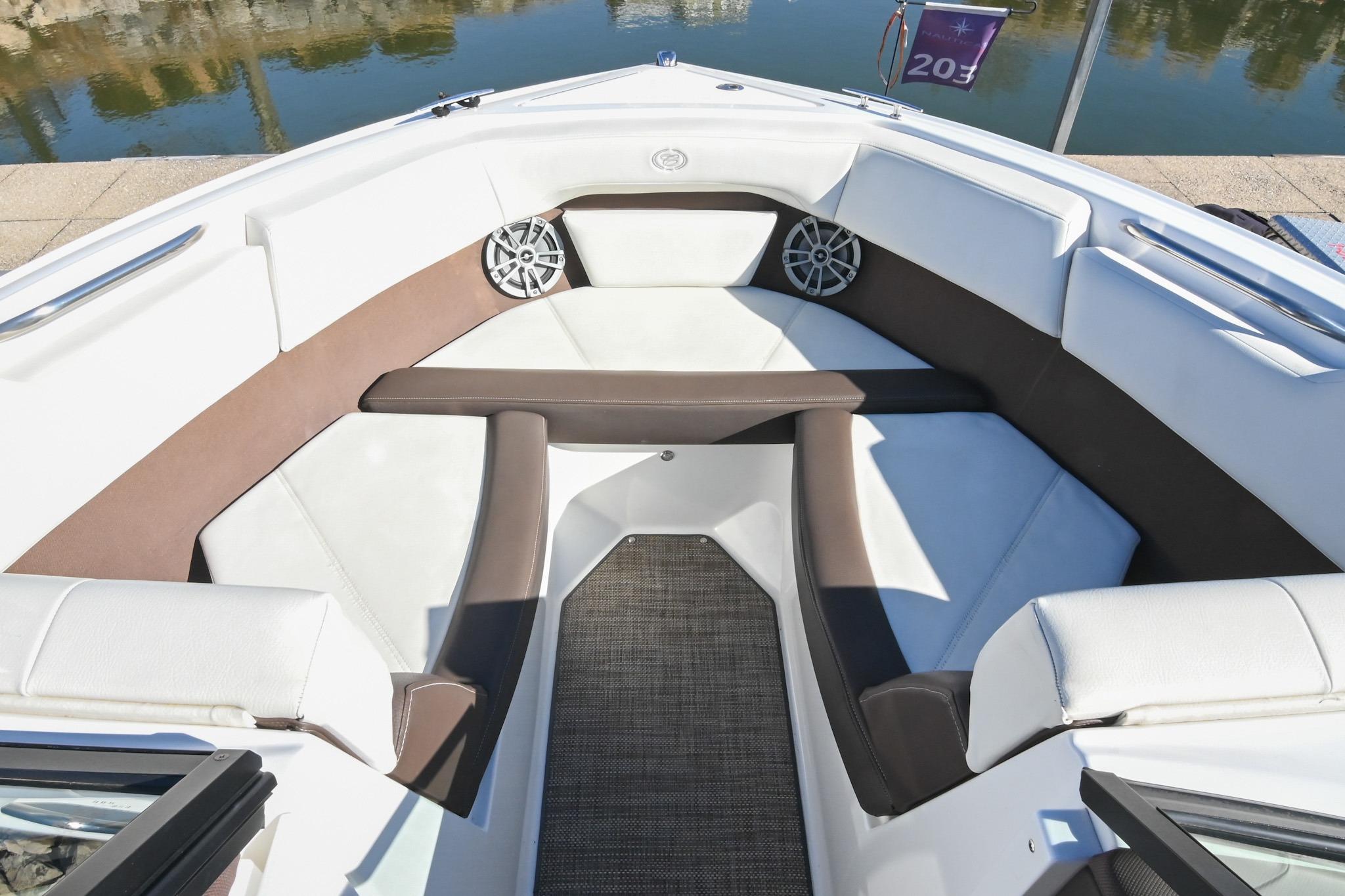 The CS22 is a versatile bowrider that provides an ideal platform to perform a wide array of activities on the water. The ample seating can accommodate eleven passengers, with seating that can be reconfigured, so everyone can be included and seated comfortably while underway. Significant storage is available underseat throughout the boat, as well as a built-in cooler. A folding wakeboard tower not only provides additional clearance for storage but also a tow point for wakeboarders. An additional ski tow eye is located at the transom for additional water sports such as tubing and skiing. This lift-kept CS22 facilitates complete functionality on the water by being able to cruise comfortably, anchor out with comfortable, ample seating, as well as the ability to wakeboard, ski, and tube. All achieved within twenty-two feet through Cobalt's high-end fit and finish and durable hull design.