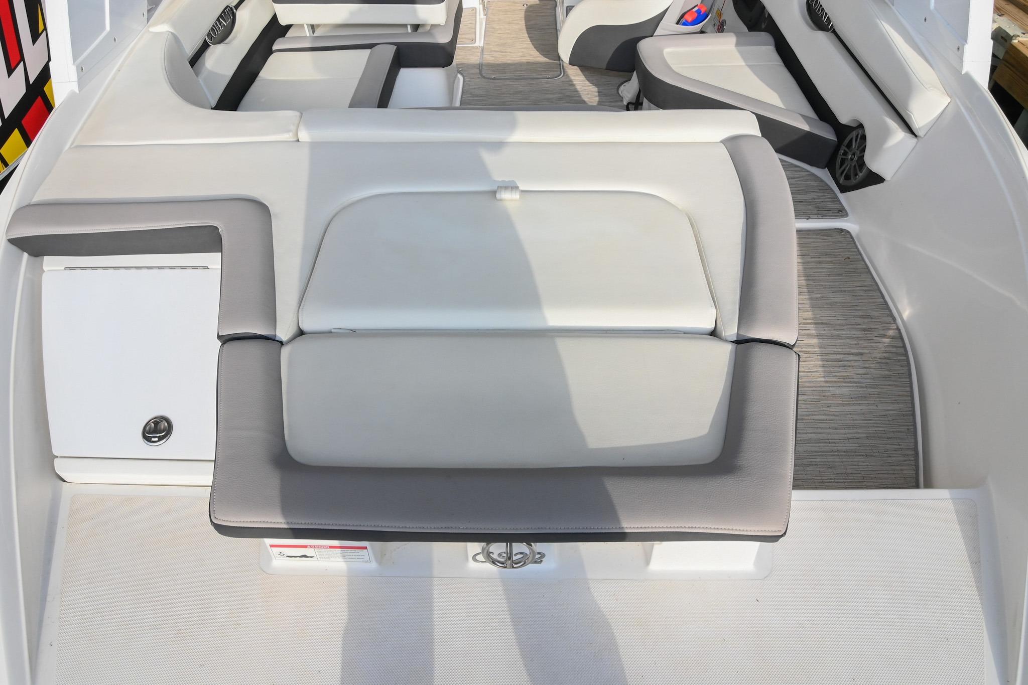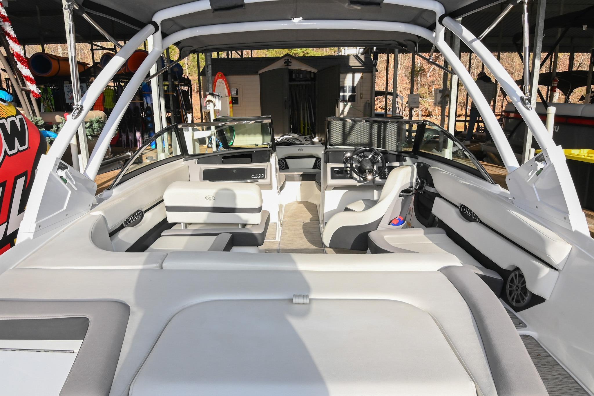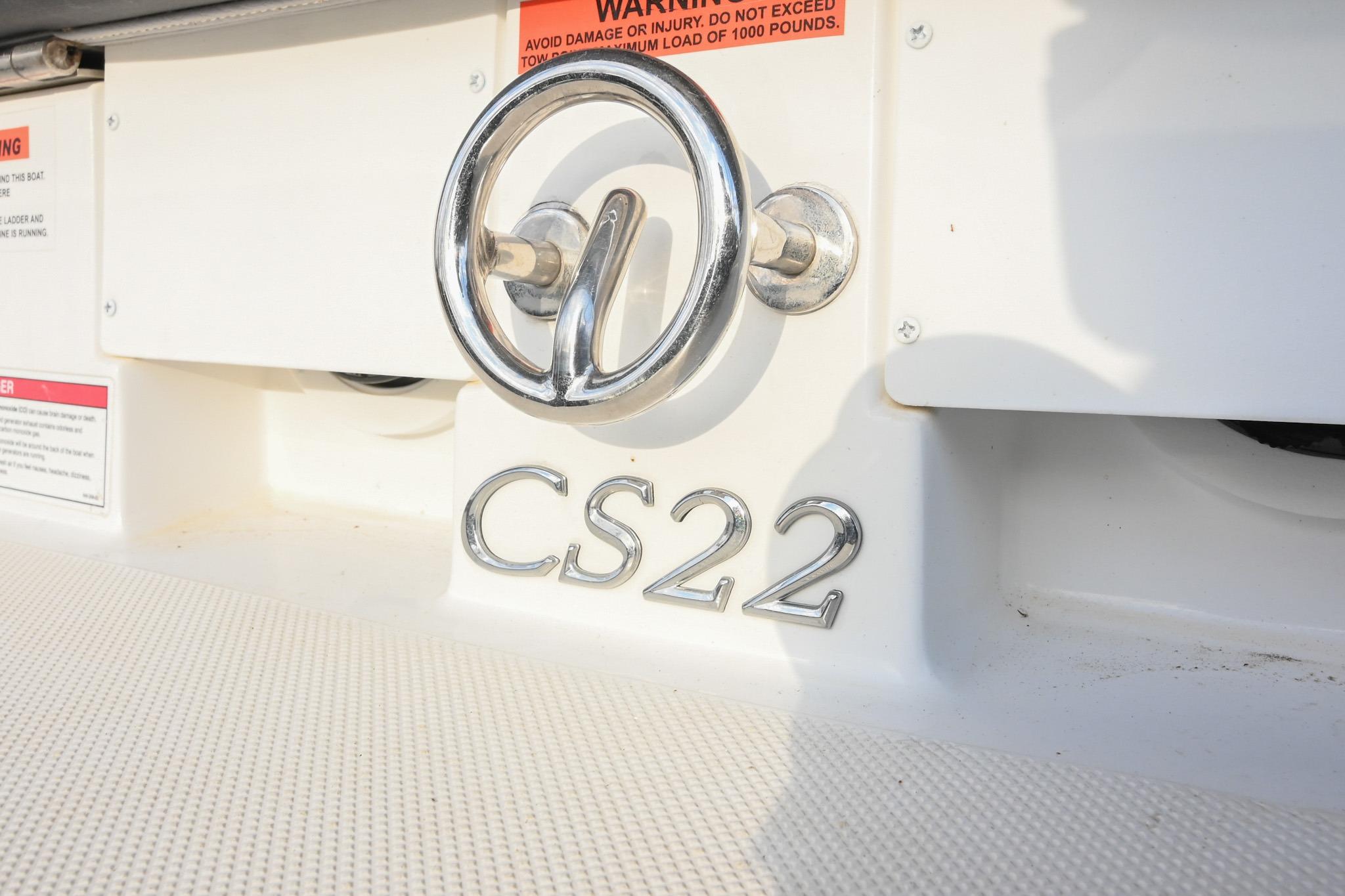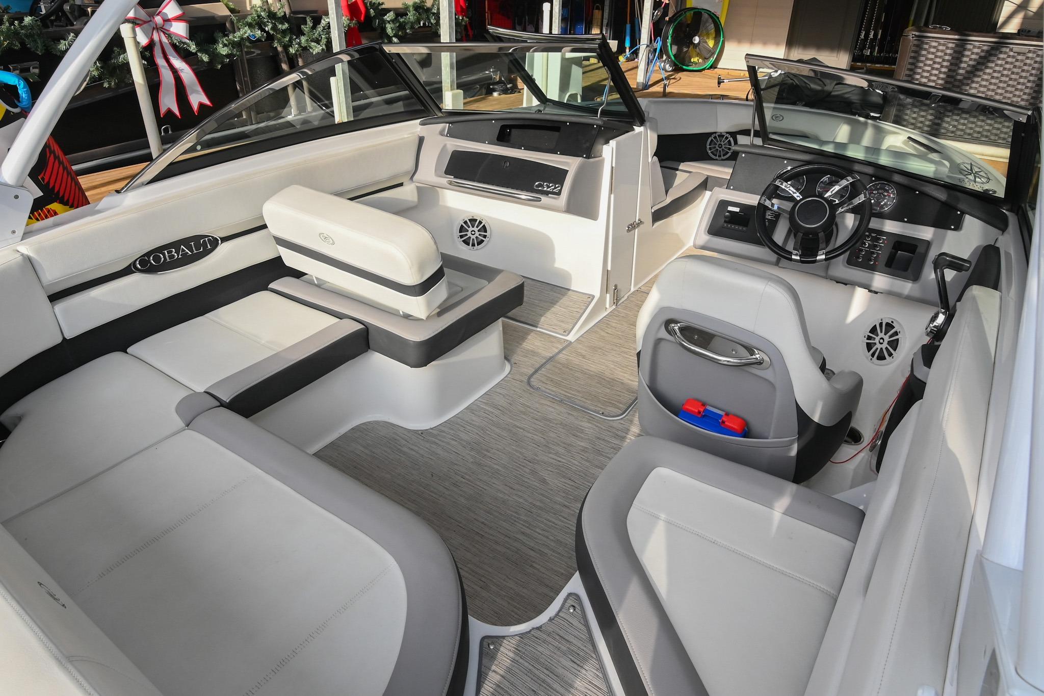 The CS22 is a versatile bowrider that provides an ideal platform to perform a wide array of activities on the water. The ample seating can accommodate eleven passengers, with seating that can be reconfigured, so everyone can be included and seated comfortably while underway. Significant storage is available underseat throughout the boat, as well as a built-in cooler. A folding wakeboard tower not only provides additional clearance for storage but also a tow point for wakeboarders. An additional ski tow eye is located at the transom for additional water sports such as tubing and skiing. This lift-kept CS22 facilitates complete functionality on the water by being able to cruise comfortably, anchor out with comfortable, ample seating, as well as the ability to wakeboard, ski, and tube. All achieved within twenty-two feet through Cobalt's high-end fit and finish and durable hull design.