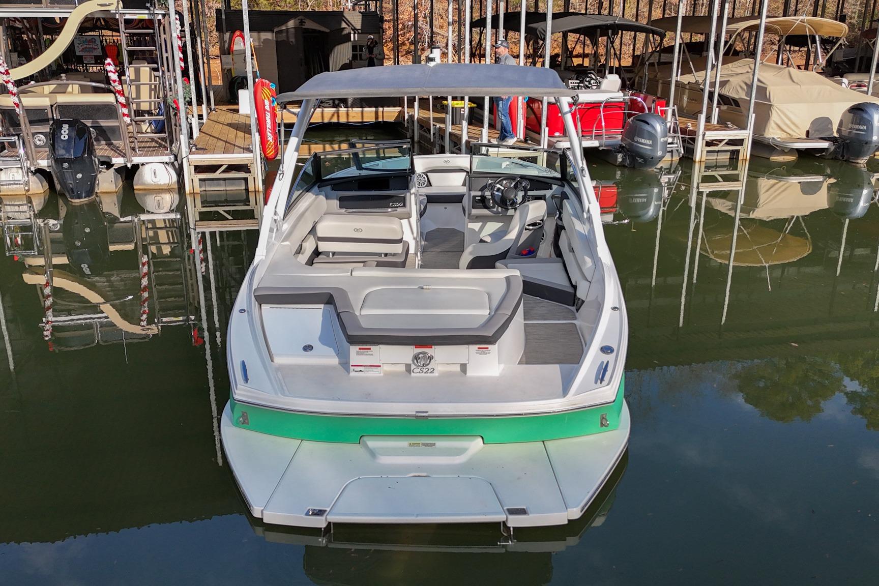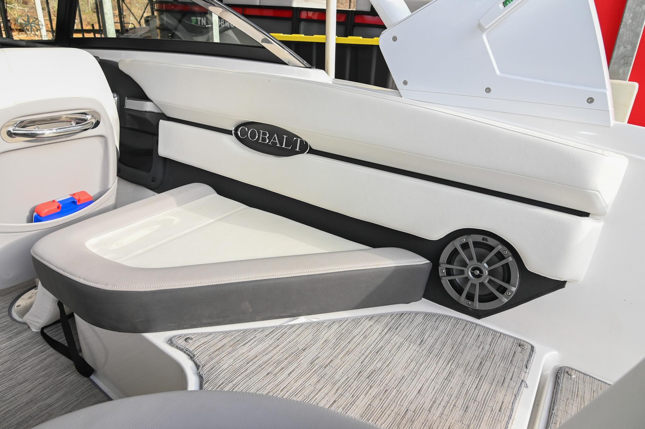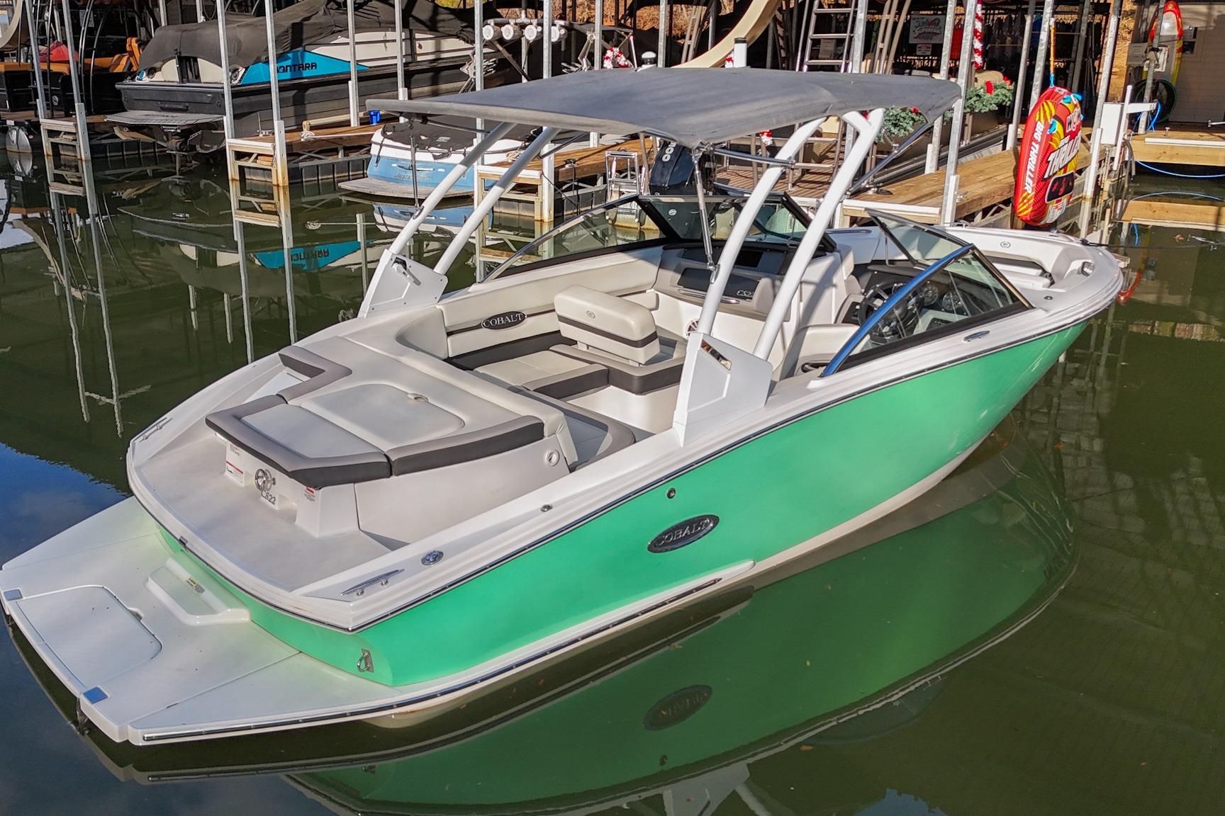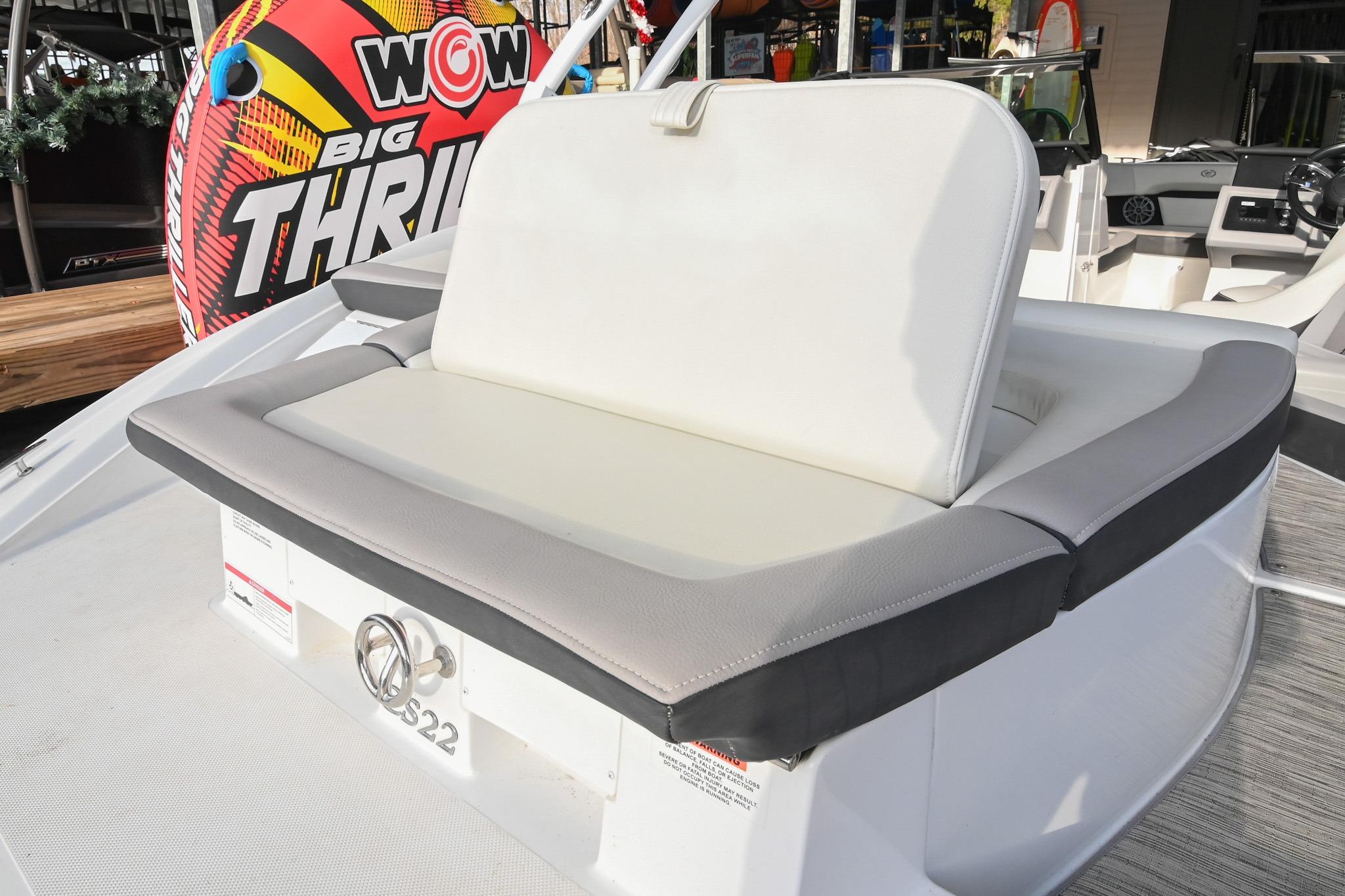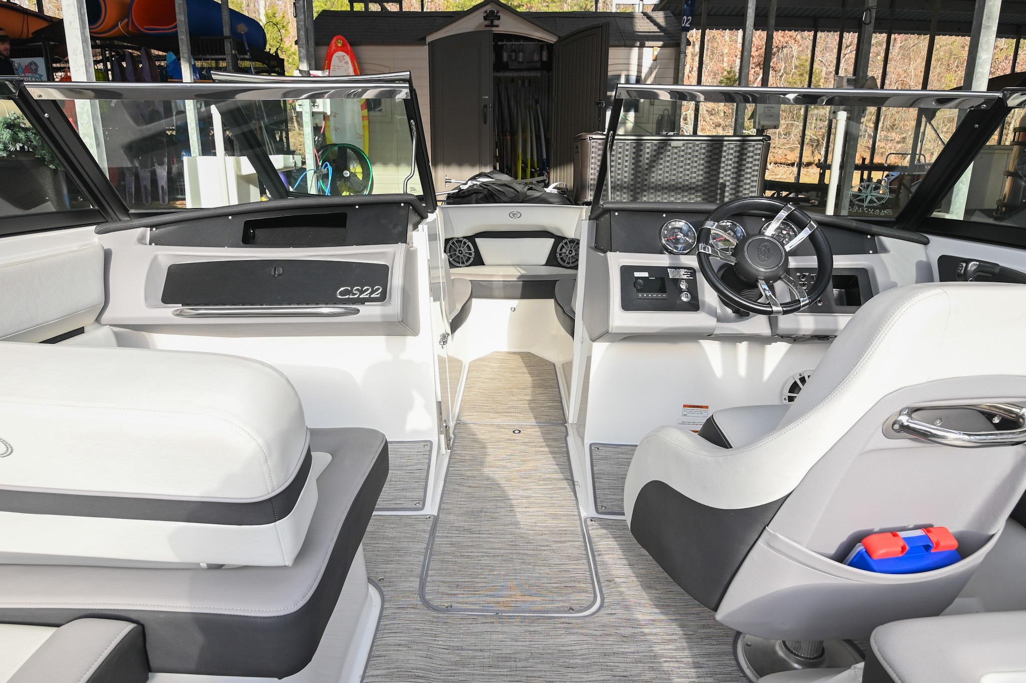 The CS22 is a versatile bowrider that provides an ideal platform to perform a wide array of activities on the water. The ample seating can accommodate eleven passengers, with seating that can be reconfigured, so everyone can be included and seated comfortably while underway. Significant storage is available underseat throughout the boat, as well as a built-in cooler. A folding wakeboard tower not only provides additional clearance for storage but also a tow point for wakeboarders. An additional ski tow eye is located at the transom for additional water sports such as tubing and skiing. This lift-kept CS22 facilitates complete functionality on the water by being able to cruise comfortably, anchor out with comfortable, ample seating, as well as the ability to wakeboard, ski, and tube. All achieved within twenty-two feet through Cobalt's high-end fit and finish and durable hull design.