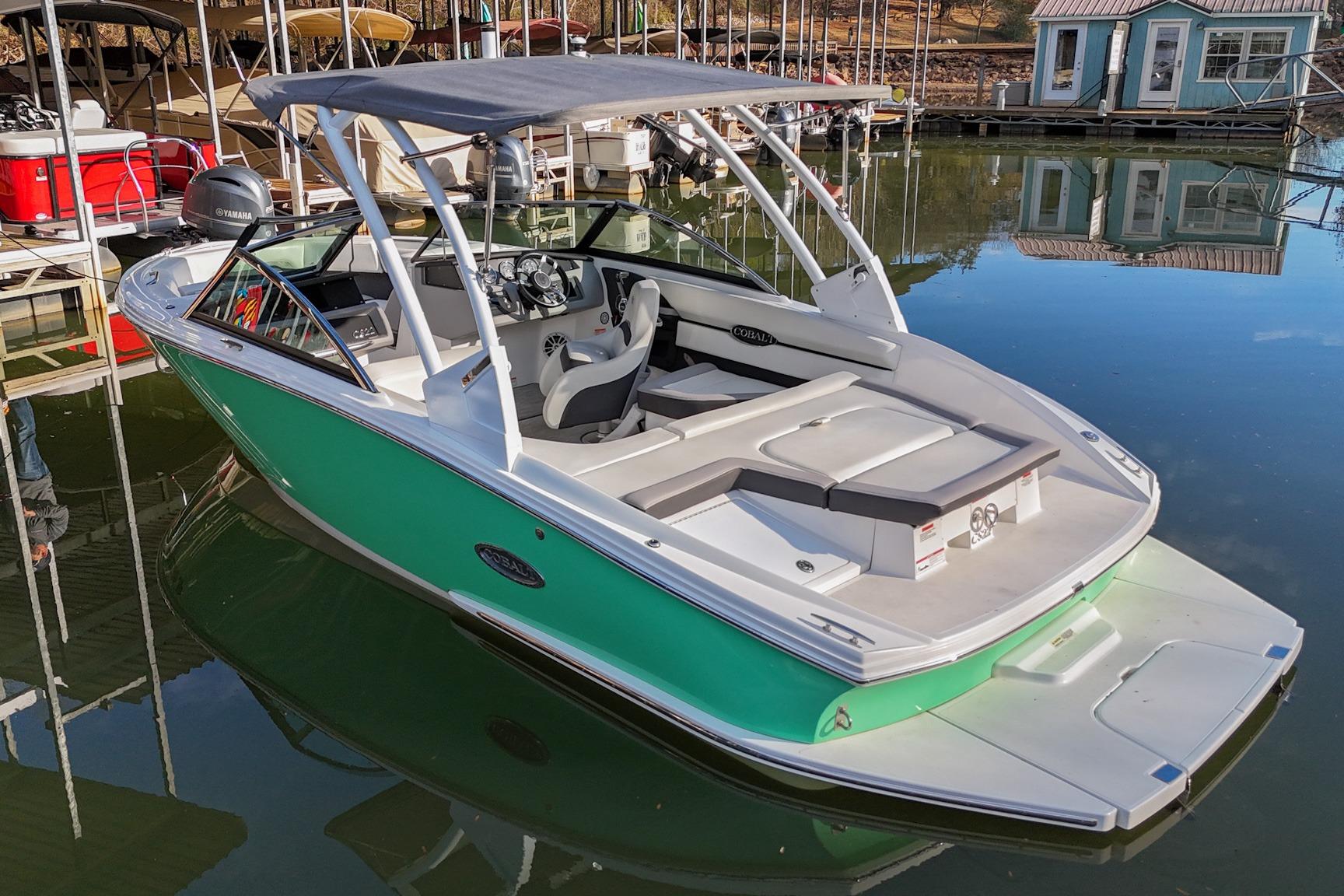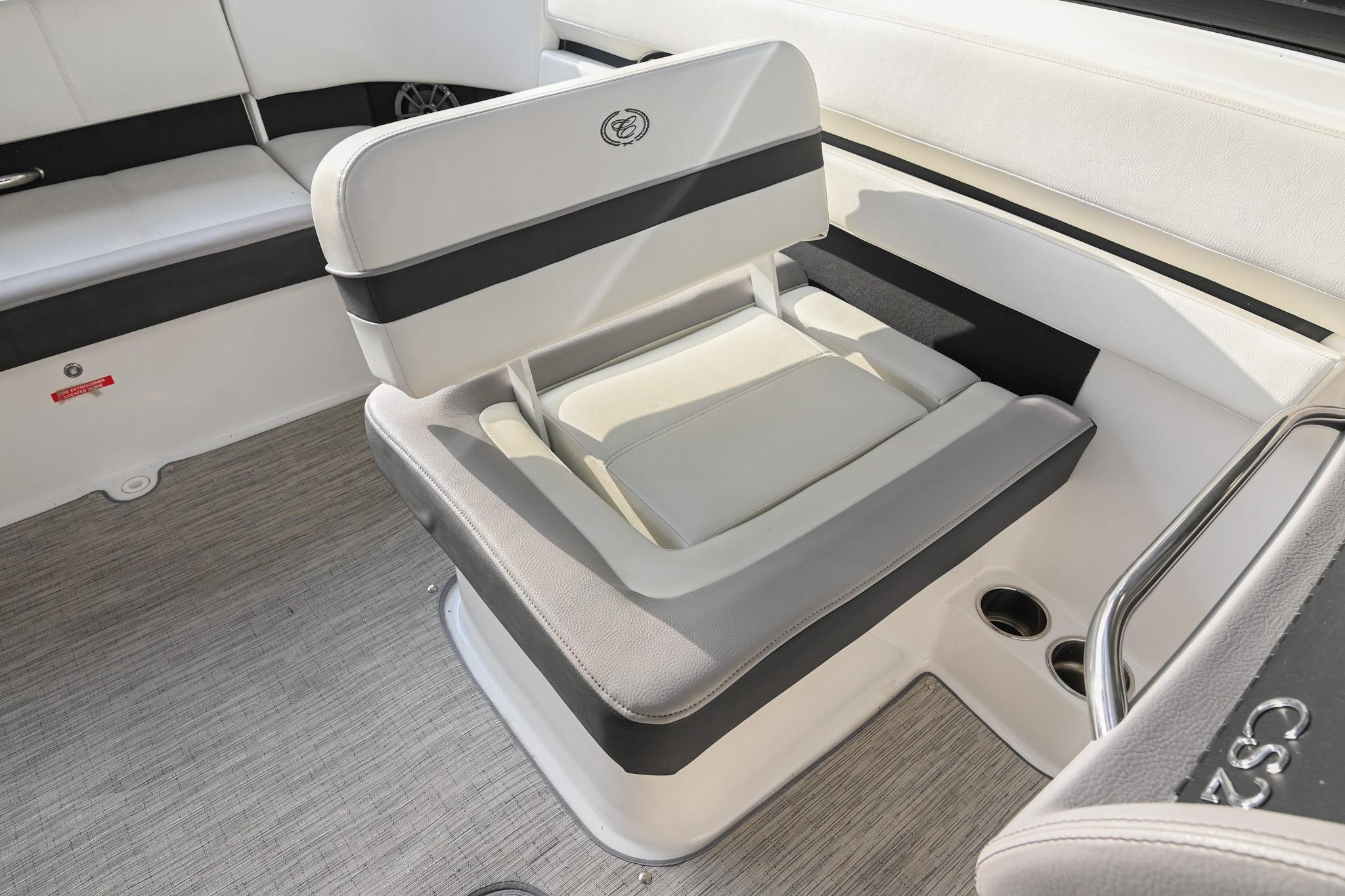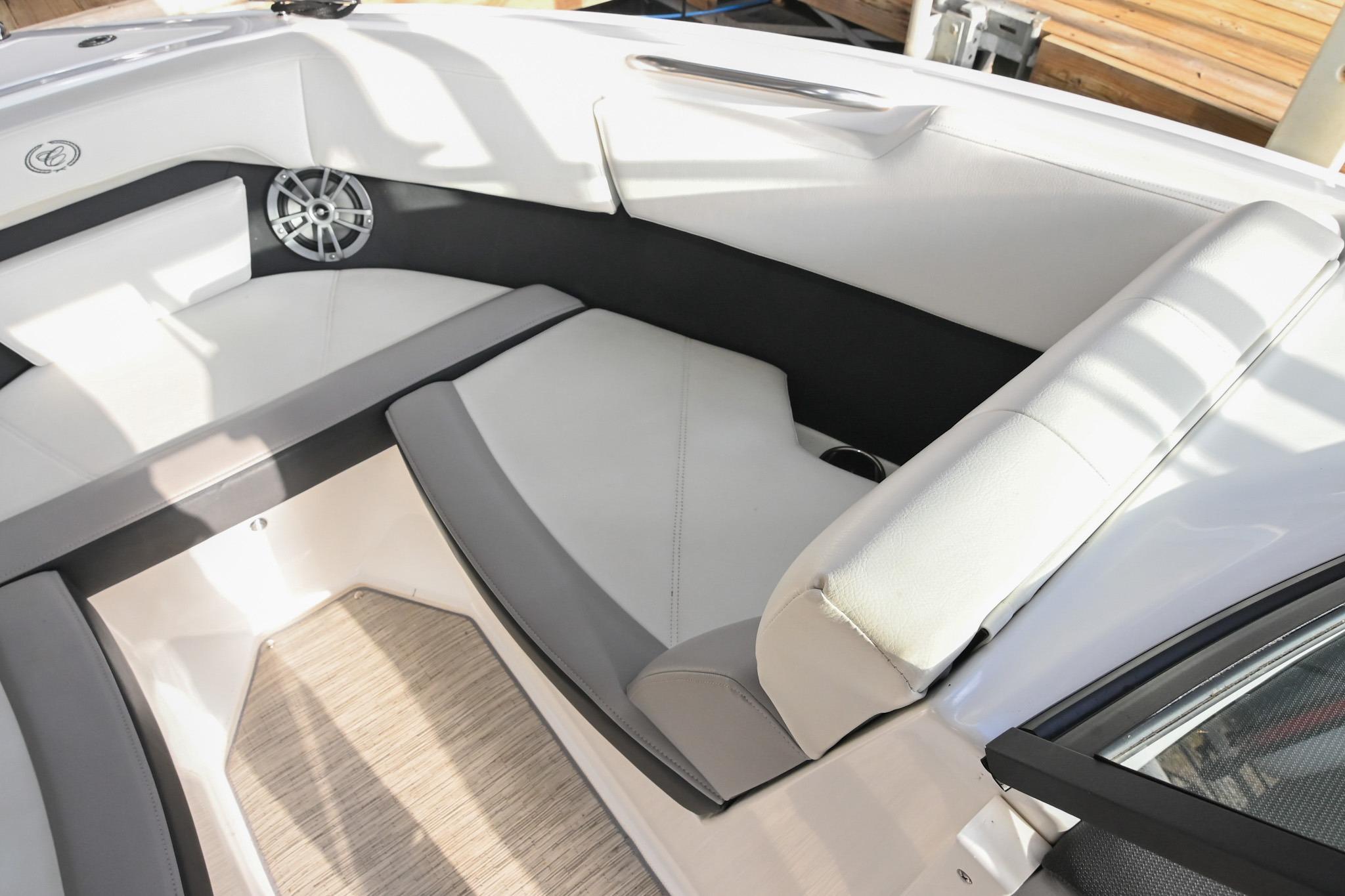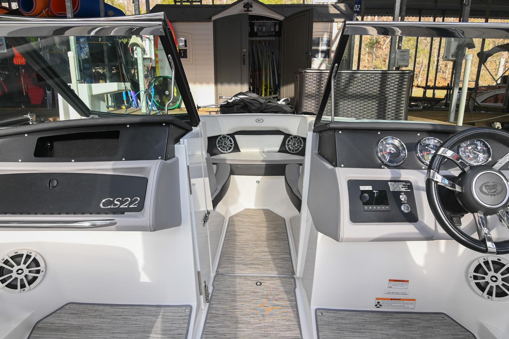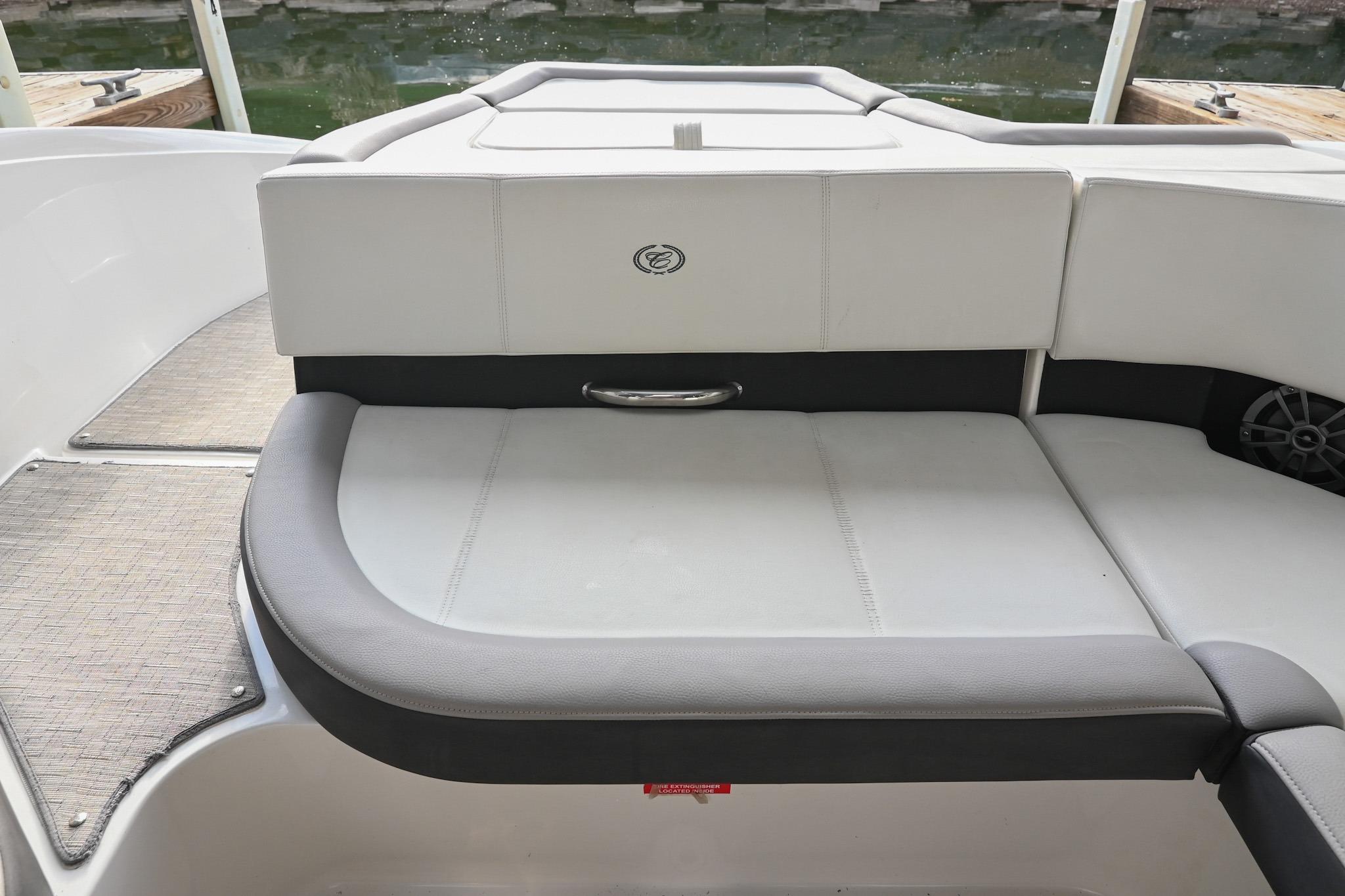 The CS22 is a versatile bowrider that provides an ideal platform to perform a wide array of activities on the water. The ample seating can accommodate eleven passengers, with seating that can be reconfigured, so everyone can be included and seated comfortably while underway. Significant storage is available underseat throughout the boat, as well as a built-in cooler. A folding wakeboard tower not only provides additional clearance for storage but also a tow point for wakeboarders. An additional ski tow eye is located at the transom for additional water sports such as tubing and skiing. This lift-kept CS22 facilitates complete functionality on the water by being able to cruise comfortably, anchor out with comfortable, ample seating, as well as the ability to wakeboard, ski, and tube. All achieved within twenty-two feet through Cobalt's high-end fit and finish and durable hull design.