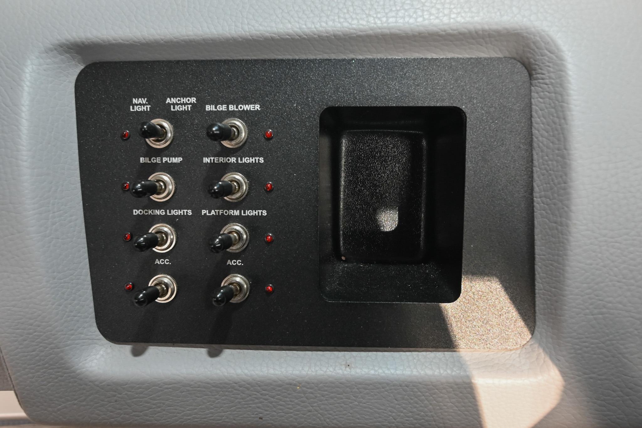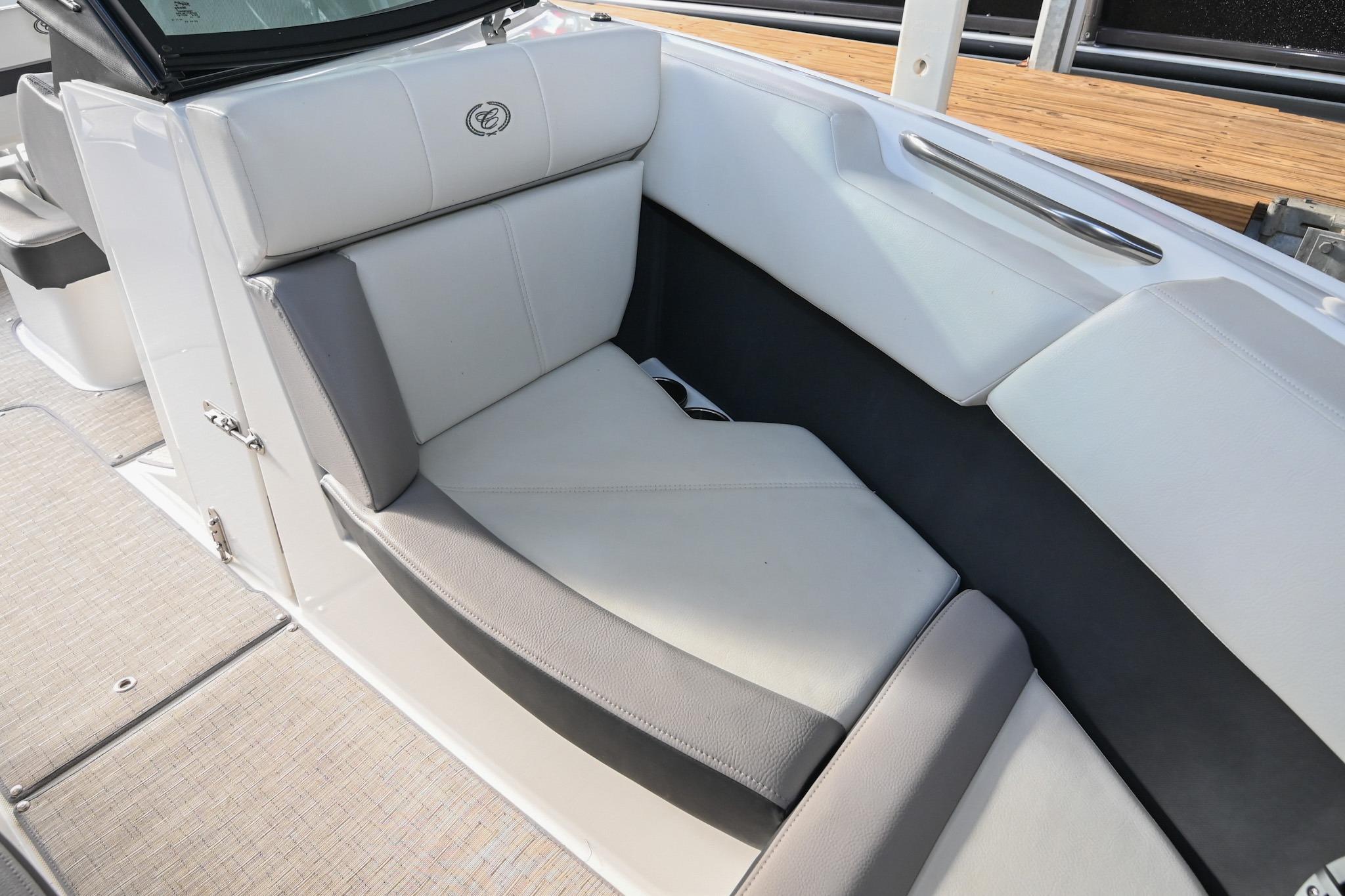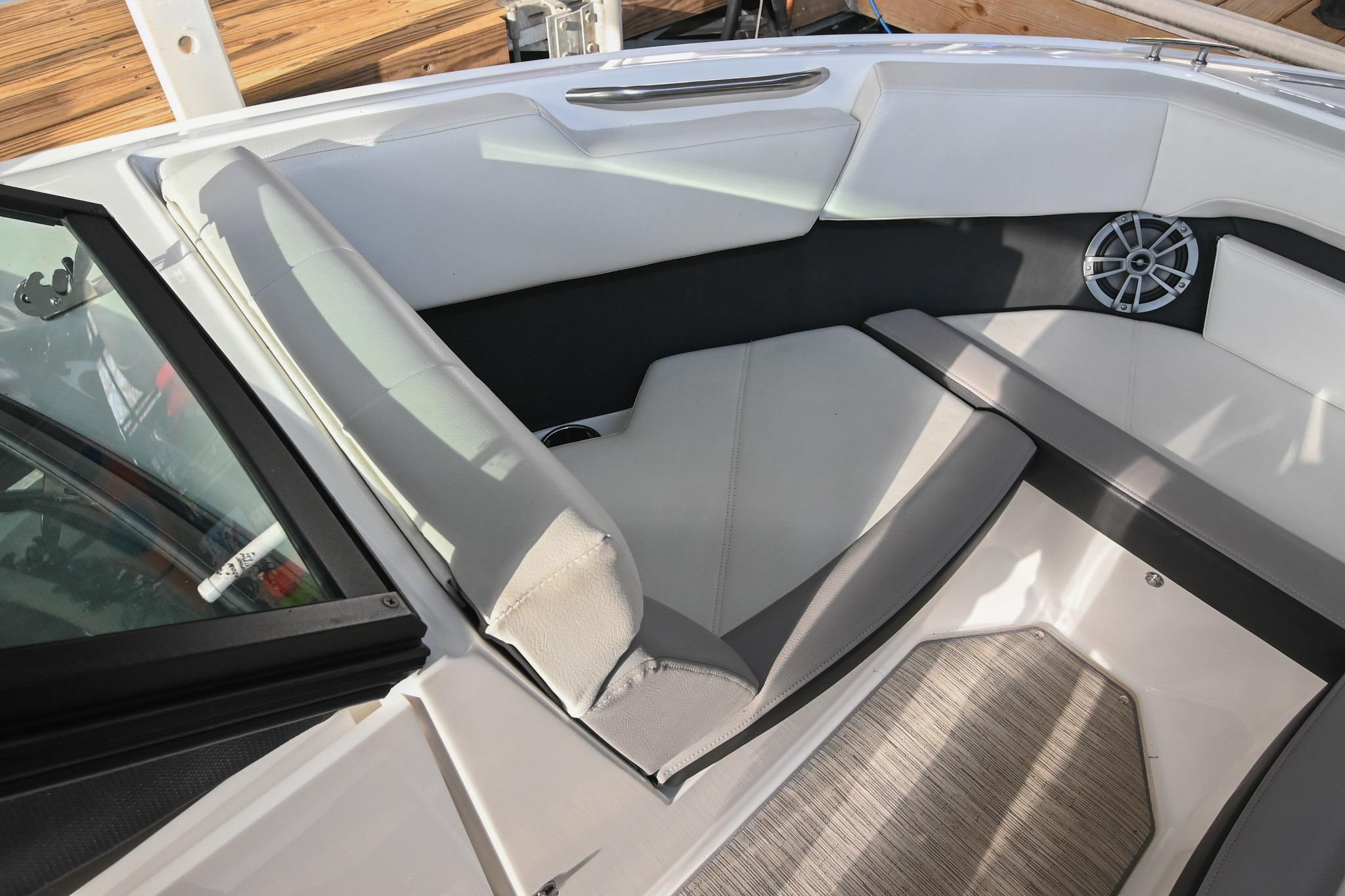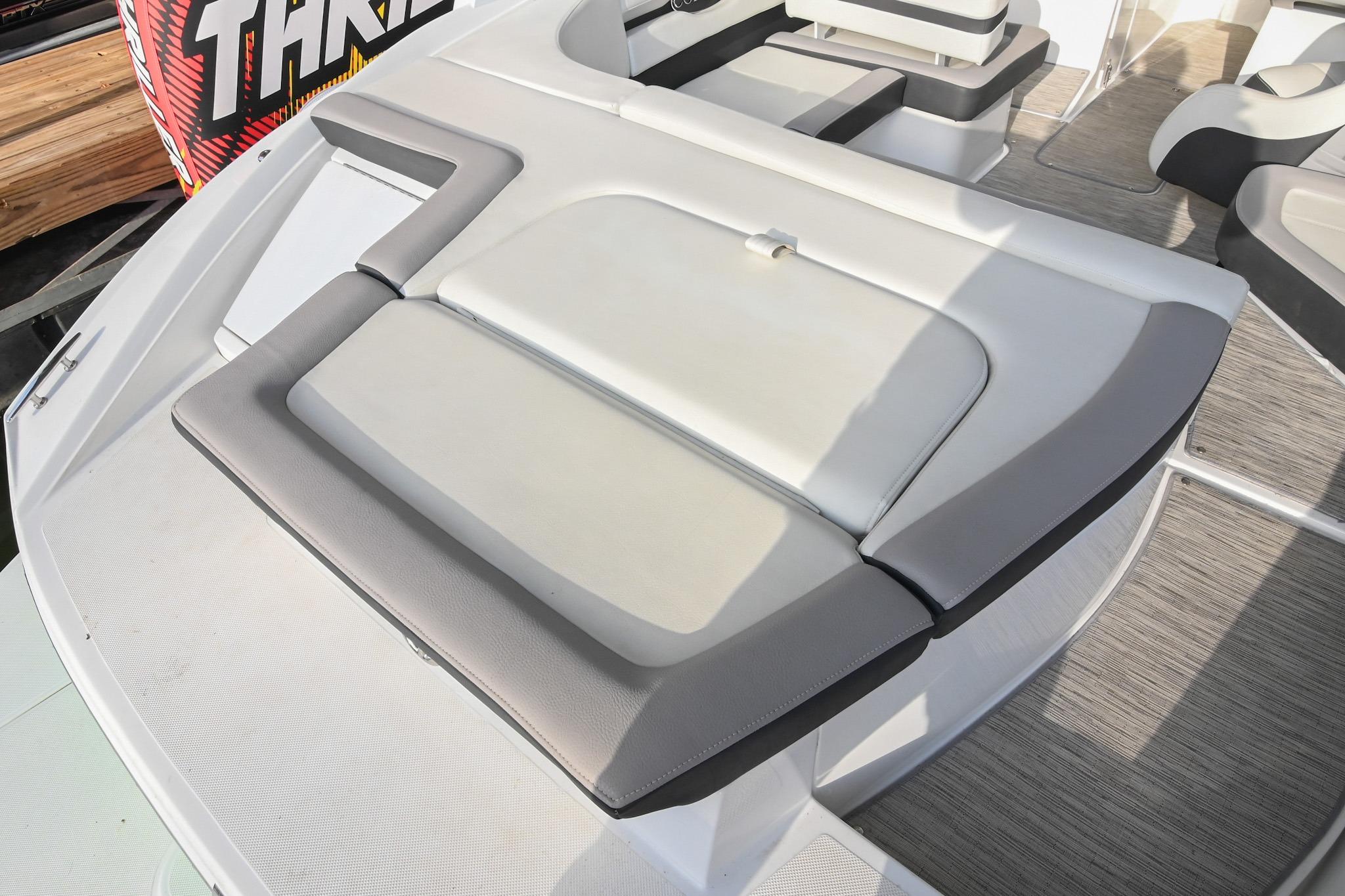 - Bow seating w/ underseat storage, stainless steel grab handles, & cupholders