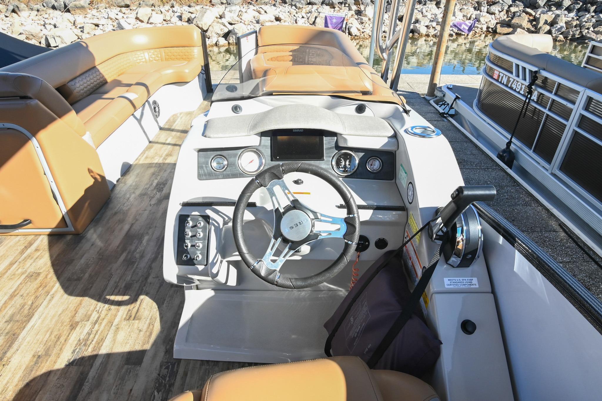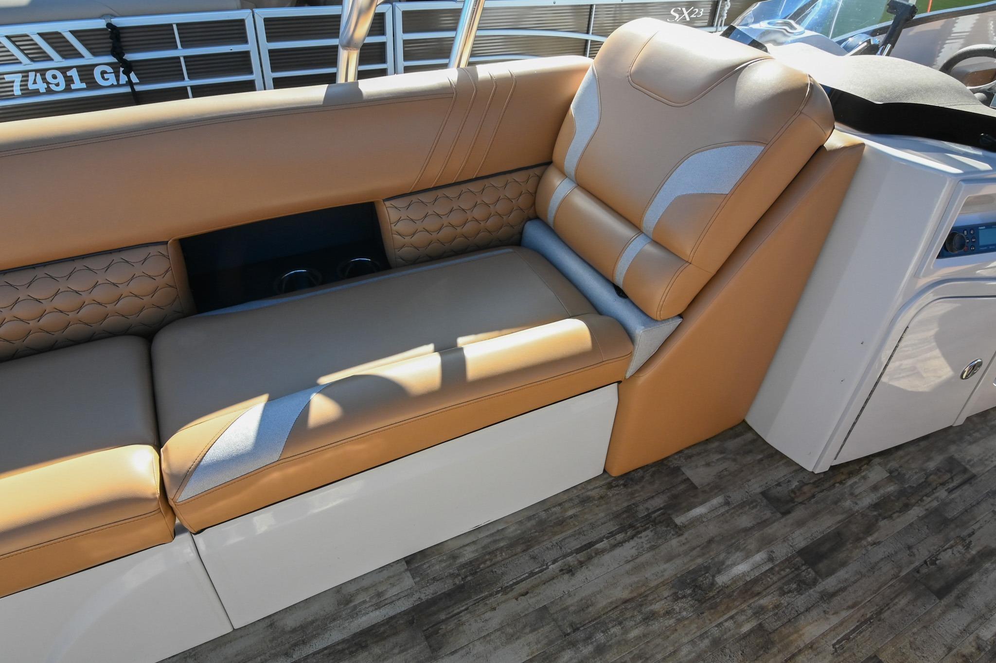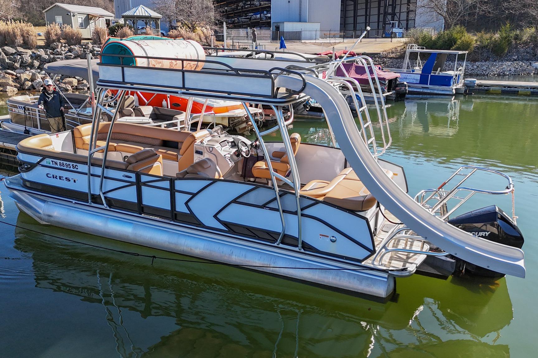 This 2023 Crest Caribbean LX 250 Entertainment offers a spacious and comfortable pontoon layout ideal for social days on the water. The forward and aft lounge seating areas are designed to accommodate groups with plenty of room to relax, while integrated storage keeps gear out of the way. A dedicated entertainment area encourages flow throughout the boat, with thoughtful placement of cup holders and surfaces that add convenience. Overall, the layout balances lounging, cruising, and entertaining with practical functionality.