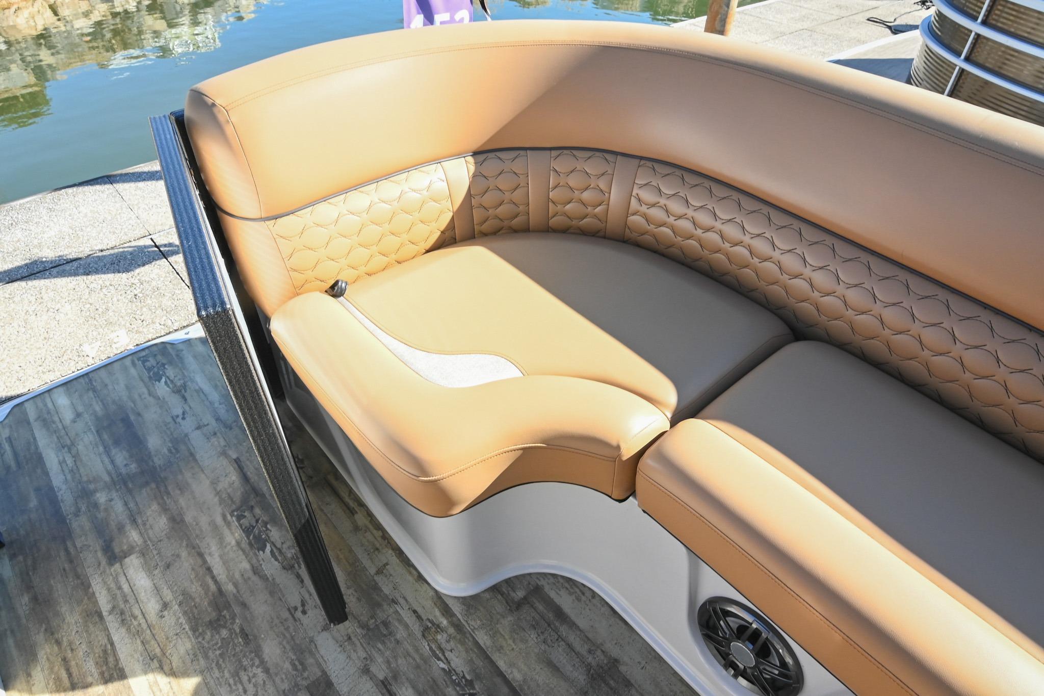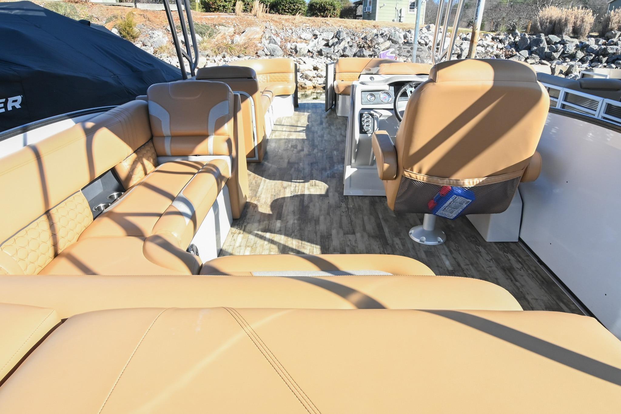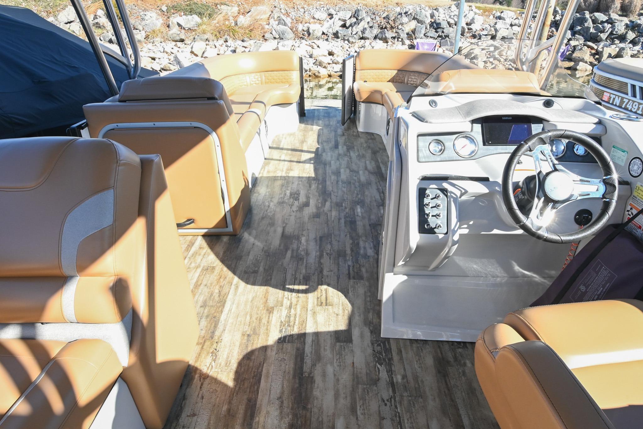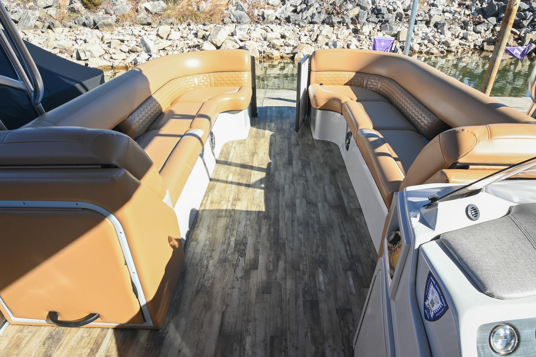 This 2023 Crest Caribbean LX 250 Entertainment offers a spacious and comfortable pontoon layout ideal for social days on the water. The forward and aft lounge seating areas are designed to accommodate groups with plenty of room to relax, while integrated storage keeps gear out of the way. A dedicated entertainment area encourages flow throughout the boat, with thoughtful placement of cup holders and surfaces that add convenience. Overall, the layout balances lounging, cruising, and entertaining with practical functionality.