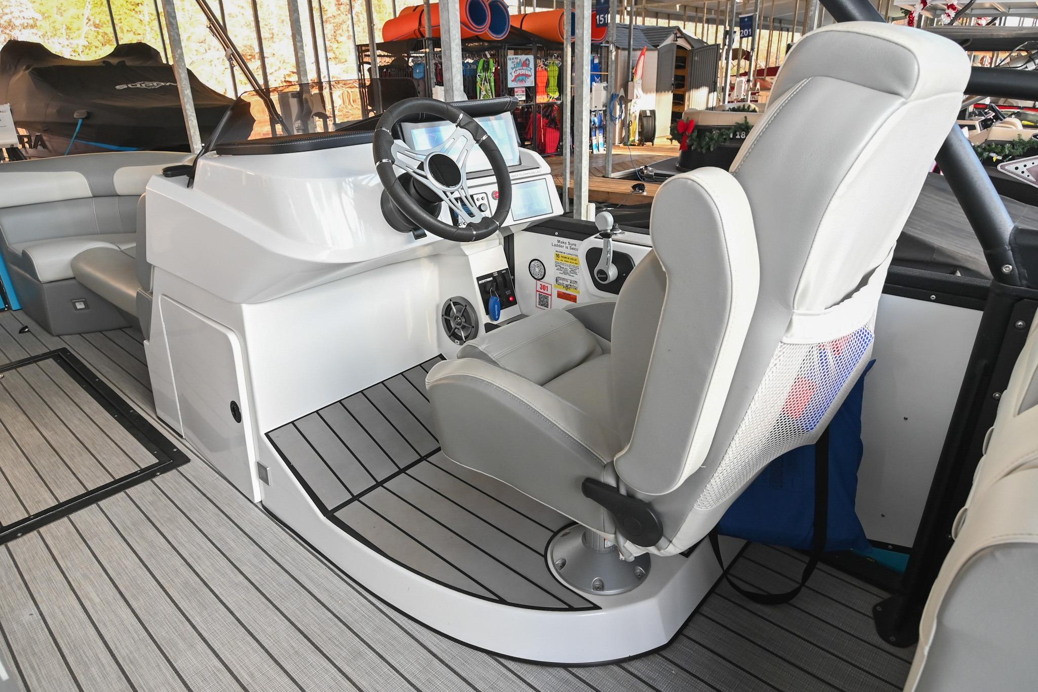 - Raised helm w/ adjustable captain's chair