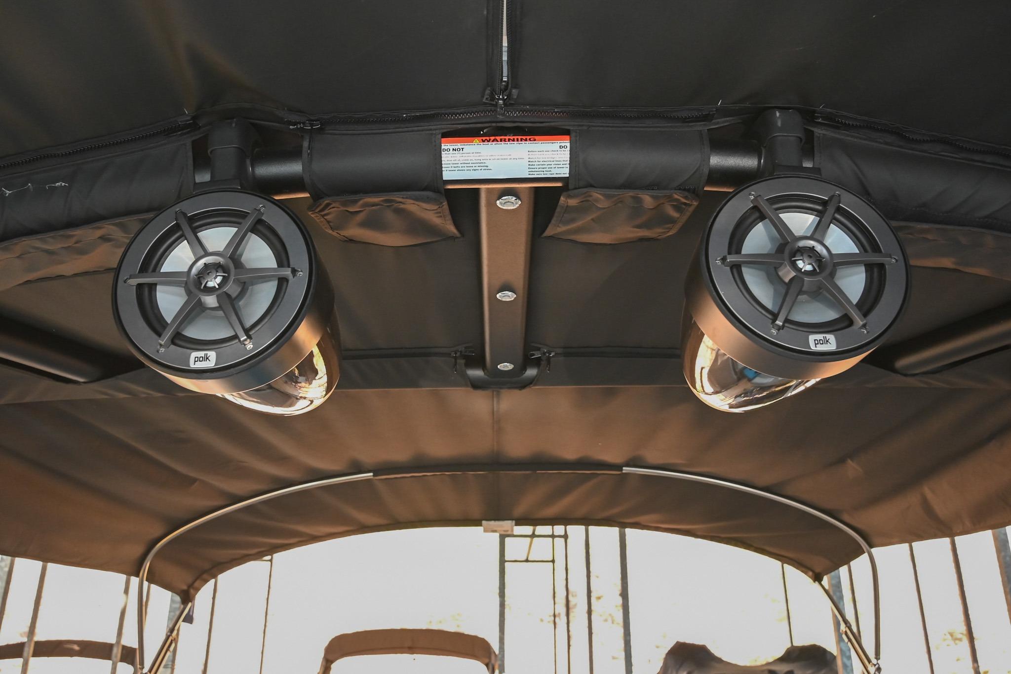 - Polk Audio sound system: 4 audio zones, cockpit speakers (6) w/ dual subs & amp, tower speakers (2) w/ amp, & transom speakers (2) w/ amp & transom remote